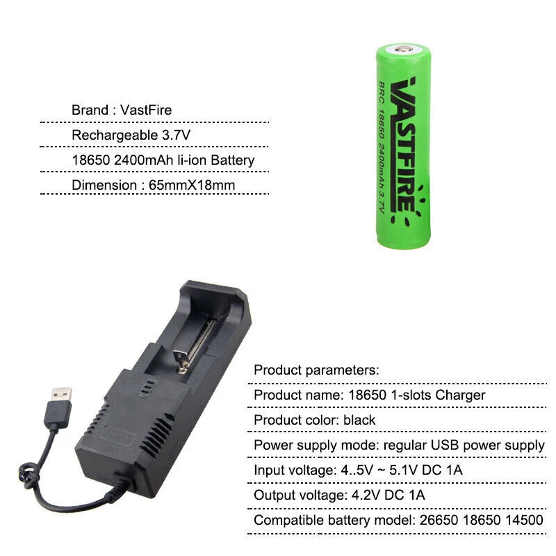 Product Description Tactical 800Yards LED Flashlight + Red/Green Dot Laser Sight For 20mm Rail Mount White 501B Hunting Flashlight Brand:Vastfire Model:501B LONG RANGE :800yards -Modes: 1 LED: White 2000lumens ASPERICAL LENS: 31MM Lens Mode: 1 Modes from High Battery: 1 x ARB-L18-2400 battery (include Recharge Battery) Batteries Input Voltage: 3.7 – 4.2V Waterproof: Splash Proof Only Housing Diameter: 25.4mm (Fit with any 25.4mm Ring or Mount) Material of Product:Aluminum Alloy ARB-L18-2400 Battery Specifications: Type: Rechargeable battery Brand: VastFire Top: Button top Rechargeable times: Up to 1800 times Voltage: 3.7V Capacity: 2400mAh Quantity: 1pc Size: 65 x 18mm Weight: 49g Red / Green Laser Sight 20mm Rail Mount Body length:80mm Laser tube diameter :25.4mm(1 inch) Superior optical galss Rail:11-20mm (Adjustable) <5mw Red/Green laser emitter Red Wavelength:532nm Green Wavelength:650nm Range:300-500m Red Laser Powered by :3*LR44 Button Cell battery (include) Green Laser Powered by : 1*14250 battery(include) Weight :4.05oz Package Included: 1x White LED flashlight 1x Remote Switch 1x Green OR Red laser Sight Scope 20mm Rail Mount (w/Battery) 1x ARB-L18-2400 battery 1X Battery Charger Payment Shipping Terms Returns Contact Us About Taxes 1. We accept payment via PAYPAL ONLY . 2. Payment must be made within 4 days of auction closing. (Non-payment may result in a UPI (Unpaid Item) being put on your account. eBay will automatically close your account if you accumulate 4 UPI's total.) 3. TOTAL AMOUNT DUE includes the final auction price plus S&H(Shipping and Handling). 4.S&H will be determined based upon the SHIP TO address, Tax and customs. PLEASE NOTE: S&H DOES NOT INCLUDE DUTIES, LOCATL TAXES OR ANY OTHER IMPORTATION FEES. We are not responsible for any custom duty or import tax. 5. Please list your special requests (color, packages, etc.) in the PAYPAL NOTES SECTION when you make payment. Our working hours Beijing time from 9:00 a.m. to 18:00 p.m . Monday to Friday Item will be shipped from US/DE/UK warehouse;within 1 days after payment received, usually delivery time 24-72 hours. Warranty: 1. One Year Manufacturer's Warranty for defective items (excluding items damaged and/or misused after receipt). Accessories come with a 3-month warranty. 2.If buyer requests a return when there is no quality problem of the item he received,return postage has to be paid by buyer,and postage for the item won't be returned. 3.If item is damaged or defective on arrival,buyer can either requests a refund or replacement,and postage will be paid by us,meanwhile,the item must be returned. Note: A. Customs duties is neither included in the item value nor the postage,which should be in the responsibility of buyers. B. Please check with your country's customs office to determine what these additional costs will be prior to bidding/buying. 1. You have 7 days to contact us and 10 days to return it from the date it was received. WE WILL ISSUE YOU A REFUND OR REPLACEMENT ! 2. All returned items MUST BE in the original packaging and you MUST PROVIDE us with the shipping tracking number , specific reason for the return, and your eBay ID . 3. We will refund YOUR FULL WINNING BID AMOUNT, upon receipt of the item in its original condition and packaging with all components and accessories included, AFTER BOTH Buyer and Seller cancel the transaction from eBay. OR, you may choose to have a replacement. 4. Return shipping is to be paid by the Buyer . Our office hours are: 9:00 a.m to 6:00 p.m (GMT +8) of Monday to Saturday. And our office is closed on Sunday and public holidays (China). We apologize for the late reply during the holidays. Anything,please contact us by ebay message,we'll service you asap!!! 1. We maintain high standards of excellence and strive for 100% customer satisfaction! Feedback is very important to us. We request that you contact us immediately BEFORE you give us neutral or negative feedback, so that we can satisfactorily address your concerns . 2. We will reply you in 24 hours on business days ( excludes weekends and holidays ) , please note the time difference, so,kindly don't take any action on eBay before getting a reply from us. 3. If you are satisfied with our products and service, please do not forget to leave a good review to us, thanks! For all orders, please note that: 1. Taxes and charges are not included in the item price or shipping charges. 2. Please check with your country's customs office to determine what these additional costs will be prior to bidding/buying. 3. If there is the cutsom fee casused by the cutsom detention, the buyer need to check with your country's customs and deal with it himself. Payment 1. We accept payment via PAYPAL ONLY . 2. Payment must be made within 4 days of auction closing. (Non-payment may result in a UPI (Unpaid Item) being put on your account. eBay will automatically close your account if you accumulate 4 UPI's total.) 3. TOTAL AMOUNT DUE includes the final auction price plus S&H(Shipping and Handling). 4.S&H will be determined based upon the SHIP TO address, Tax and customs. PLEASE NOTE: S&H DOES NOT INCLUDE DUTIES, LOCATL TAXES OR ANY OTHER IMPORTATION FEES. We are not responsible for any custom duty or import tax. 5. Please list your special requests (color, packages, etc.) in the PAYPAL NOTES SECTION when you make payment. Our working hours Beijing time from 9:00 a.m. to 18:00 p.m . Monday to Friday Shipping Item will be shipped from US/DE/UK warehouse;within 1 days after payment received, usually delivery time 24-72 hours. Terms Warranty: 1. One Year Manufacturer's Warranty for defective items (excluding items damaged and/or misused after receipt). Accessories come with a 3-month warranty. 2.If buyer requests a return when there is no quality problem of the item he received,return postage has to be paid by buyer,and postage for the item won't be returned. 3.If item is damaged or defective on arrival,buyer can either requests a refund or replace