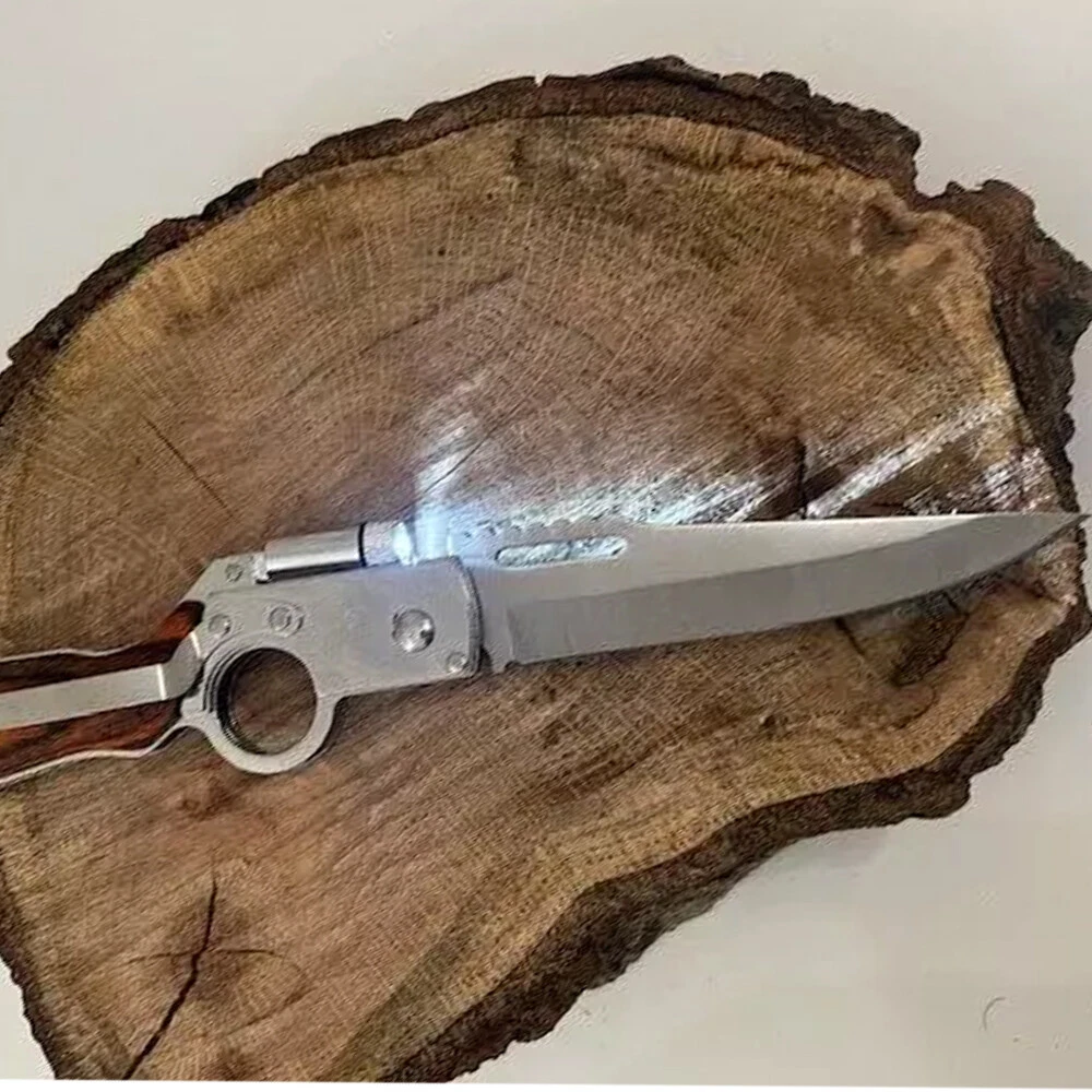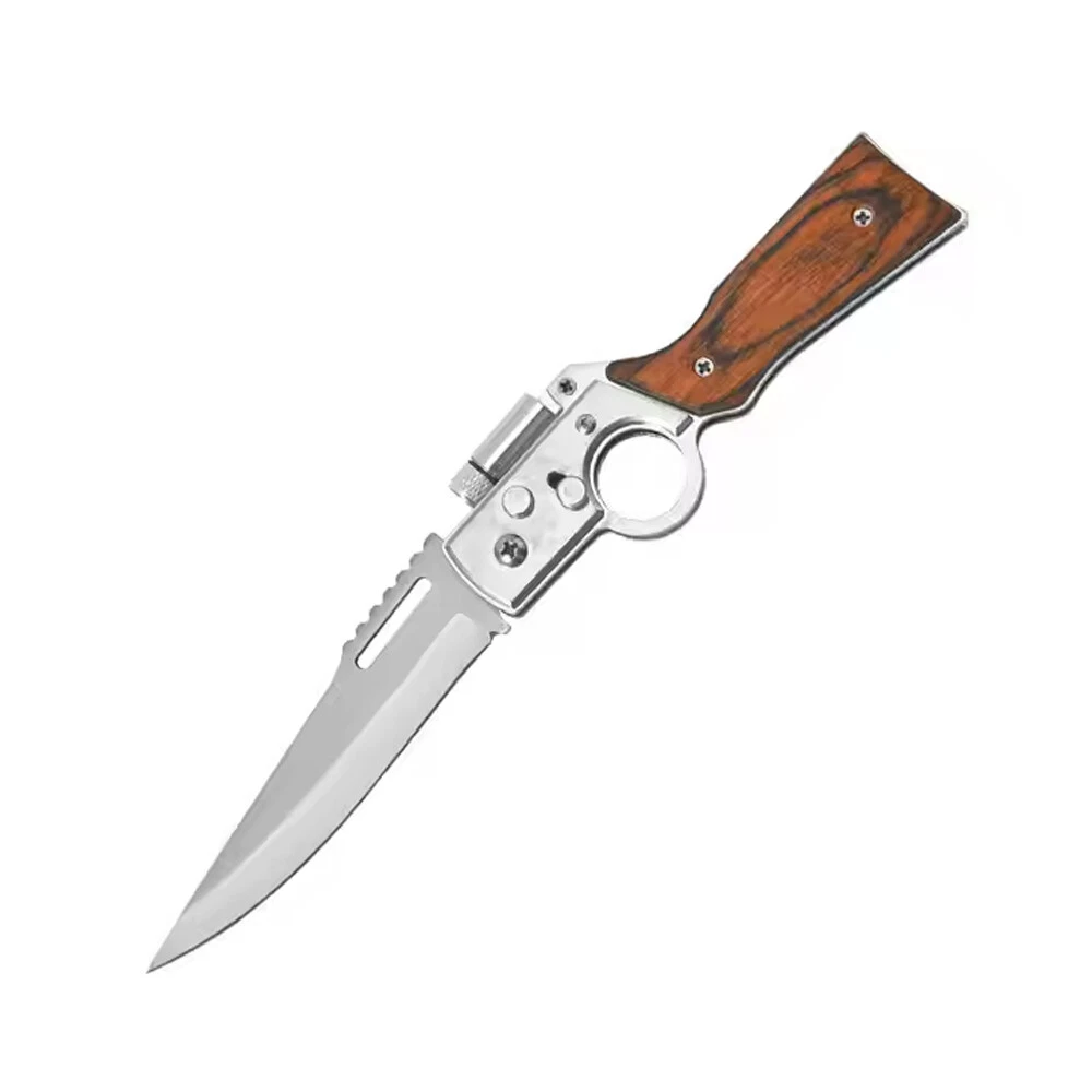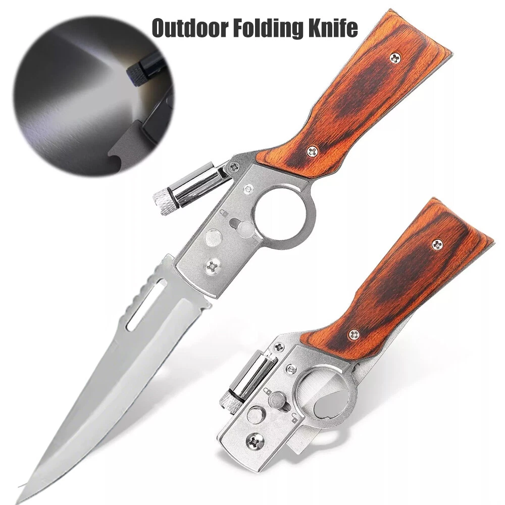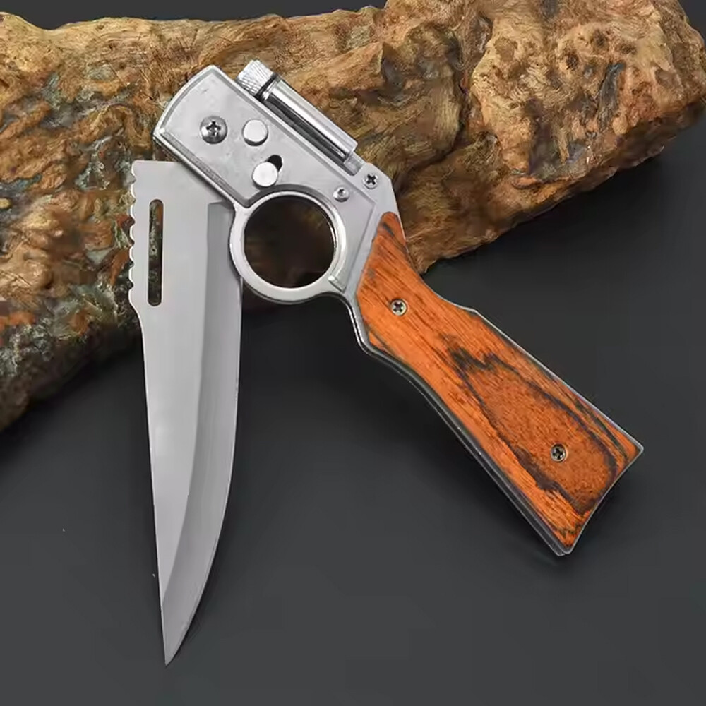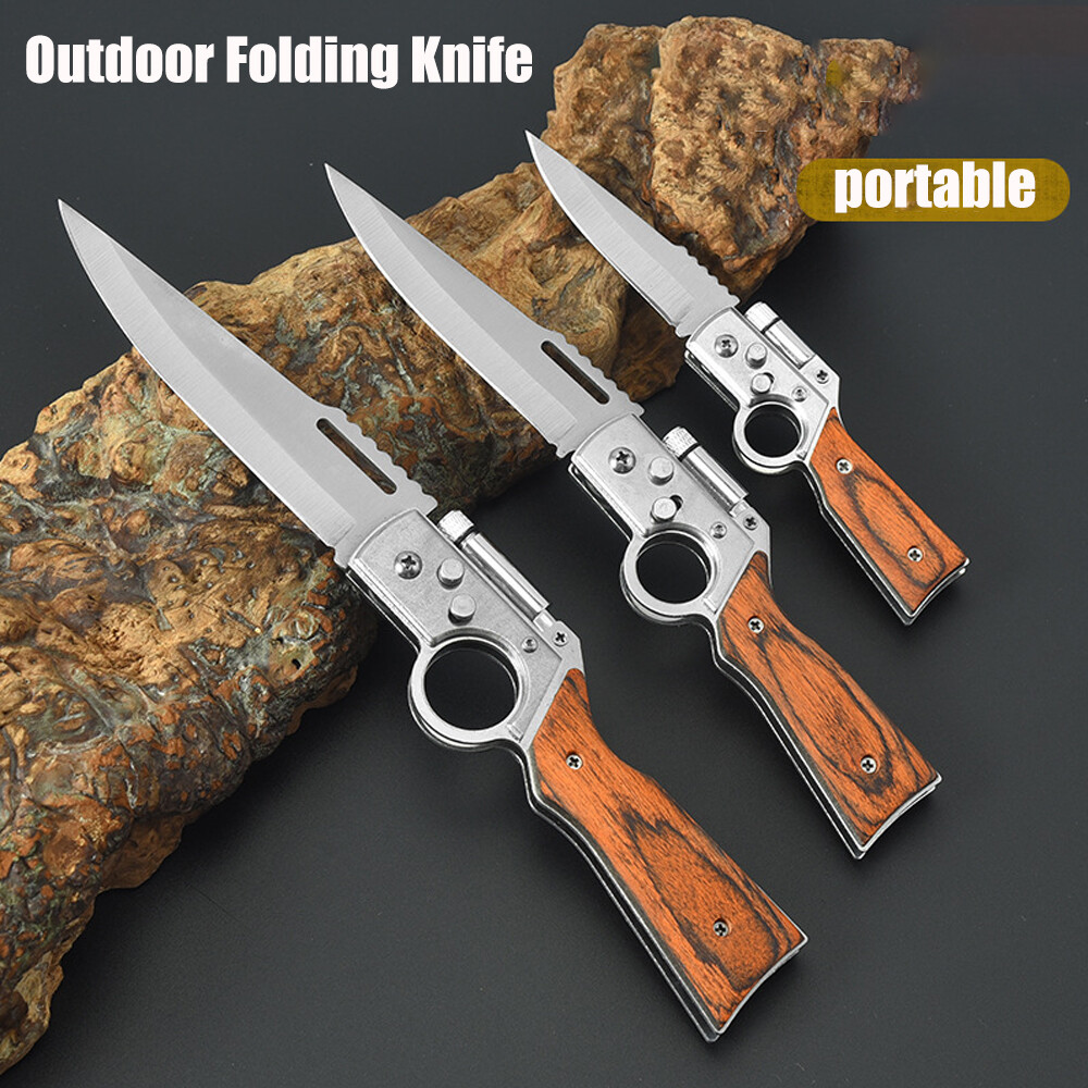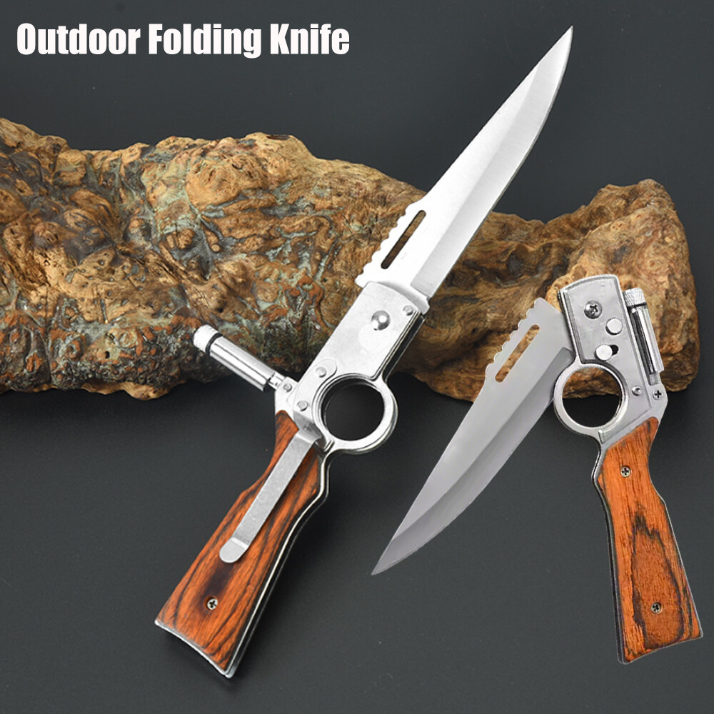 Description: The AK47 tactical folding knife is a versatile tool designed for outdoor enthusiasts and adventurers. Featuring a 9.8 cm stainless steel blade with a straight edge, this tactical knife is perfect for various tasks while camping or hiking. The wooden handle in a rich brown colour provides a comfortable grip for precision handling, making it a reliable companion for your next outdoor excursion. Ideal for camping, hiking, or general outdoor use, this AK47 knife is a must-have for any outdoor enthusiast. Features: 1. New Upgrade -- The newly upgraded bottle opener makes it easy to open refreshing beers and drinks, making your outdoor trip more enjoyable. It has also added serrations, which can provide good help in outdoor activities. 2. Led Lighting Design -- The LED lighting design on the top allows you to find your target even on dark nights, providing better help for camping, outdoor activities, exploring, fishing and more. 3. Dual Protection Mechanism -- The AK47 folding knife has two protective locks, one is to protect the opening and closing of the switch, slide up and down to control. The other is the lock with fixed blade, fixed blade does not close when in use, use finger inward push to control, double protection is safer to use. 4. Pocket Knife for Daily Use -- Pocket knife just 3.7/4.5/5.5 inches when folded and about 6.3/8.3/10.2 inches when opened, it weighs about 2.4/4.0/4.6oz, fast and smooth assisted opening with one hand, can be used for opening boxes, letters, envelopes, peeling fruits, self-defense. 5. Reversible Deep-carry Pocket Clip Knife -- It's not a small knife, but it carries very well, practically disappearing in the pocket, ideal folder for camping, hunting, hiking outdoor activities,everyday working carry or collection. Specifications: Model Name: AK47 Gun Shape Knife Special Feature: Folding, Led, Pocket Clip, Multifunctional Age Range (Description): Adult Handle Material: Wood, Carbon Steel Blade Material: Steel Recommended Uses For Product: Outdoor, Fishing, Camping, Hiking Item Length: 16/21/26 cm( 6.3/8.3/10.2 inch ) Package Content: 1X Knife Caution: Please don't put in dishwasher Please keep it away from children. Please don't keep the edge and point of knife aim to people. Please don't catch the knife by hand when the knife drop down. Acidic or alkaline substances cannot stay on the blade for a long period. Please clean and dry the knife after using, and place it to the dry place. The blade is very sharp, please don't use you finger to test the knife's sharpness.