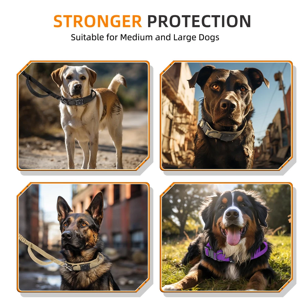 【100% Waterproof】-- This air tag dog collar holder with a fully sealed design and built-in waterproof ring. Dog can swims with it for a long time. It can keep your AirTags dry and avoid AirTag damage due to water Ingress. 【Integrated Design】-- Unlike other separated AirTag case, our Air Tag dog collar has an integrated AirTag holder, which is perfectly compatible with AirTags and effectively prevents the AirTag from falling off or or dangling. (Note: AirTag is not included.) 【Premium Material】-- Tactical airtag dog collar is made of 1000D premium quality nylon fabric and strong metal buckle, very durable and wear-resistant. Soft, breathable and comfortable padded inner won't hurt dog's fur and can protect dog's neck well. 【Double Security】-- Buckle GPS tracker dog collars is designed with Velcro and quick release metal buckle dual design. Adjustable dog collars easy to put on and take off, the metal buckle can be released quickly in case of emergency, guaranteeing safety for your dog. 【Practical Design】-- Military AirTag dog collar comes with an enlarged control handle to help you control your dog well. Available in 3 sizes, fits medium and large dogs. Please follow the size chart to measure your dog's neck carefully before you place the order to ensure the collar is fit well to your dog.
