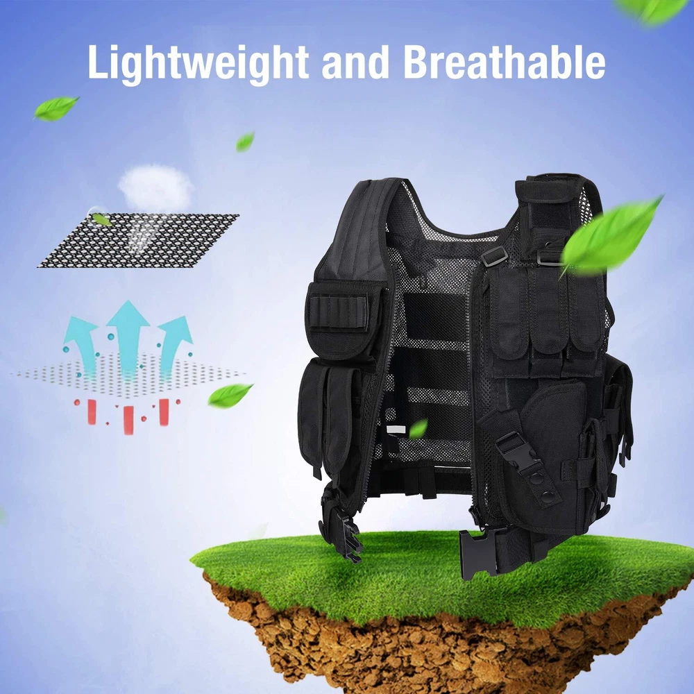 30-Days NO RISK 100% Full Assurance for any reason .The best and only Tactical vest you'll ever need. If you are not satisfied for any reason,such as size and any other reason, money back ! SIZE’ Adjustable for adults, S-XXXXL: the maximum waist is 57 inches (145cm), the smallest waist is 35 inches (89CM); the longest length is 22.5 inches (57cm); the shortest length is 20.5 inches (52cm), it could be adjusted to fit the shoulder and waist size. NOTE:Different people and different assembly methods will cause differences in waist circumference and belt size on both sides,please be patient to adjust it. High Quality and Durable: made of 600D Encryption Polyester. High Quality materials and stitching. Mesh marterial for ventilation and comfort, Heavy duty back loop system for modular attachments. MOLLE & VELCRO: Rear panel of the vest is constructed with modular webbing for attaching additional gear and pouches. Rear of vest features an internal hydration pouch (bladder not included) Multi-options bag: 1 Deluxe Universal Holster, 3 Deluxe Adjustable Mag Pouches, 3 Deluxe Universal Mag/Flashlight Pouches 1 Radio Pouch,1 Large ID Pouch , Sniper Shoulder. A Great Modular Tactical Vest for Airsoft and Paintball games. This tactical vest is a great choice for you,you will get best performance in paintball, airsoft and other outdoor activities such as camping and even on duty.