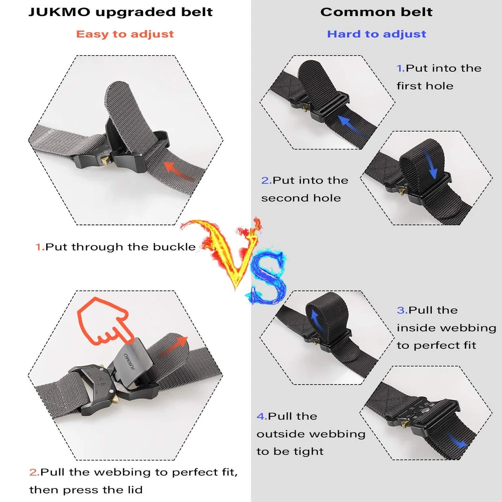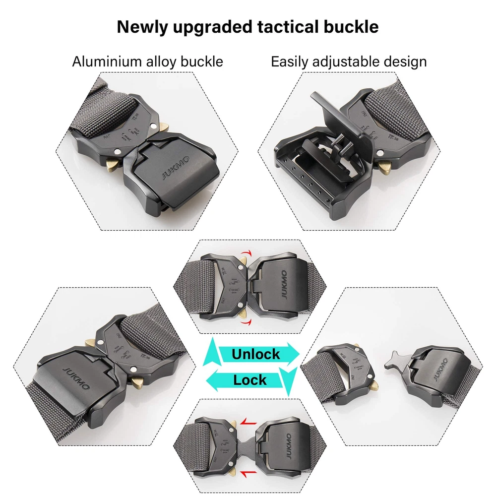 QUICK RELEASE BUCKLE UPGRADED VERSION:The crafted heavy-duty buckle, made of aluminium alloy, has very strong load-bearing capacity, which can meet your different wearing requirements. The upgraded part is that it is more convenient to adjust the length to perfect fit more than you can imagine. If you want to understand more intuitively how to be more convenient, you can watch our short tactical video. HIGH QULITY STRETCH NYLON:We intent to make the strap be stretch. The strap is made by special stretch material which is more solid than regular belt. More than that, it is very sturdy as well as stretch, which make your waist be more comfortable as well as stay tight, when you take large range of activities. Anyone who do physical activities for a long period of hours will get a great use out of the tactical belt FOR SPECIAL YOU: Our solid belt suits for military, SWAT, fire fighters, work, sport and other tactical users. Anyone who need to take any activity will be in harmony with the belt AS A PRESENT: Our elaborate belt is enclosed in an elegant gift box for you giving whoever you love, or yourself SHOPPING GUARANTEE:If you meet any problems after purchasing the belt, please don't hesitate to contact us. We promise to provide you 100% satisfaction guarantee