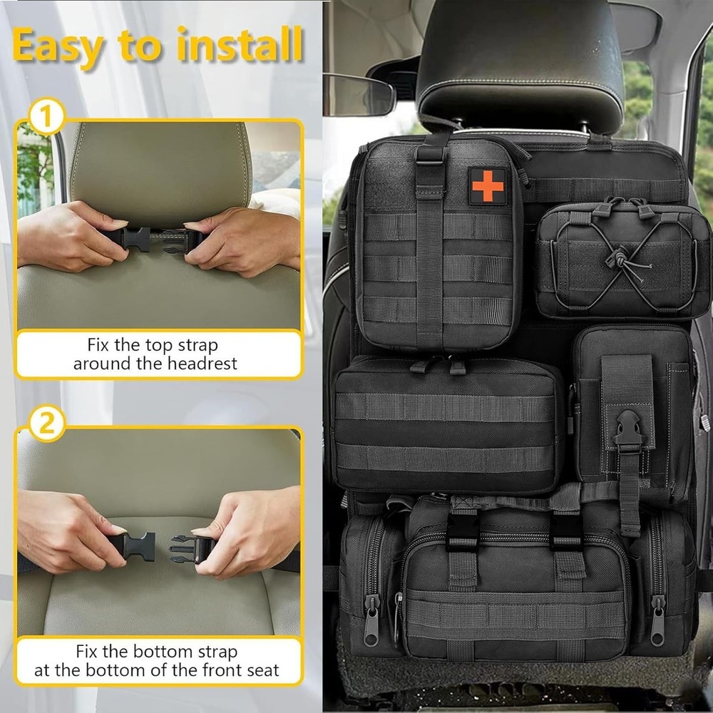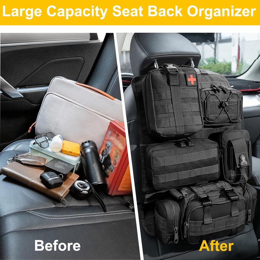 Tactical Car Seat Organizer with 5 Detachable Molle Pockets in Black