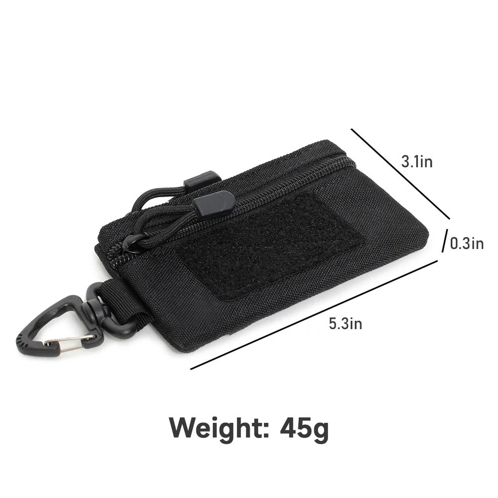 Features: 1.High Quality: This key case is made of 1000D nylon material, which is abrasion and tear resistant, waterproof and reliable, you can use it for a long time. 2.Portable: The Small storage bag is small and practical, with a side hanging pocket design, you can hang it on your bag, pants or belt, it is very convenient to use when going out. 3.Practical Design: Built-in divider pockets, you can sort and place various small items, such as keys, watches, coins, etc., and one long pockets on the back of the bag, you can store your pens in them. 4.Widely Applicable: Our key case is versatile and can be used for various outdoor activities such as mountaineering, traveling, hiking, fishing, etc. It will be a great little accessory bag for your outings. Package Included: 1* Wallet Notice: 1.Please allow 2-3% error due to manual measurement. 2.The colors may have different as the difference display, please understand. Contact US: Your satisfaction is our highest priority.Please contact us if you have any questions or requests about our products or service. We are always glad to assist you and stand by our products.