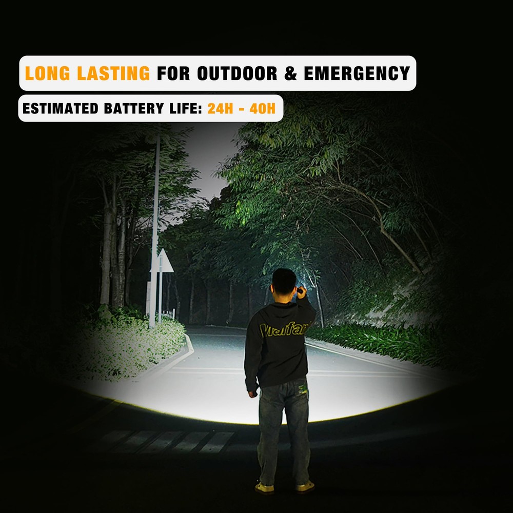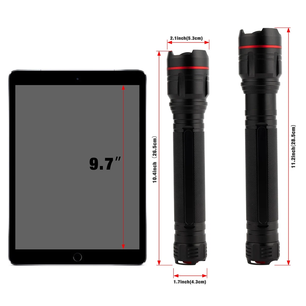 Long Lasting D-cell Flashlight: Equipped with 3 D batteries (not included), this flashlight ensures clear visibility up to 24 to 40 hours of runtime depending on batteires Easy to Use: Simplify your lighting experience with our intuitively designed D flashlight by pressing the tail button to turn on/off or switch modes High Lumen Flashlight: Our big flashlight delivers powerful lighting with 1000 lumens on high mode and 300 lumens on low mode, ideal for home use, camping, or emergency situations Zoomable Design: The flashlight features an adjustable focus for versatile tasks and environments. Switch between a wide flood beam for broader coverage and a focused spotlight for long-distance illumination Rugged Tactical Design: this aluminum heavy duty flashlight features a striking bazel, a slip-resistant body and a high IPX6 waterproof rating, perfect for personal defense and outdoor use ☆ Sincere Customer Care: Dedicated to your satisfaction, our customer service team is committed to providing sincere and attentive support. Whether you have questions or need assistance, we are here to ensure a seamless and pleasant experience with every interaction.
