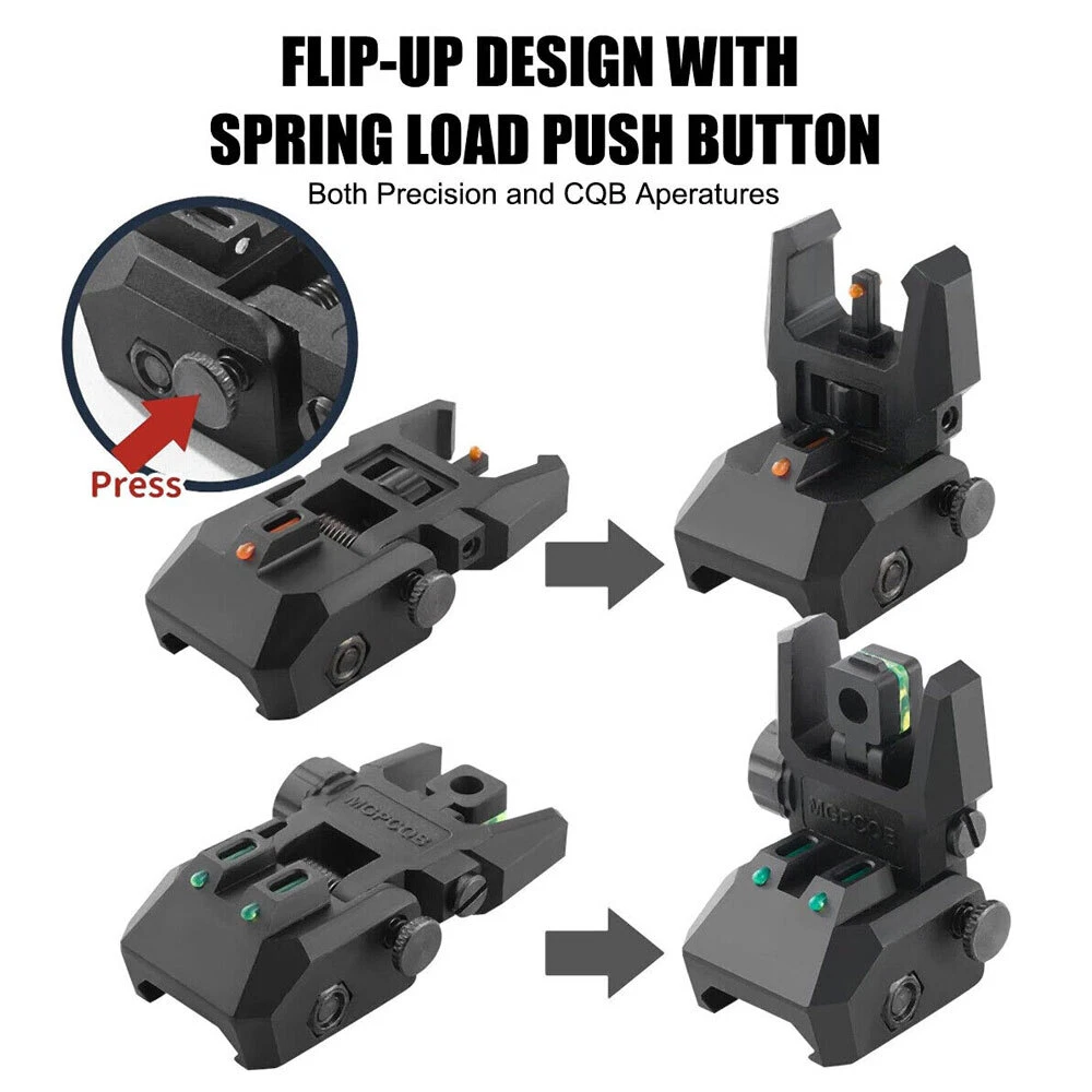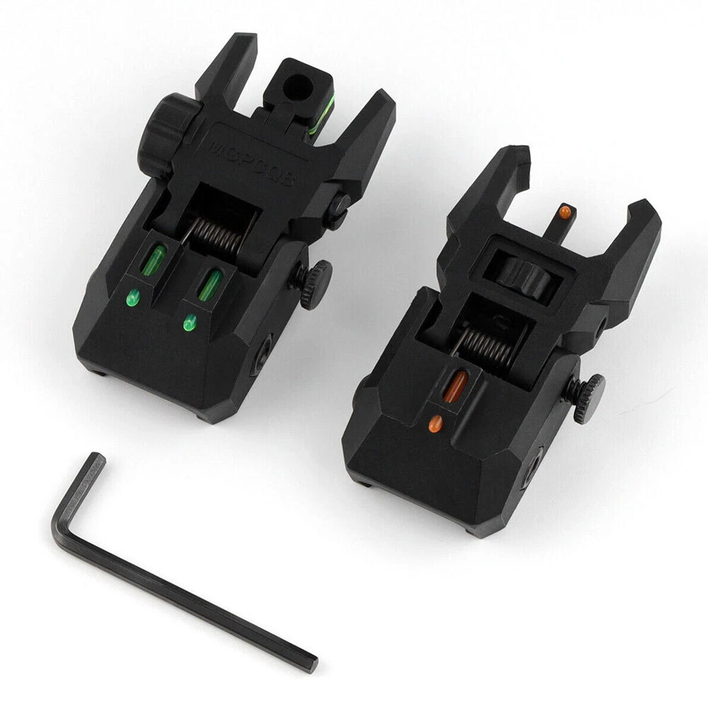 Tactical Folding Back Up Iron Sight Flip Up Sights Front & Rear Picatinny Rail