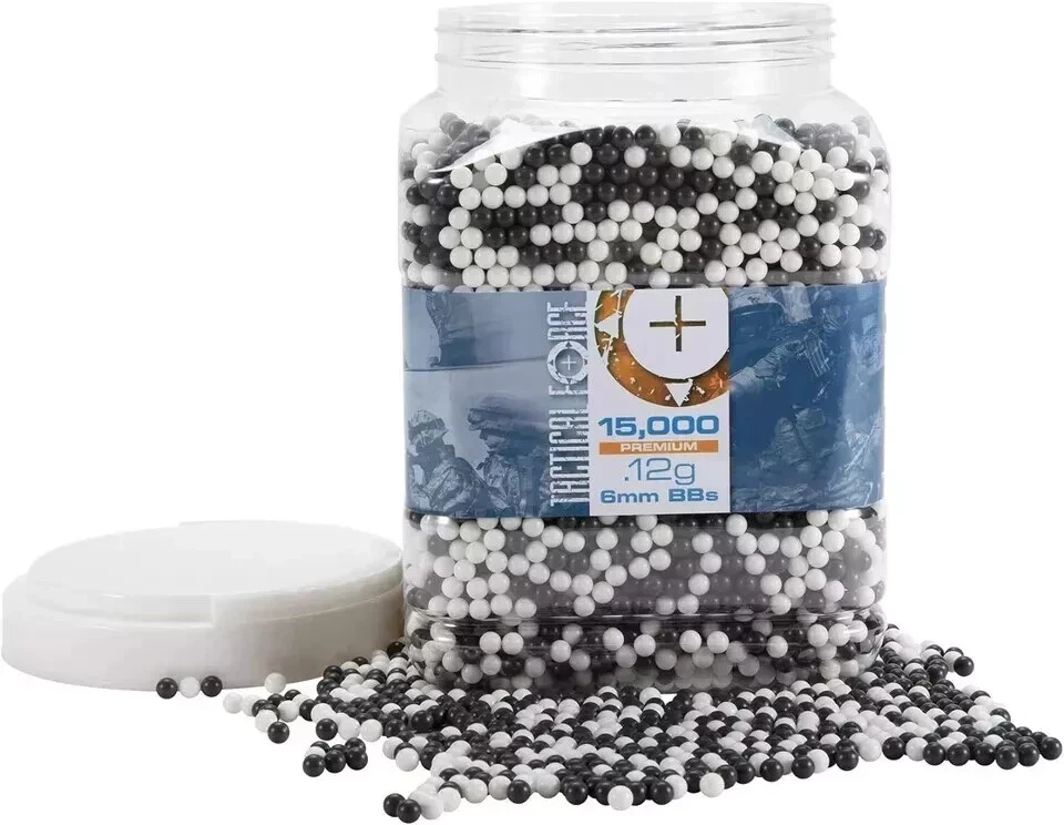 About this item 15,000 Premium Tactical Force Airsoft BBs Polished to perfection; Loads and shoots smoothly for airsoft guns Weight: 0.12 gram High quality airsoft BBs designed specifically for the most demanding and serious tactical scenarios 6mm plastic BBs compatible with most airsoft guns