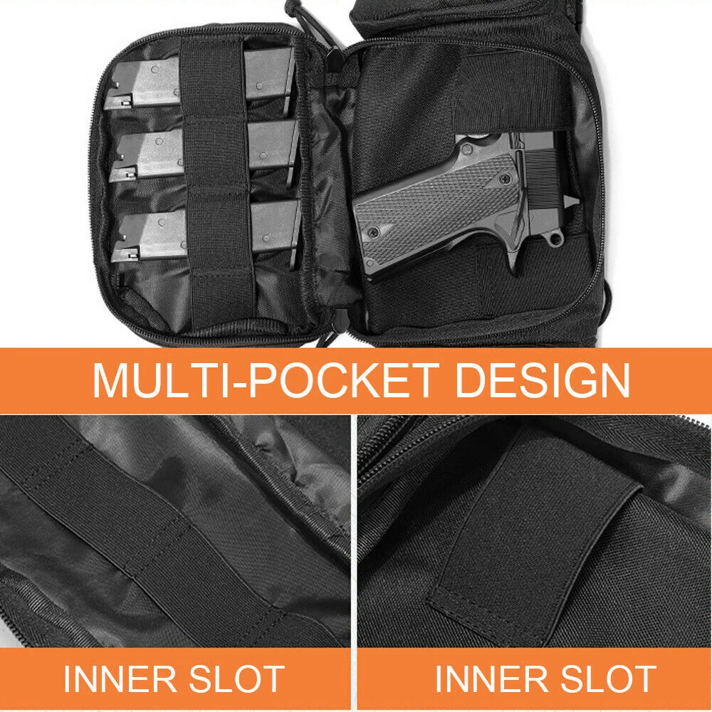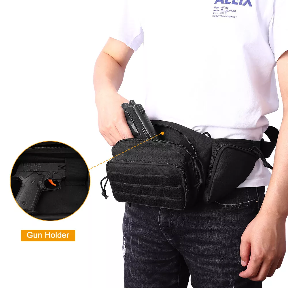 Store Categories Store Categories Concealed Carry Tactical Needs Hunting Accessories Tactical Holsters Gun Slings & Belts Gun Accessories Tactical Tool Car Accessories Bag & Pouch EDC Bags Bottle Pouch ID Card Holder Key Pouch & Wallet Mag Pouch MOLLE Pouchs Survival Kits Hats Other Tactical Gun Bag Case Holster for Men Concealed Pouch Carry Waist Bag Fanny Pack Product Description This is a m ultifunctional pistol holster that can be used in many ways, such as self-defense , outdoor mountaineering, leisure tourism, tactical drills, etc. This is a c omfortable and durable ultimate Fanny gun bag. The surface l a yer is made of durable nylon, and the back side is specially designed with lattice mesh and sponge, which makes it more breathable and comfortable. Unique multi-functional three-layer waterproof design, with two triangle bags on the two sides. The super large space design can be equipped with various types of pistols and other outdoor tools. With the unique integrated clip slot and hook loop design, the gun can be fixed on the left or right side of the main bag according to your habits. With thesensitive hot pull bag, you can quickly touch the gun and make a quick attack at the critical moment. Fit all subcompact compact full size handguns. Fit max 48 inch waist. Size: Middle main handgun pouch - 7.6 "L x 6" H x 2 "W; Front bag - 7.2" L x 4.5 "H x 1.2" W; hidden zipper bag - 7.9 "L x 5.1" h; Triangular front bag on both sides - 4.3 "x 5.1" x 5.9 "W Belt max length 120cm/ 48 inch Package Content: 1 x waist handgun pouch Shipping Policy Returns Policy Shipping Policy Orders will be shipped within 24 hours after payment received . Free USA Direct Shipping,By USPS or UPS. Fast 1-5 Days Delivery Time. Returns Policy We fully guarantee our items. All items are in brand new condition unless specified otherwise elsewhere in the description. All returns - defective or otherwise - have to be preauthorized. Please contact us to get an authorization and returning address before sending the item back. All returned items must include original packaging and all accessories. Buyers are responsible for the shipping cost of returning or re- s e nding items. Copyright © 2021 Dianxiaomi