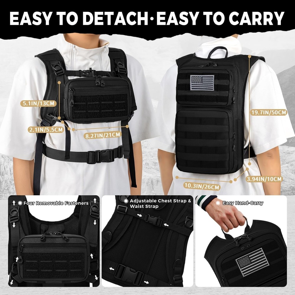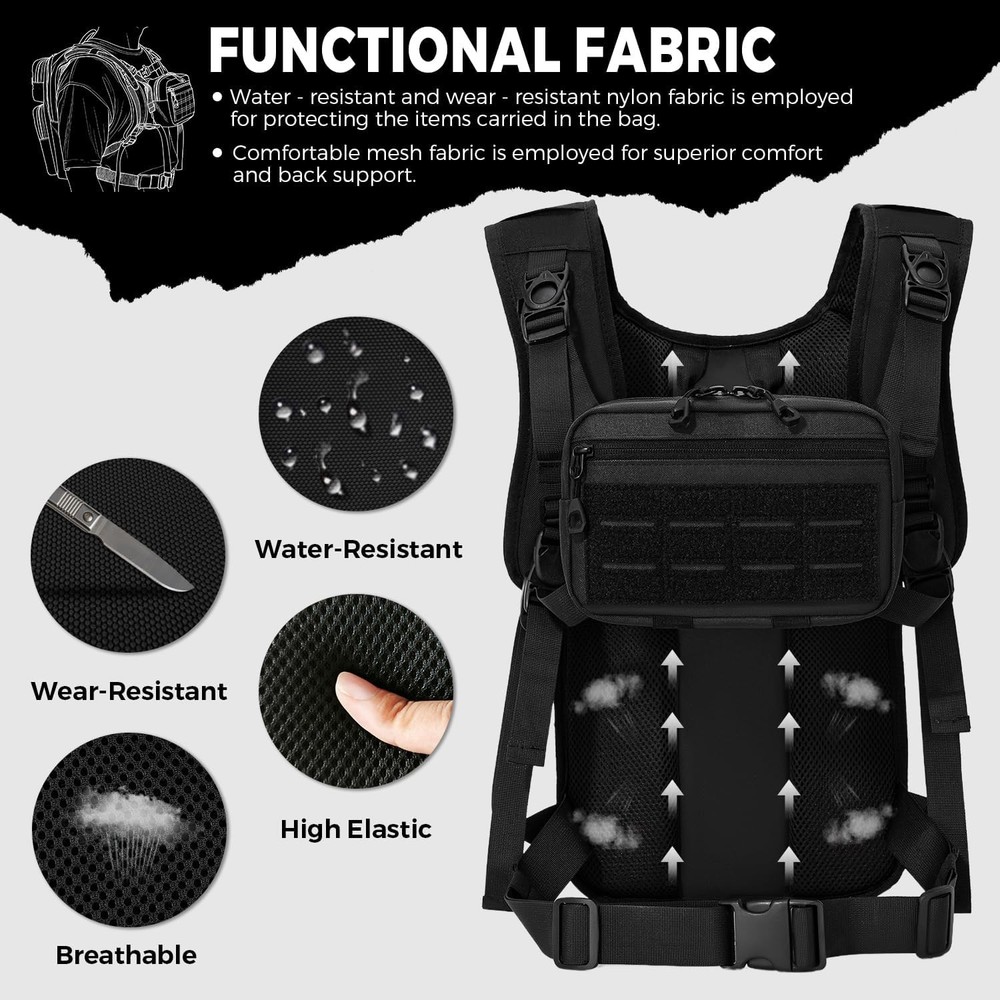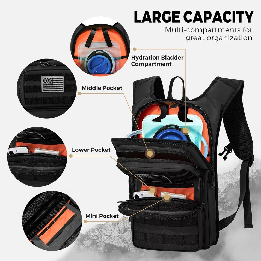 Free eBay listing template designed by dewiso.com Tactical Hydration Backpack with 2L Water Bladder and Front Small Tactical Pouch, Outdoor Water Backpack for Men Women, Sports Hydration Pack for Hiking, Cycling, Climbing FREE AND FAST SHIPPING! About this item Detachable Tactical Pouch ,2L Bladder, USA Flag– Instant Access, No Hassle. The detachable front tactical pouch is a true outdoor essential. Forget stopping to take off your entire pack just to grab your phone, wallet, or energy gels—this pouch keeps small essentials within arm’s reach. Whether you’re pausing to snap a hiking photo, check a trail map, or pay for snacks, it eliminates fumbling and keeps your adventure on track. Spacious Tactical Outdoor Hydration Backpack Organized Storage for Mid-Short Trips – More Than Just a Hydration Pack. Designed to carry more than just water, this Hydration backpack features two roomy backside pockets. Fit a change of clothes, a compact first-aid kit, trail mix, a portable charger, and even a lightweight rain jacket—perfect for day hikes, 4-6 hour bike rides, or weekend camping trips where you need to travel light but prepared. No more sacrificing gear for hydration! Heavy-Duty 900D Polyester – Built Tough for Rough Terrain We didn’t cut corners on durability—this tactical backpack is made with 900D polyester (thicker and more tear-resistant than standard 600D fabric) to stand up to branches, rocks, and scrapes on the trail. The water-repellent coating sheds light rain, dew, and mud, so your gear stays dry when the weather turns. It’s not just a backpack—it’s a reliable companion for years of camping, climbing, and outdoor exploration. Ergonomic Design – All-Day Comfort, No Shoulder Strain The shoulder straps feature an ergonomically designed curved shape, offering enhanced comfort and significantly reducing fatigue even during extended wear. The adjustable waist strap (fits 22-45 inch waists) distributes weight evenly across your hips, taking the load off your shoulders and keeping the pack snug against your back—no bouncing when you’re running or climbing steep inclines. Lifetime Support + No-Risk Guarantee – We Stand Behind Our Product Your satisfaction is our top priority. we offer a no-questions-asked return policy and lifetime support for any manufacturing issues. If you have any quality issues with our product—contact us anytime, and we’ll solve your problem . Buy with confidence—we’re here for you long after your purchase. Product We offer a 30-Day Return Policy on items which you are not completely satisfied with. You have the option for a full-refund or an exchange of the item. No returns are available on items shipped outside of the US . Shipping We offer Free Shipping to the US and ship within 2 business days of payment, usually sooner. We use UPS express shipping. That's why your products are usually delivered within 3 days . Contact We try our very best to make sure every customer is completely satisfied. If there's a problem , message us! We're happy to help. 24/7 live chat available.
