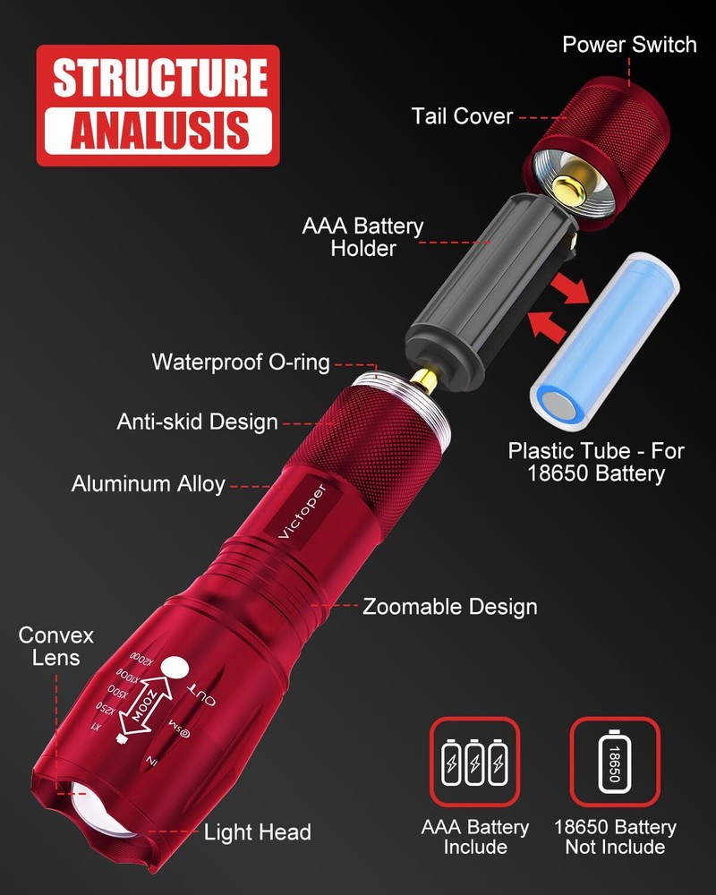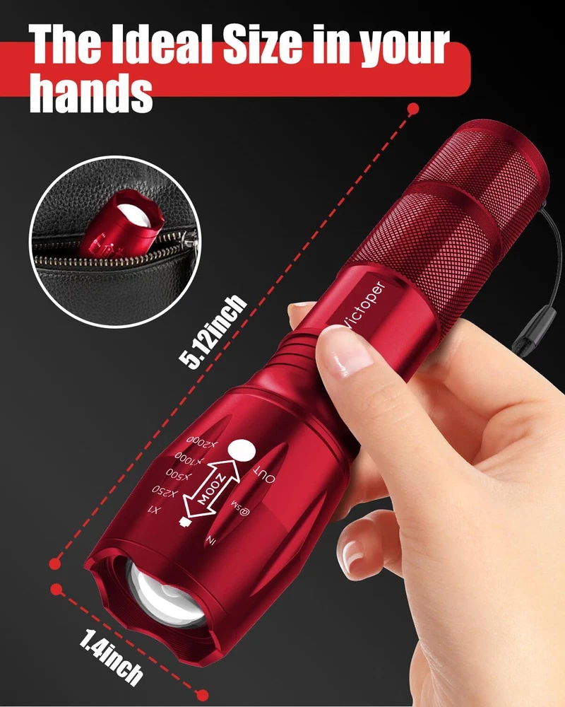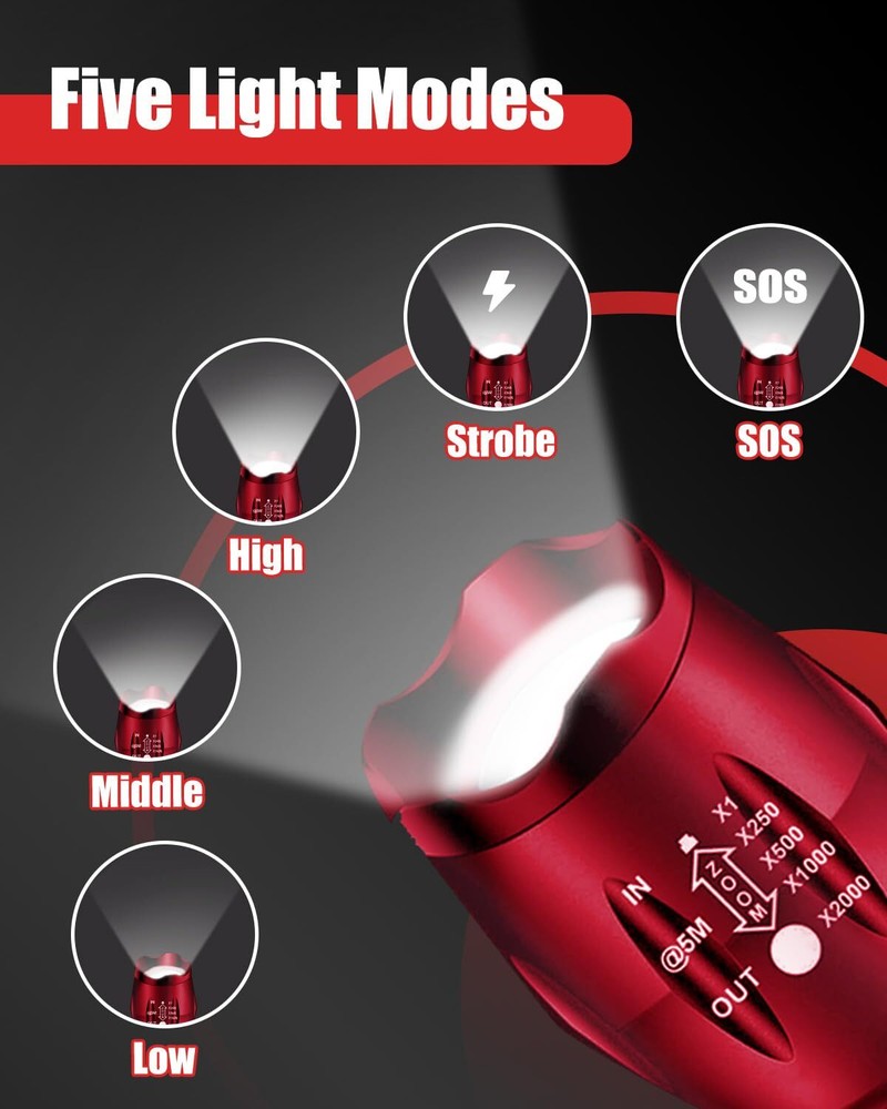 LED Flashlight 2 Pack Red, Bright 2000 Lumens Tactical Flashlights High Lumens with 5 Modes, Waterproof Zoomable Flash Light for Outdoor, Gifts for New Year 2025 Camping Essentials Gear flashlights, flashlight, flashlights high lumens, led flashlight, tactical flashlights, flashlights high lumens, flashlights for emergencies, bright flashlight, tactical flashlight, super bright flashlight, tactical flashlights high lumens, handheld flashlights, high powered flashlight, powerful flashlights, gifts for men women dad mom adults, stocking stuffers, camping essentials,camping gear, gift for Father's Day Shipping We offer FREE shipping on all orders! We ship within Three business days of payment, usually sooner. We use a selection of shipping services such as UPS, FedEx, USPS etc. We only ship to the lower 48 states, no APO/FPO addresses or PO Boxes allowed. Local pickups and combined shipping options are not provided at this time. Return You can return a product for up to 30 days from the date you purchased it. Any product you return must be in the same condition you received it and in the original packaging. Please keep the receipt. Payment We accept payment by any of the following methods: PayPal Please pay as soon as possible after winning an auction, as that will allow us to post your item to you sooner! Feedback Customer satisfaction is very important to us. If you have any problem with your order, please contact us and we will do our best to make you satisfied. Contact Us If you have any queries, please contact us via ebay. We usually respond within 24 hours on weekdays. Please visit our eBay store to check out other items for sale! Thank you for shopping at our store.