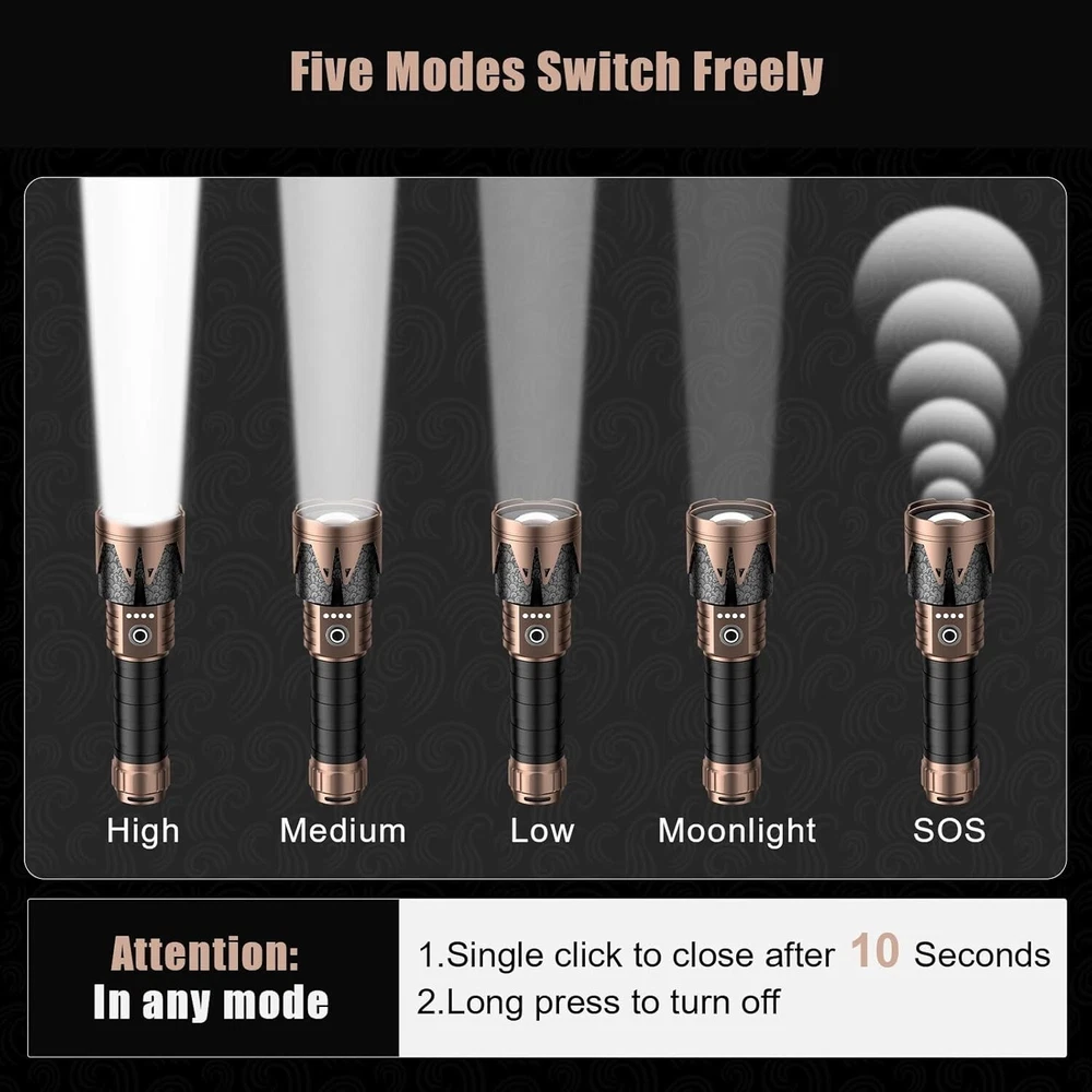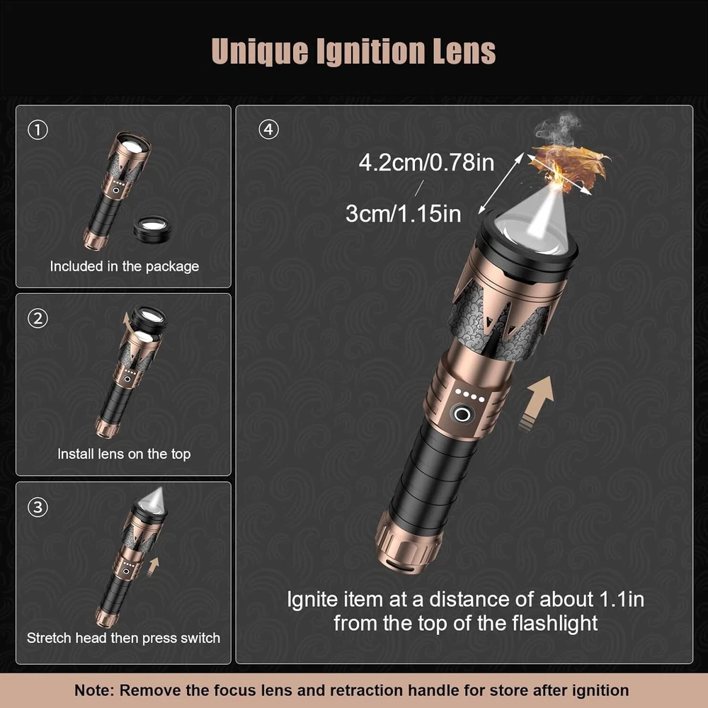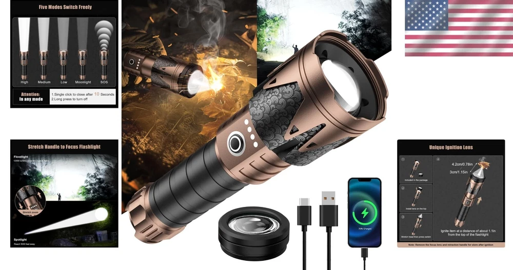Tactical LED Flashlight with Ignition Lens & 12000 Lumens - Camping Essential ‹ › ‹ › ‹ › ‹ › ‹ › ‹ › ‹ › ‹ › ‹ › ‹ › ‹ › Tactical LED Flashlight with Ignition Lens & 12000 Lumens Camping Essential Product Features: Super Bright Zoomable Flashlight: Delivers an impressive 12000 high lumens with a beam distance reaching up to 5200 feet. Perfect for home emergencies, camping essentials, and outdoor survival. Adjustable Zoom Function: Switch seamlessly between spotlight and floodlight modes with the stretchable head, ensuring everything within sight is crystal clear even in the darkest settings. Long-lasting Performance: Powered by a robust 5000mAh lithium battery, enjoy up to 16 hours of usage. It also features Type-C charging and reverse output, allowing for emergency charging of your devices. Unique Ignition Function: Equipped with a patented focusing lens, this flashlight enables you to heat and cook in wild settings, providing a memorable camping experience. Tips for use included for safe practice. Multiple Modes: Choose from five versatile lighting modes: High, Medium, Low, Moonlight, and SOS, designed to meet various lighting needs while remaining easy to operate. Exquisite Exterior Design: Engineered for durability, this 2000J flashlight can withstand a 1.2-meter drop and is crafted from tough, waterproof materials ensuring reliability in all outdoor conditions. Quality Assurance: Comes with a one-year warranty, including a tactical lanyard, lithium battery, charging cable, and focus head, all beautifully packaged to ensure your satisfaction. Why Choose Our Tactical LED Flashlight? When adventure calls, silence the uncertainties with our Tactical LED Flashlight, merging power with convenience. With its stellar brightness and unique ignition function, experience unparalleled versatility whether you are camping beneath the stars or navigating home emergencies. Its water-resistant design and rugged build offer unmatched durability, ensuring that every outing is safe and successful. Don’t let darkness hinder your adventures. Embrace the brilliance of our Tactical LED Flashlight and illuminate your path today! Shipping Free & Fast Shipping - We offer free shipping to most of the USA with a normal delivery time of 3-7 days. However, due to the current situation, additional delivery time (up to 3 weeks) may be required for some items. Alternative Carriers - We may use alternative carriers (e.g. USPS, FedEx, UPS, etc.) to ensure your package arrives safely and on time. Due to the use of multiple carriers, we are unable to provide a tracking number automatically. Handling Time - Orders are processed and shipped within 1-2 business days of receiving cleared payment. Shipping Restrictions - Shipping to Alaska, Hawaii, Puerto Rico, Guam, and other US territories may incur shipping charges or delivery restrictions. Please contact us before ordering, or your order can be refunded/cancelled. State Restrictions - There may be restrictions based on your state of purchase. For example, certain items may not be shipped to California due to state regulations. Contact for Tracking Updates - If you require tracking updates or have any concerns about the delivery of your order, please feel free to contact us, and we will be happy to assist you. Return 30-Day Hassle-Free Returns - We want you to be completely satisfied with your purchase. If you are not, you can return the item within 30 days of receiving it for a full refund or exchange. Easy Return Process - To start a return, simply contact us and we will provide you with a prepaid return shipping label and detailed instructions. Restocking Fee - There are no restocking fees for returns. However, the buyer is responsible for return shipping costs if the return is not due to a seller's error. Refund Processing Time - Refunds will be processed within 5 business days of receiving the returned item in its original condition. Payment We accept all major credit cards, PayPal, and Apple Pay for your convenience. Your payment information is secure and encrypted to ensure a safe and seamless transaction. Please complete your payment within 3 days of purchase to avoid any delays in shipping. Feedback Your feedback is extremely important to us. We strive to provide the best products and customer service possible. If you are satisfied with your purchase, please take a moment to leave us a positive review. If you have any concerns or issues with your order, please contact us before leaving negative feedback. We are committed to resolving any problems and ensuring your satisfaction. Contact Us If you have any questions or concerns, please feel free to reach out to our customer support team. You can contact us through the eBay messaging system. We are available Monday to Friday, 9:00 am to 5:00 pm EST, and we will do our best to respond to your inquiry within 24 hours. Thank you for supporting our small family business! UPC: Not Set Voltage: 3.7 volts Item Height: Not Set Item Length: Not Set Item Weight: 1.59 pounds Item Width: Not Set Model: Not Set Lumens: 12000 Number of LEDs: 1 Unit Quantity: 1 Material: Aluminum Features: Handheld,Rechargeable,Waterproof,Zoomable,Emergency Tool Brand: Unbranded Type: Flashlight Lighting Technology: LED Power Source: Battery Operating Range: 5200 feet MPN: Not Set Number of Batteries: 1 Battery Technology: Li-Ion Color: Black Country/Region of Manufacture: Not Set Operating Time: More Than 10 Hours IP Rating: IP44 Number of Lights: 1-3 Unit Type: lb Personalize: Not Set