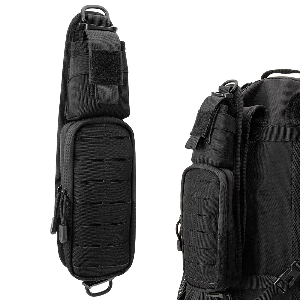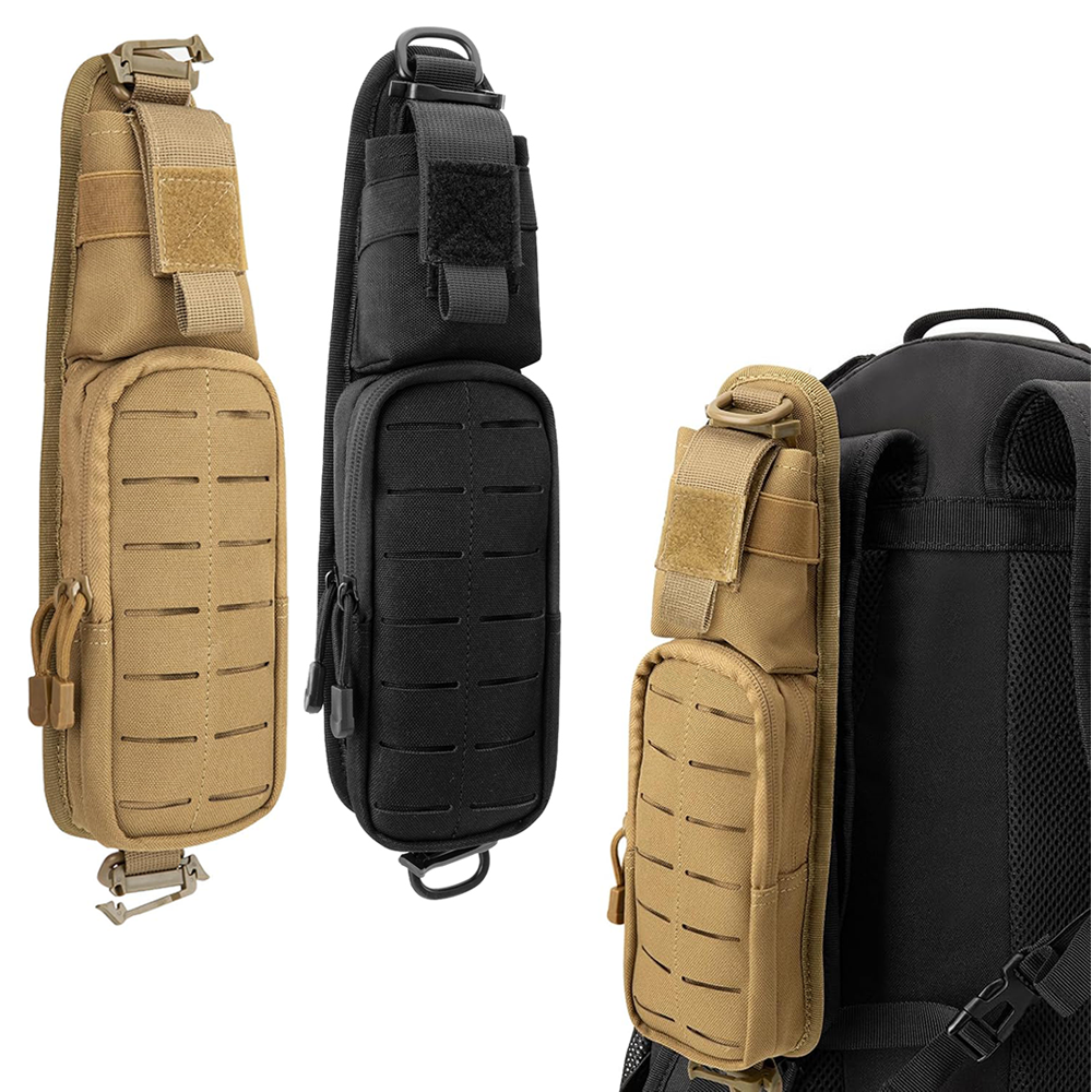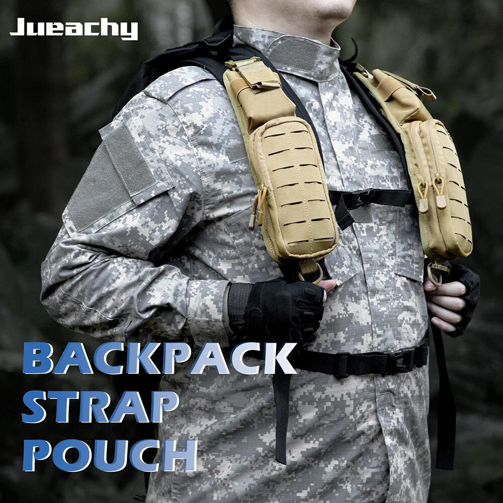【🎒EXTRA BACKPACK STORAGE】 Backpack Shoulder Strap Bag with three main pockets and an elasticized compartment inside the zipper pocket. The shoulder strap bag is a very good tactical backpack accessory. You can use the backpack strap pouch to store your small items such as cell phone, sunglasses, knife, flashlight, EDC gear, walkie talkie, radio etc. 【🎒 MOLLE SYSTEM】 Further provides capacity and is a hanging place for many of your small items, you can put glasses, pocket knife, hooks or other small tools. When you want to go hiking outdoors, this shoulder strap bag can bring extra capacity to your backpack 【🎒 MULTIPLE MOUNTING METHODS】 You can decide what mounting method to use according to your backpack. 1. Attach with the back Velcro, easy and convenient. 2. Attach with the buckle on the back of the shoulder molle pouch, more sturdy. 3. Attach with the Hook-N-Loop flap/cover on the top of the backpack attachements. Each method secures the Backpack Shoulder Strap Bag vertically/horizontally on the backpack 【🎒 NEW UPGRADED DESIGN】 Compared with the shoulder strap pouch on the market, Jueachy backpack accessories have more capacity and can put more things. The zipper is also replaced with a more silky and sturdy premium zipper. Also there is a D-ring on each end of the backpack strap phone holder 【🎒 SIZE & FABRIC】 Molle strap pouch use the high quality oxford material, tear and scratch resistant, durable and waterproof. Size: 36*9.5*5CM (L*W*H), Zipper Pocket Size: 19.5*9CM (L*W), Top Pocket Size: 9*7.5CM (L*W). This tactical backpack pouch is the best and perfect companion for tactical backpack