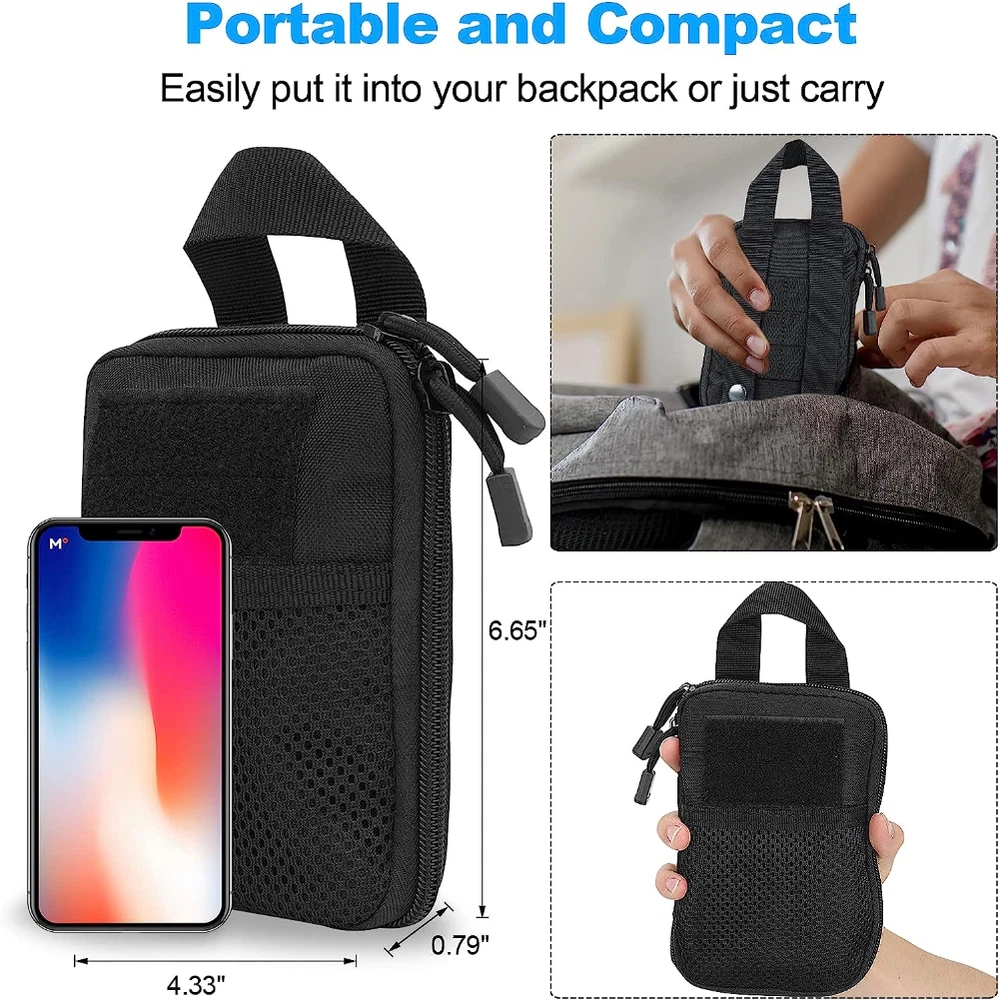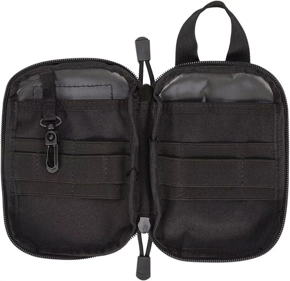 Product Description: Features: 1. Quickly Access: Full clamshell opening provides more storage space yet displays well for easy access. Practical Interior Design: Built in 10 elastic loops (4 x large, 6 x small), 2. 2 inner pockets with a key clip, and 1 small front mesh pocket, great for organizing various EDC or multitools like keys, cables, USB drives, flashlight, pocket knife, tactical pen, notebooks. 3. Easy To Carry: Pocket size 6.65"x 4.43"x 0.79" make it easy to put into your large cargo pockets or bag; Molle system and handle loop conveniently attach all your MOLLE compatible gear such as tactical vest, backpack or gear belt to set your hands free. 4. Great EDC Pouch: Also could be used as a travel wallet pouch or EDC pouch bag, perfect for traveling and daily useful organization 5. No Mess Anymore: Multiple excellent elastic bands of various sizes provide great flexibility and space to separately store kinds of small items in place, prevent them from entangling or missing. 6. Premium Quality: Made with sturdy nylon material, excellent elastic loops inside and durable dual zipper closure to secure all your gadgets and access quickly whenever you want. Specification: 1. Material: Nylon 2. Size: 6.65 x 4.43 x 0.79 inches 3. Color: Black/Army Green/Khaki Package Includes: 1 x Tactical EDC Pocket Organizer Pouch