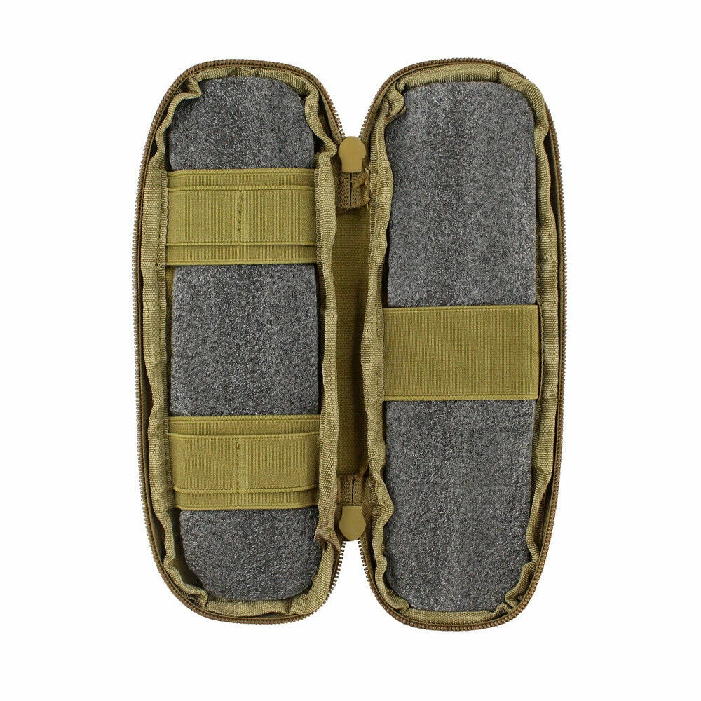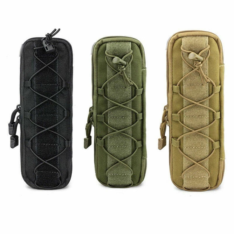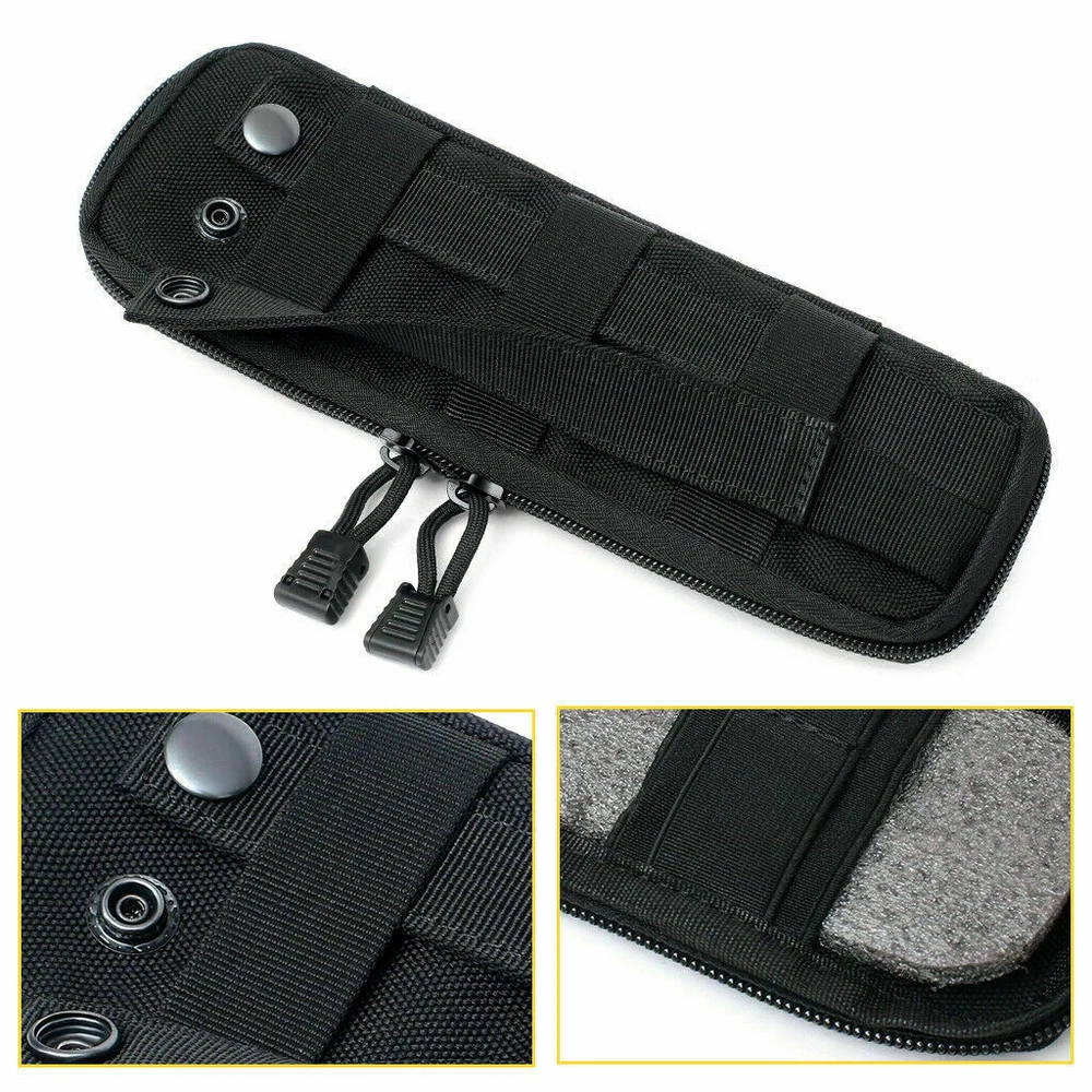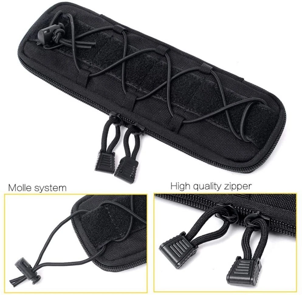 Product Description Features: 1. Made of high-quality Nylon, which is wear-resistant and durable, and long service life. 2. Easy to carry, for using molle attachments, small molle pouch, tactical belt pouch, molle pouches tactical. 3. This is a compact design of the package, the shape of the bag is small and delicate, portable and lightweight. 4. The belt pouch has the adjustable elastic band and nylon clasp design which can fix the item firmly. 5. High quality and smooth zipper design ensures that things will not fall and easier to close and open bags. 6. The vest pouch can accommodate the tools and objects commonly used in outdoor travel, such as cutter, compasses, flashlight and other EDC tools. 7. The bag design with Molle system which can be directly hung through the waist belt on the waist, and can also be hung on the backpack, which is convenient to carry. Specification: Material: Synthetic fibers & nylon Size: 25 x 8 x 2.5 cm Weight: 105g Material: 600D Nylon Fabric Color: Black / Khaki / Army Green Suitable for Camping,hiking,hunting,outdoor sports Package Included: 1 x Tactical Knife Sheath Bag