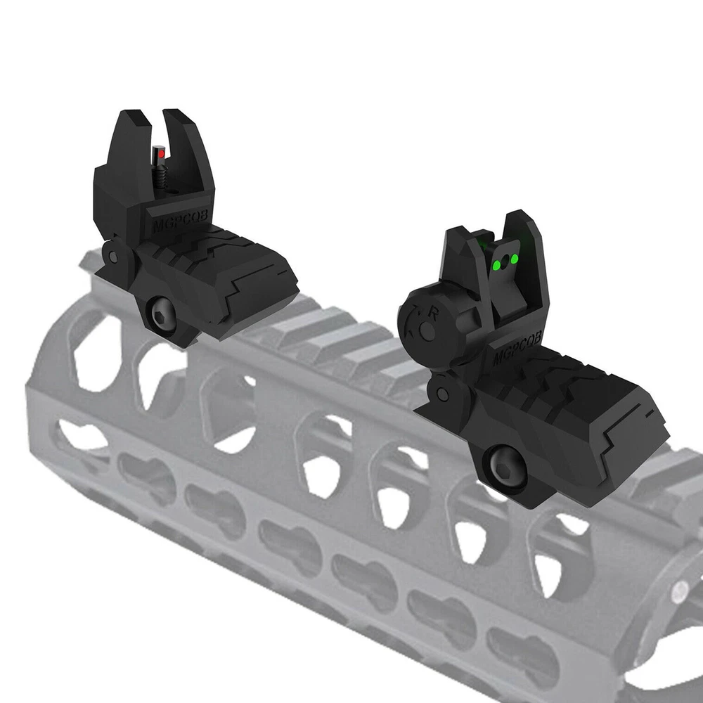 Mounting Location: Rail Model: Fiber Optics Iron Sights Features: Adjustable, Folding Material: Nylon, Resistant High-density polymer Not suitable for: railed gas blocks Type: Sights Modified Item: No Interface: Picatinny / Weaver Rails Compatible with: most 20mm Picatinny/Weaver rails Color: Black MPN: Does Not Apply Brand: Unbranded Sport/Activity: Hunting