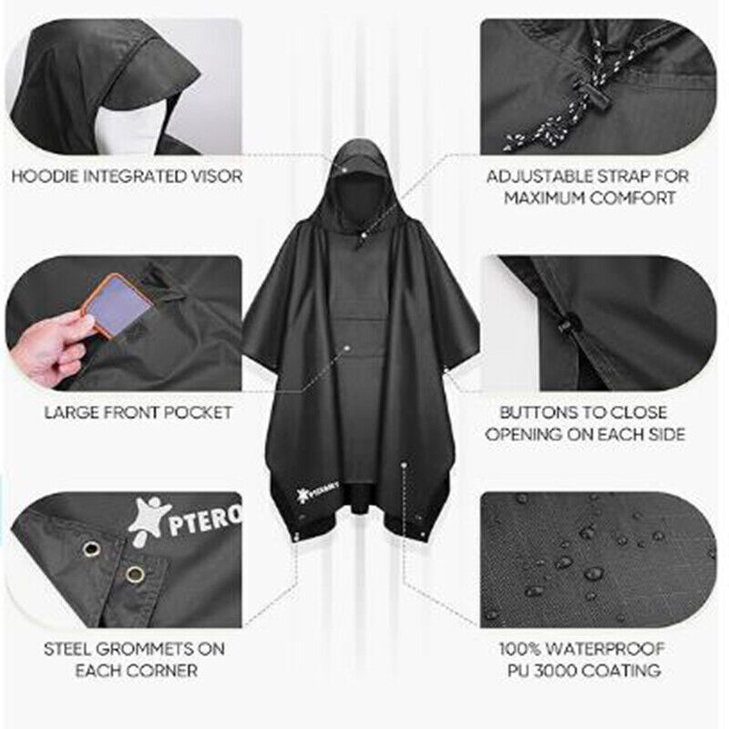 1400LM Waterproof Bright LED Bike Light USB Rechargeable Bicycle Front Headlight 15.96 USD Free shipping Outdoor 6x4 FT Soccer Goal Football Net Kids Backyard Game Sports Training Net 11.99 USD Free shipping Tactical Shoulder Sling Pistol Pouch Chest Pack Bag Concealed Carry Gun Holster# 10.9 USD Free shipping 1000 Lumens Premium Rechargeable LED Flashlight Stainless Steel Pen Light 6.99 USD Free shipping 2x Super Bright LED Lantern Camping Light Tent Lamp USB Rechargeable Night Light 8.77 USD 0.99 USD 360° Aluminum Motorcycle Bike Bicycle GPS Cell Phone Holder Handlebar Mount. 12.59 USD 0.99 USD High Powered LED Flashlight Super Bright Torch USB Rechargeable Lamp Outdoor 9.99 USD 2.99 USD 99000000 Lumens Super Bright Handheld Hunting Flashlight Rechargeable Spotlight 22.99 USD Free shipping 2Pcs Cycling MTB Bike Mirrors 22-25mm For Mountain Road Bike E-Bike Scooter 17.99 USD Free shipping 60L Military Tactical Backpack Large Army Molle Bag Rucksack 3 Day Assault Pack 29.99 USD 0.99 USD Portable LED RGB Fill Light Stick Lamp Colorful Photography Selfie Handheld USB 21.99 USD Free shipping 9000000LM LED Linterna Recargable Linternas Alta Potencia Casa Batería Poderoso 30.99 USD Free shipping 1-10x Premium Rechargeable LED Flashlight Stainless Steel Pen Light 1000 Lumens 7.29 USD Free shipping Solar Lantern Powered Light Fan Portable Collapsible Rechargeable Camping Lamp 18.99 USD Free shipping 150 Languages Real Time Translation Bluetooth 5.4 Headset Translator Earbuds 13.0 USD Free shipping 990000000LM LED Searchlight Rechargeable Solar/USB Spotlight Handheld Flashlight 11.2 USD Free shipping SAFE & SECURE SHOPPING SATISFACTION GUARANTEED FAST SHIPPING Store Categories Store Categories Other Auto & motorcycle parts Headlamp & Flashlight Camping & Hiking Hunting Equipment Cycling Equipment 3C Tools Promotion Hot Sales!!! Cars & Motorcycle Accessories Electronic Product Car Light You may also like Tactical Rain Poncho Army Military Poncho Shelter Waterproof Ripstop Camping US Product Description Description : [ Premium Material ] This rain poncho is made from lightweight yet lasting and rip-resistant polyester material. Seams are sealed with waterproof backing material to guarantee no rain will leak from them. Each corner is reinforced and comes with a grommet. Quality buttons along the side are added to help in windy weather. A brim is incorporated in the hood to help you see better [ Reusable And Easy To Carry ] This rain poncho is easy to fold and weighs only 200g,after being packed in the compact storage pouch, which made it super easy to carry in a backpack or sling bag of any size. Use clean water to wash off any dirt after each use and the polyester material will dry superfast [ 3 In 1 Functional ] Unlike traditional rain coat or rain suit, the rain ponchos for adults are made practical. It can be used flat on the ground as a camping tarp. The grommets on each corner can be used to set it up as an emergency shelter or cover the goods such as backpacks or other camping gear [ Versatile Application ] One size fits most. The adult is designed breathable and will keep you dry for outdoor activities of any kind such as hiking, camping, picnic, and outdoor game watching. Great gift idea for hunting gear for rain gear, or gear [ Quality Commitment ] We stand behind the quality of our products. If for any reason you are not satisfied with your purchase, please contact us. Satisfaction Guarantee for risk-free shopping! Specification : Material : Polyester PVC Weight : 200g Size: Expansion : about 210x145cm / 82.68 x 57.09 inch Folding : about 20 x10 x 5cm / 7.87 x 3.94 x 1.97 inch Color : Black Package Included: 1x Rain Poncho 1x Storage Bag Payment Shipping Returns Contact Us Payment 1. This is the payment method we can accept: Paypal 2. You can checkout and pay immediately after the auction ends or you complete the purchases. If you need an eBay invoice sent to you by Email, please contact us before making payments. 3. Once the checkout is completed, you will not be able to include any additional purchases. We start to process and fulfill your order once payment is received. New purchases after the checkout will be processed separately. 4. Payments are expected within 4 days after the order is confirmed. Unpaid item (UPI) strike may be filed with eBay upon non-receipt of payment. Shipping 1. How much is the shipping & handling (S&H)? Our shipping and handling charges are clearly stated in the Shipping and Payments section of the item page, and we provide Free Shipping for most items. 2. For multiple purchases, the combine shipping discount will be automatically calculated when you check out and pay all of your purchases together. Items checked out separately may not be combined and the combine shipping discount will not be offered automatically. 3. Please make sure the correct Ship-To address is entered before checking out. Once the payment is completed, you may not be able to change the shipping address. We shall not be held responsible for any wrong or undeliverable addresses. 4. We usually ship within 1-2 business days of receiving cleared payment. Returns 1. We put buyer's satisfaction at top priority. If you're not pleased with your purchases, we'll be happy to make an exchange or refund the item total price less Shipping and Handling (S&H) charges within 30 days of your purchases. 2. For any Exchange, Refund or Return, the item must be in its original condition, including the box, packaging, and all the accessories or gifts. 3. We'll provide prepaid return shipping label if the return is a result of our error. Postage reimbursement is offered only on standard mails, and it needs to be approved by our staff prior to returning. 4. Please allow up to 7 business days for returns to be processed. 5. Shipping and Handling (S&H) charges are not refundable. Contact Us 1. Customer satisfaction is very important to us and our feedback rating reflects this satisfaction. If you have any questi