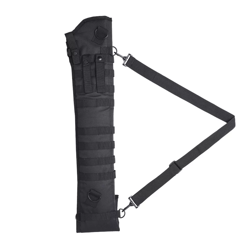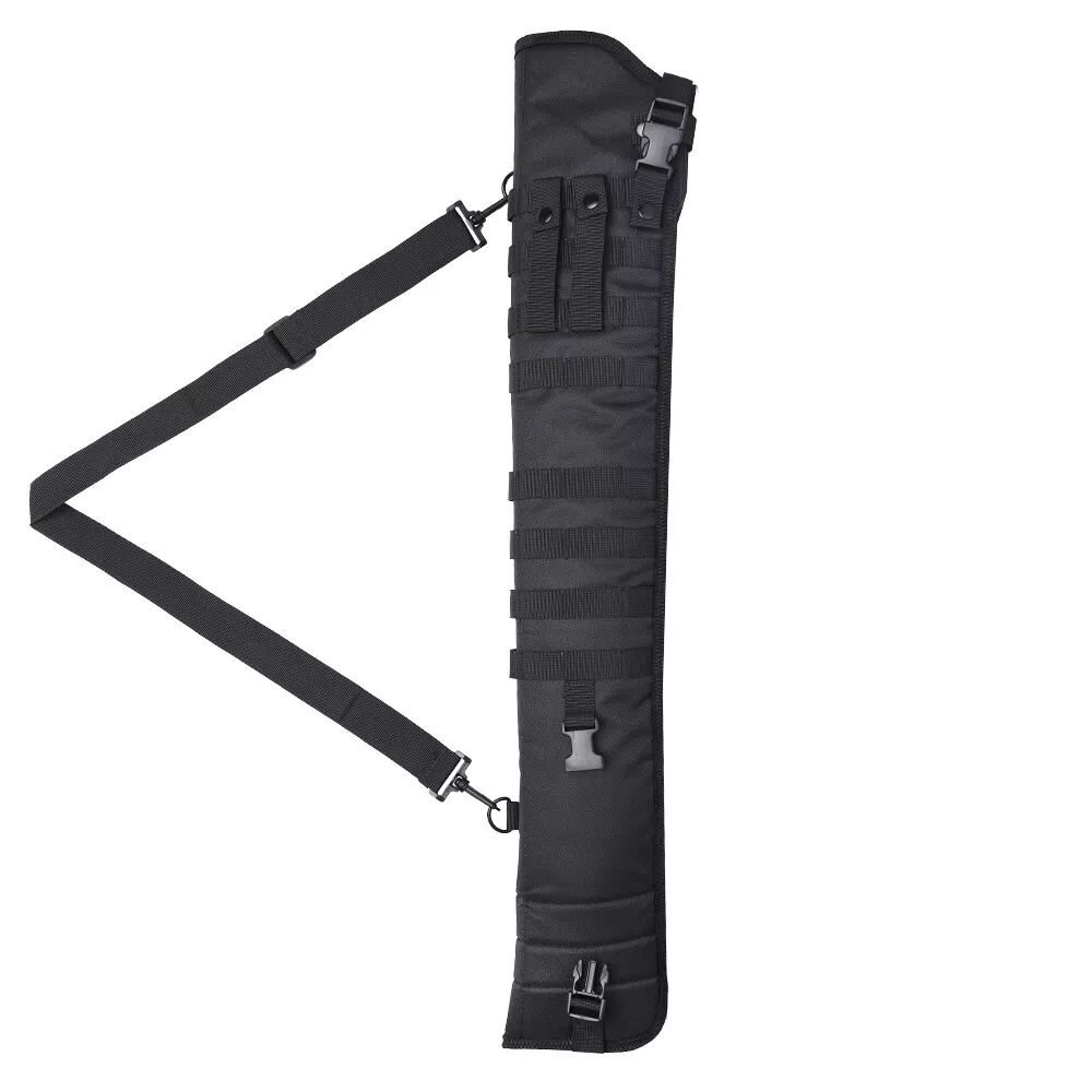 gtin13: 791107963625 Shotgun Scabbard Length: 29.0" - 34.75" For Gun Type: Rifle Number of Guns: 1 Type: Soft Case Color: Black Features: MOLLE webbing on both side, Adjustable Retention Strap, Attached Scope Compatible, Takedown Case, Magazine Storage, Six metal D-Ring locations Material: Polyester UPC: 791107963625 Brand: KyleBooker