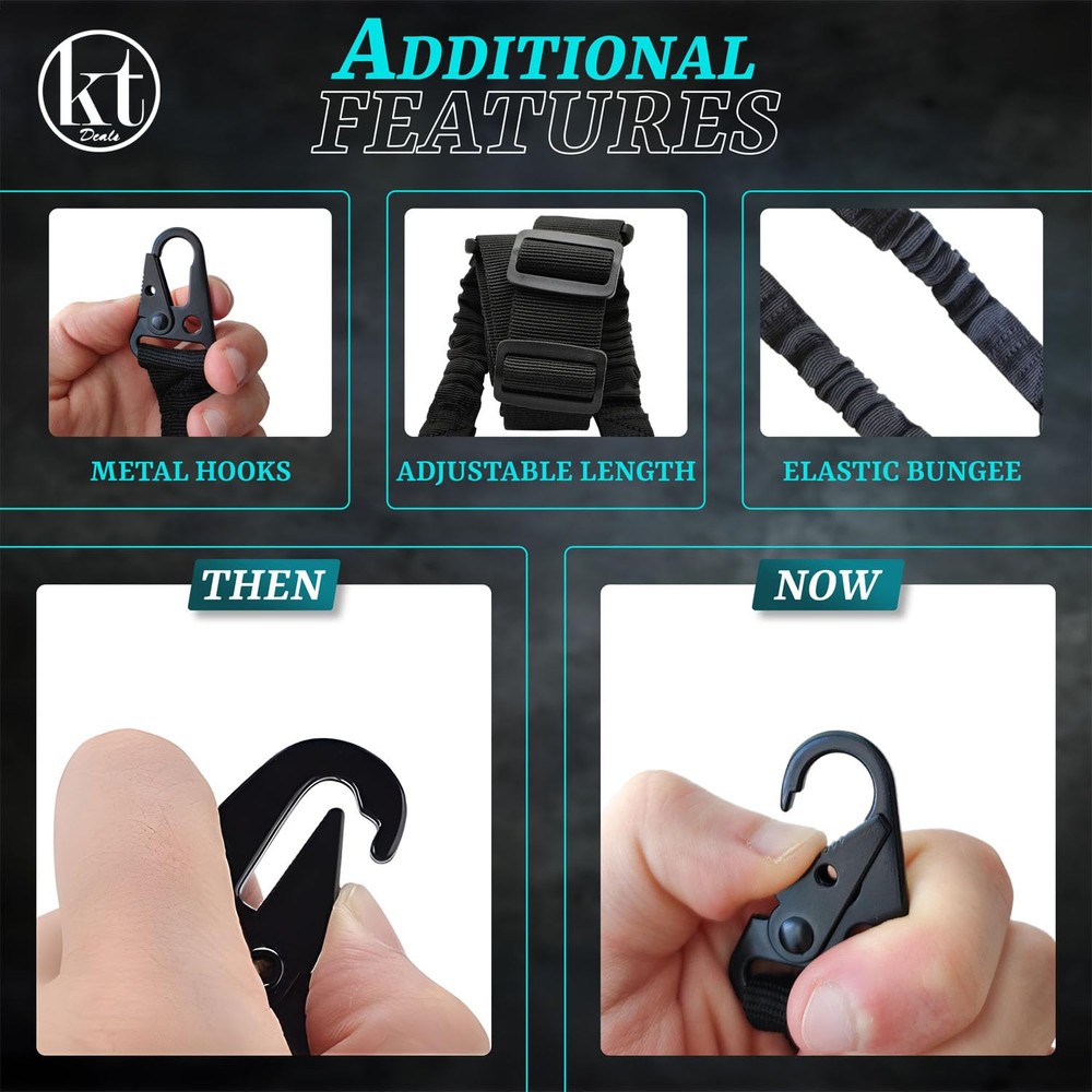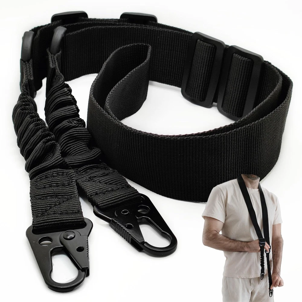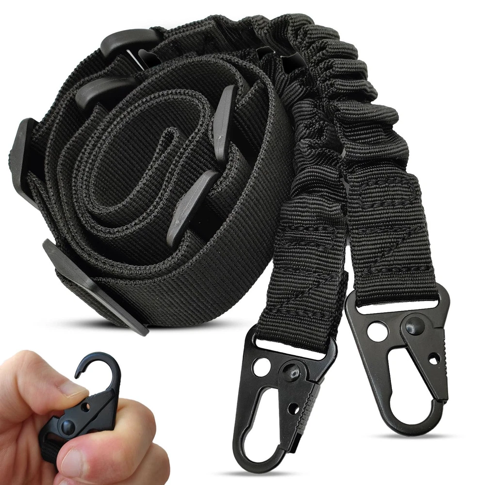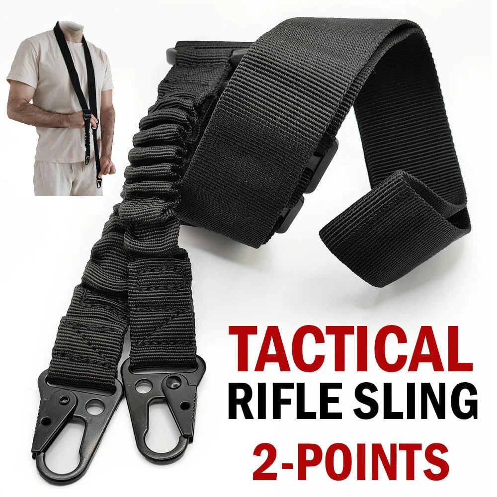 Safe and Easy Carrying - Carry your firearm with ease and confidence using our two point rifle sling. Featuring an excellent 2-point design, the strap evenly distributes the weight of your firearm, reducing fatigue and pressure on your shoulder and letting you stay focused on your target! Adjustable Length - Our innovative length adjuster empowers you to effortlessly customize the 2 point nylon sling's fit to your preference. Achieve the perfect balance between comfort and stability, ensuring your rifle is always within quick reach when you need it! Upgraded Metal Hook - Our Rifle Slings Tactical are equipped with upgraded metal hooks that are super easy to detach and ensure a rock-solid connection between your firearm and sling. No more worries about accidental detachment – focus on your shooting with confidence! Quick and Easy Transition - This 2 Point Gun Strap for Rifle enables seamless transitions between shooting stances and easy weapon handling. Whether you're moving, aiming, or taking cover, our sling adapts to your movements, ensuring your rifle is always at the ready! Multi-Use - This Rifle Hunting Sling can be used as rifle-strap, shoulder bag sling, camera belt or even a safety rope. Whether you're an avid hunter, a shooting sports enthusiast, or a dedicated professional, our tactical shotgun sling is here to elevate your performance to new heights!