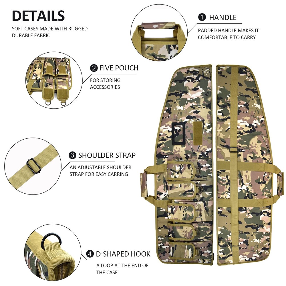 Tactical Soft Gun Case with 5 Pouches for Rifle Shotgun Hunting Shooting