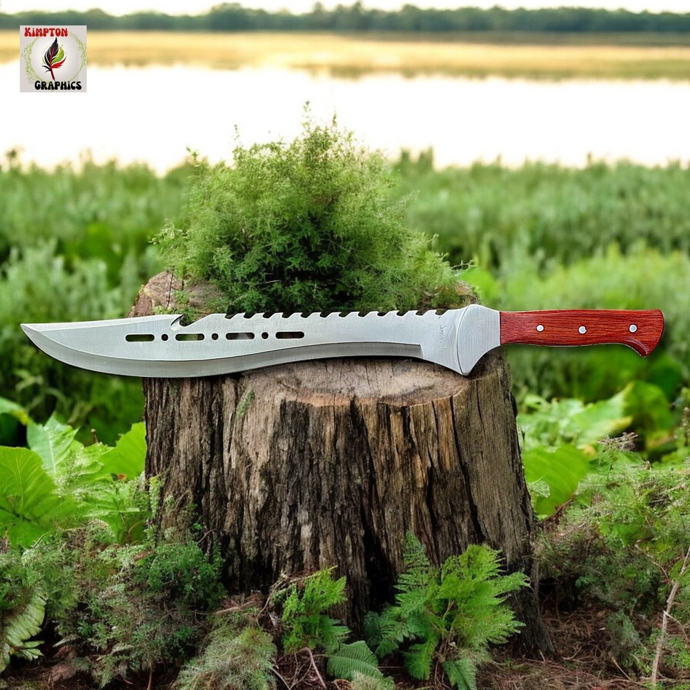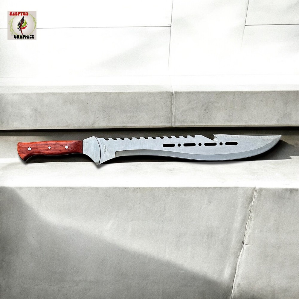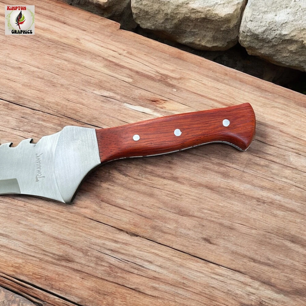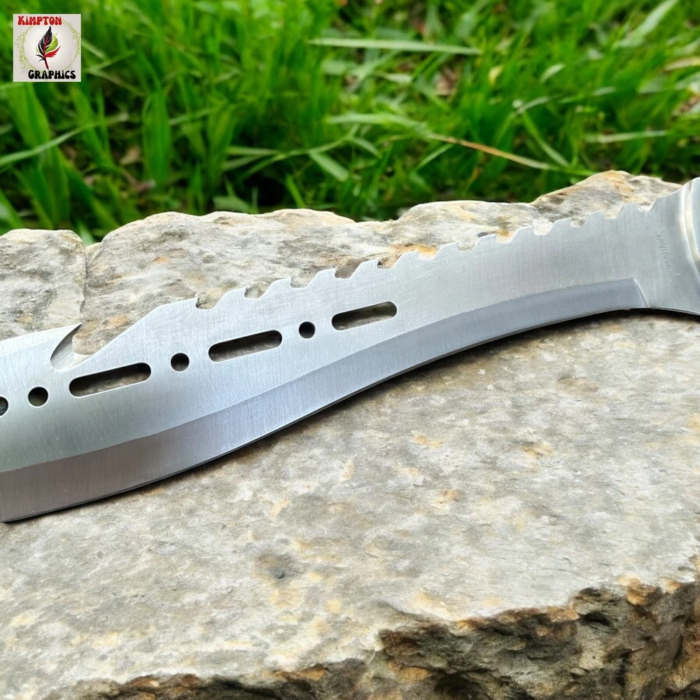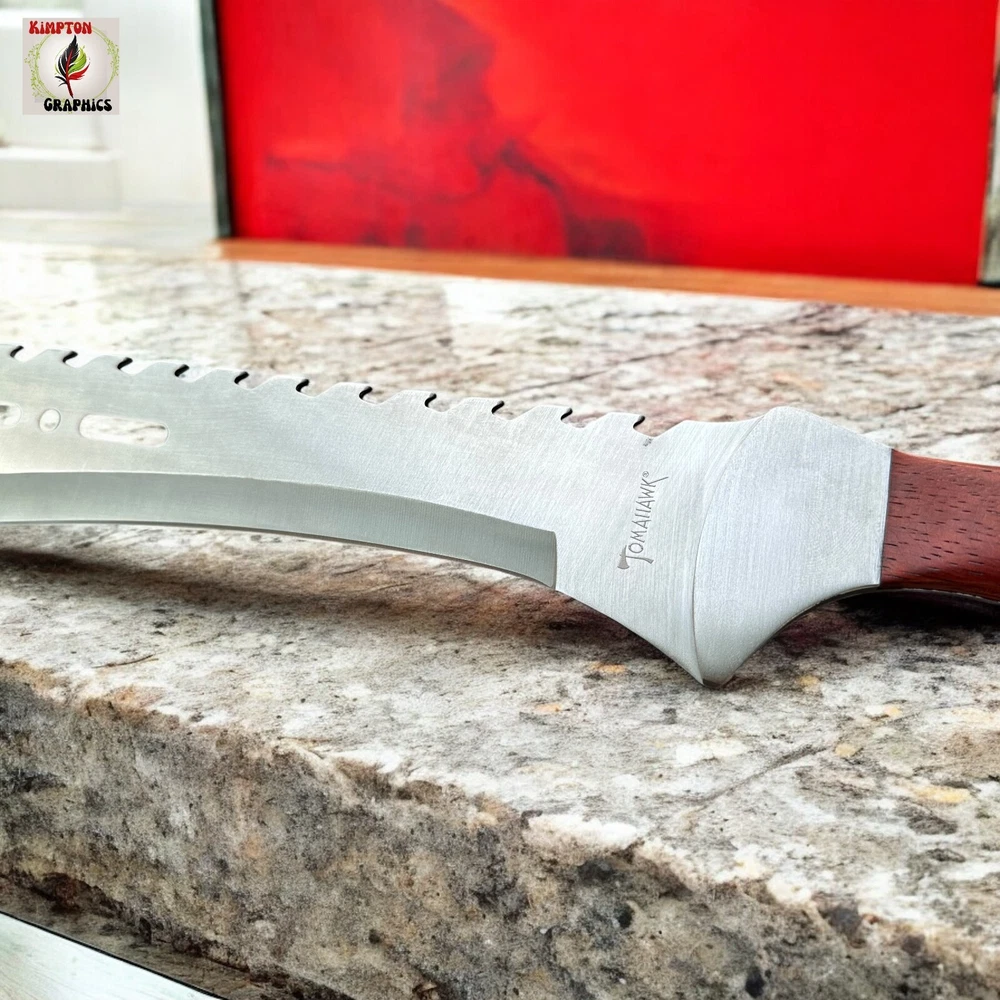 Need a machete that combines intimidation, cutting power, and rugged durability in one savage package? Whether you're blazing trails, surviving the wild, or showing off the ultimate display piece, this tomahawk-style machete dominates every situation. Its aggressive sawback spine, sleek cutouts, and razor-sharp blade deliver brute force and tactical finesse in one grip. πͺ Full Tang Construction β Built from a single solid piece of stainless steel for maximum durability π² Curved Cutting Edge β Ideal for slashing brush, limbs, or targets with precision πͺ Sawback Spine β Doubles as a saw for wood or rope in survival situations π Unique Blade Cutouts β Lightweight, stylish, and menacing design π³ Polished Wood Handle β Comfortable grip with triple-rivet security π§ Versatile Use β Great for hiking, hunting, outdoor survival, or collection This tomahawk machete isnβt just for show β itβs made to perform. Itβs the kind of tool you keep within reach because you never know when you'll need serious steel. Buyer must be 18+ and comply with all local, state, and federal laws.