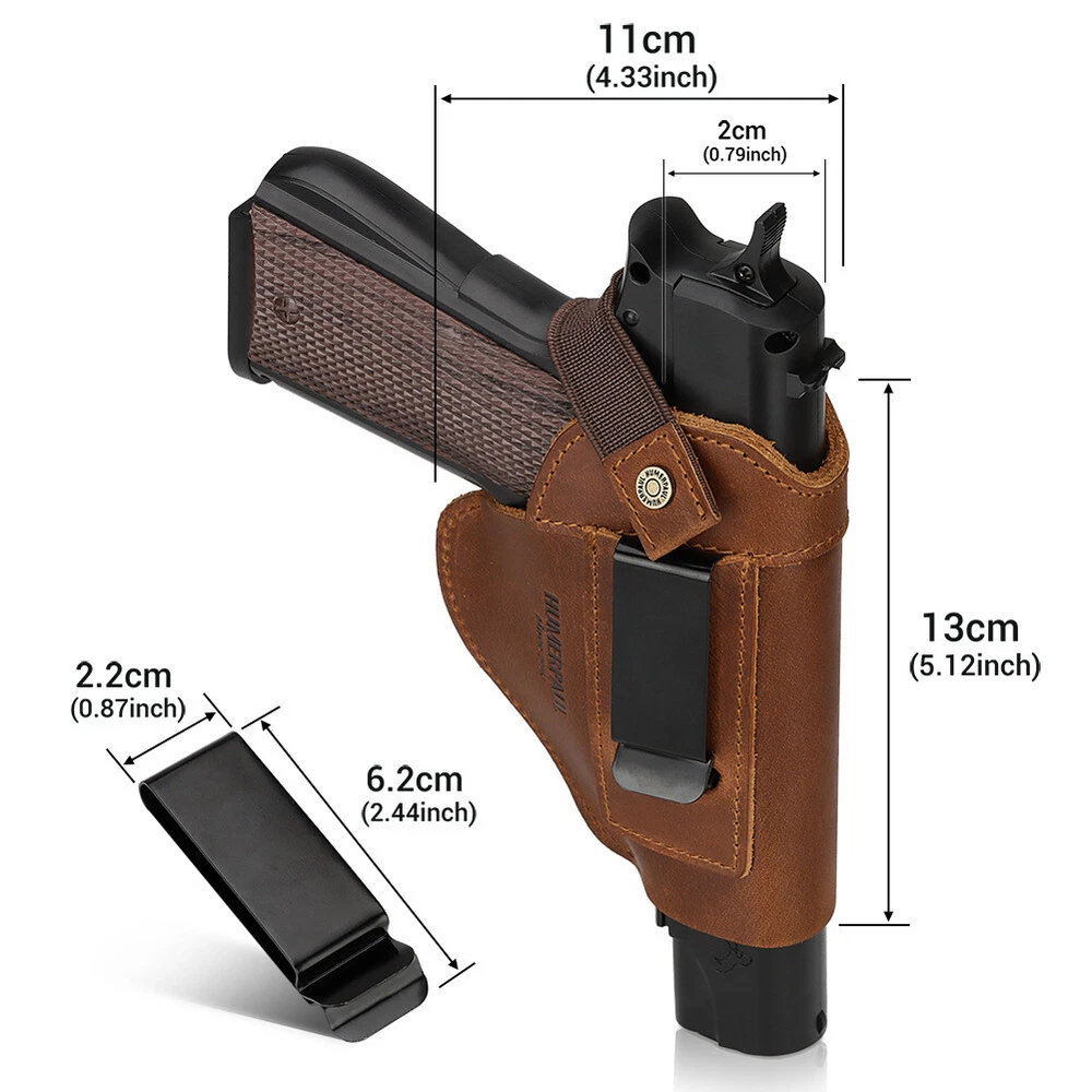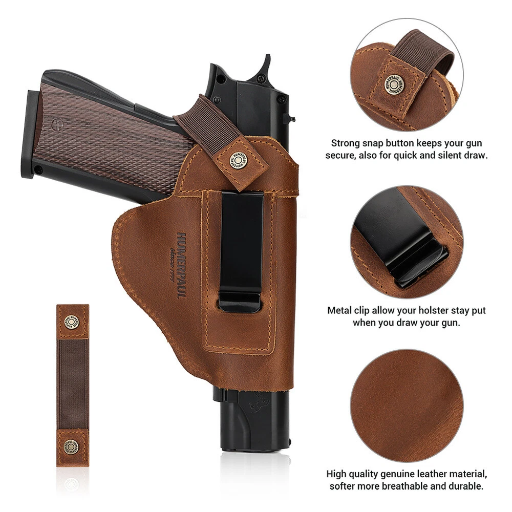TAKE A LOOK AT THIS:Leather Gun Holster With Concealed Carry Holsters Belt Universal Tactical Gun Case Fit Most Full Size Compact Subcompact Pistol PRODUCT PROPERTY:✨ 1: Humerpaul offer amazing our product.Materials like leather are used in making our product.Our product is from cn(origin). REASONS TO BUY:✨ Leather concealed carry holsters: this gun holster for concealed carry can be used as a concealer belt or a tactical pouch. it is also an ideal choice for hunting, hiking, camping, and other outdoor activities. ✨ Carry holster accessories: the holster is designed to fit in your pocket, backpack or belt. it's perfect for carrying your gun and other accessories. ✨ Leather pistol cases: the gun holster is made of high quality pu leather, which is durable and waterproof. it can protect your firearm from scratches and damage. RELATED INFO:✨ Leather gun holster concealed: our concealed carry holster is made of premium leather, which will not scratch your gun. it has an adjustable strap that can be adjusted to fit most pistols.