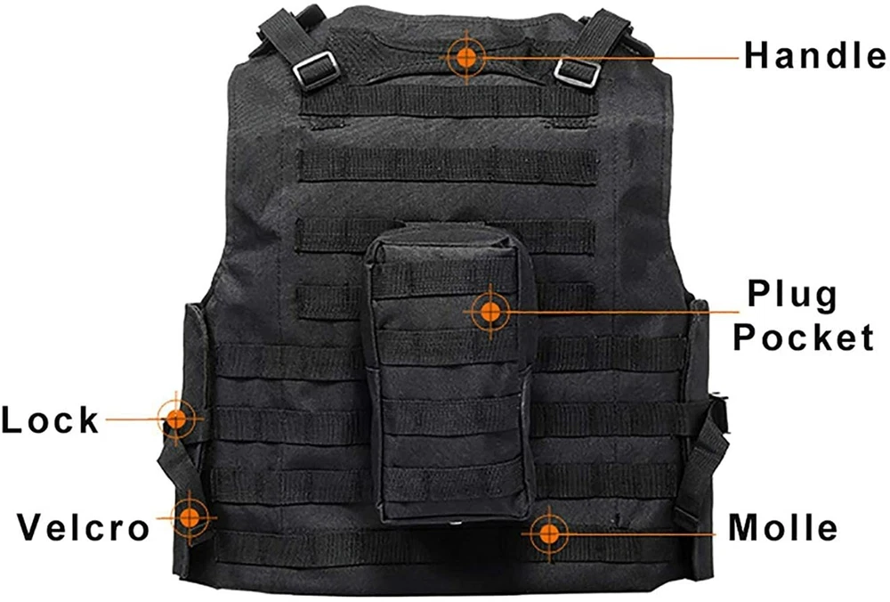 Product Description Features: 1. ADJUSTABLE: Size is for kids and slim person. Tactical vest is fully adjustable in girth, length and shoulder to a customized size through adjusting adhesive on sides. The tactical vest is adjustable via the adhesive of the shoulder part and the side part. Please make sure adjusting first before you wear. 2. MOLLE SYSTEM: Training vest is constructed with modular webbing for attaching additional camouflage material and pouches and all the pouches are detachable. 3. E ASY TO WEAR: Airsoft vest can be taken off over the shoulder and both sides quickly. Left and right sides can be adjusted for width via webbing. 4. HIGH QUALITY: Molle chest vest is durable and comfortable, stronger tensile strength and wear resistance. Only for games. 5. MULTIFUNCTION: The military vest is a great gift for outdoor jungle games, airsoft, paintball, hunting, secret service operations, training mission, battle games and military fans. Specification: Color : Black / Green / Tan / CP / ACU / Jungle Camouflage / Jungle Digital ... Material: High-density 600D Waterproof Polyester Product weight: 1.2400 kg Style: Camouflage/Field Game Size :(L x W x H): 52 x 45 x 10 cm / 20.47 x 17.71 x 3.93 inches. Package Included: 1x Tactical Molle Vest Airsoft Paintball Vest Note: The waistline can be adjusted by the adjustable strap at the side and the max perimeter is 112cm / 44 inches.
