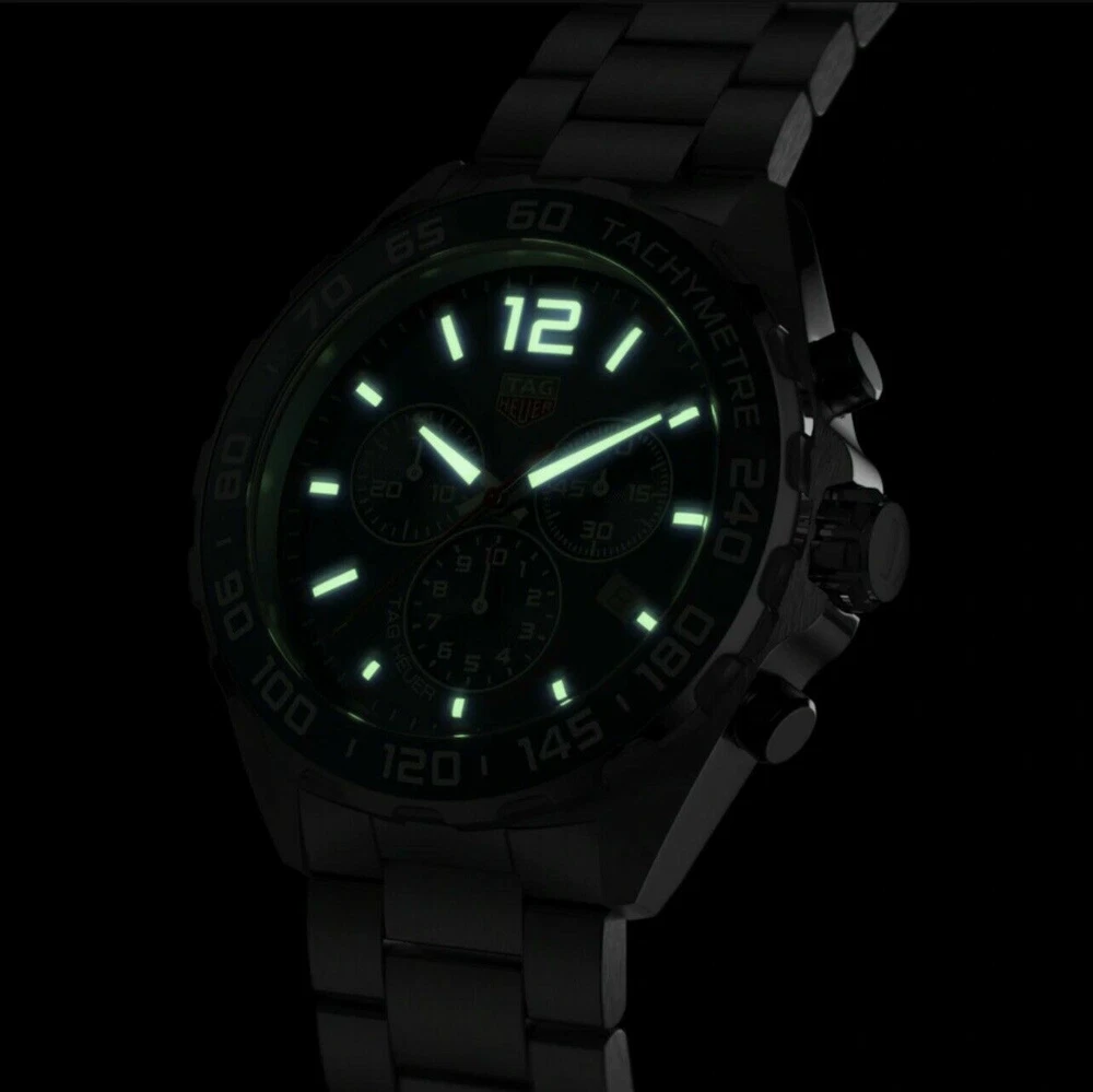 We have metal , Leather,Rubber bracelet If you need it, please contact us Product de scription The TAG Heuer Formula 1 Chronograph Stainless Steel Blue Dial Date Divers Quartz Mens Watch Model# CAZ1014.BA0842 / CAZ1014BA0842 has a blue sunray dial that is encased in the brushed and polished stainless steel case. The blue Alu Steel fixed bezel has a tachymeter scale. It features silver-tone and luminescent hands and indices hour markers, and an Arabic Numeral at the 12 o'clock position. Date display window at the 4 o'clock position and three blue sub-dials for 60 seconds, 30 minutes, and 1/10th of a second. The watch is fitted on a brushed stainless steel strap with a deployment clasp. The watch offers a water resistance capacity of up to 200 meters/660 feet. Like all of our watches, this TAG Heuer Formula 1 Chronograph Stainless Steel Blue Dial Date Divers Quartz Mens Watch is brand new and comes in its original packaging. Edouard Heuer started the TAG Heuer company in 1860. This is today a brand that is in a league of its own. As a sports watch worn by the most famous of celebrities, it is the dream watch for many people around the world. TAG Heuer watches are not considered the watch for everybody. Associated with Formula One car racing and Americas Cup sailing amongst other sporting events, this watch is seen on the wrists of many famous celebrities. This began on 1945 when a TAG Heuer watch was worn by Eisenhower. TAG Heuer has faced down every challenge, and then pushed past it. By defying the time-honored conventions of Swiss watchmaking, it has led it to ever higher levels of precision and performance. Product specifications Watch Information Brand, Seller, or Collection Name TAG Heuer Model number CAZ1014.BA0842 Part Number CAZ1014.BA0842 Item Shape Round Dial window material type Scratch Resistant Sapphire Display Type Analog Clasp Push Button Deployment Clasp Case material Stainless Steel Case diameter 43 millimeters Case Thickness 6 millimeters Band Material Stainless Steel Band width 22.0 Band Color Silver-tone Dial color Blue Bezel material Fixed Calendar Date Special features Chronograph, Date, Hour, Minute, Second Item weight 6.17 Ounces Movement Quartz Water resistant depth 200 Meters Product Warranty Watch is Registered w Tag Heuer online serial# registration system! Manufacturer warranty is expired! we Guarantee/Warranty the watch for 2 years Package Include: 1 x Tag Heuer Watch ( 99% New ) 1 x Original Tag Heuer Box with Papers On May 29, 2025 at 01:47:42 PDT, seller added the following information: