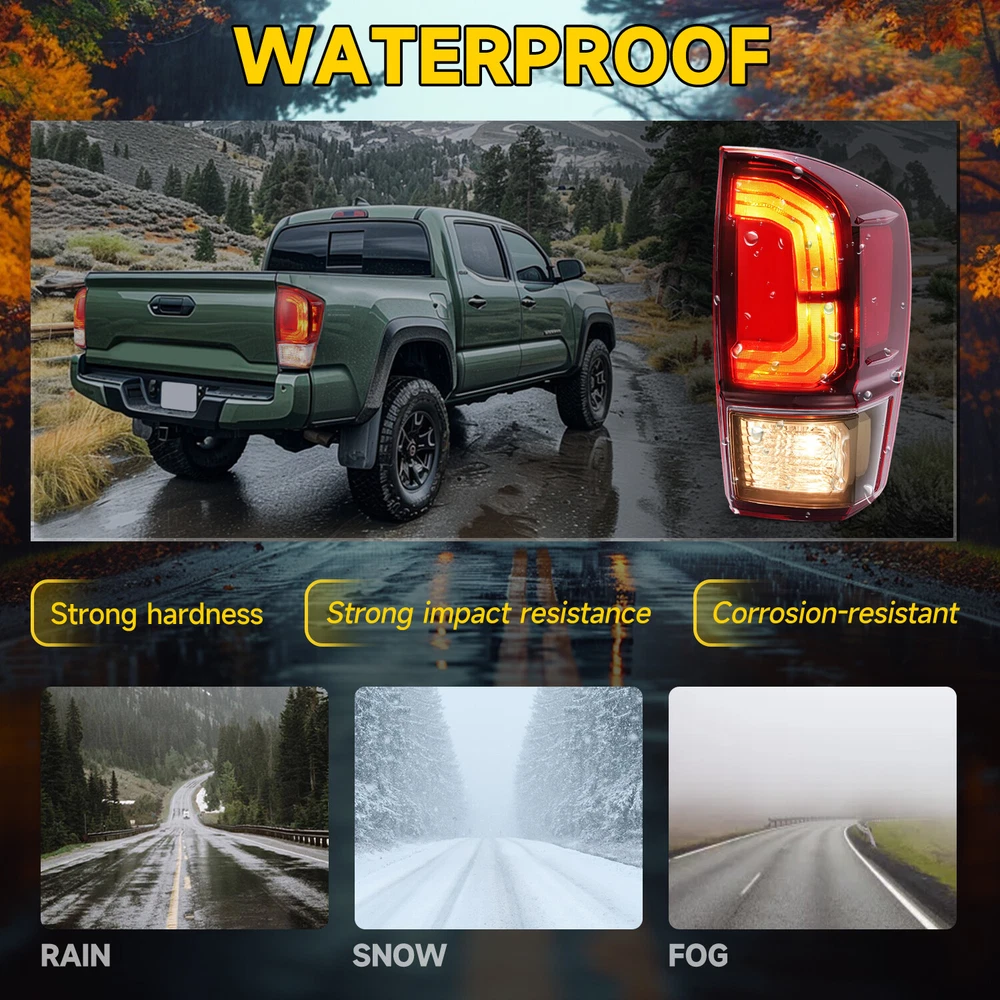 Tail Lights Driver & Passenger Side For Toyota Tacoma 2016-2023 2019 2021 FIT FOR For Toyota Tacoma 2016-2023 Specification Condition: 100% Brand New Color: Clear/Red Lens+Black Housing Material: Plastic Housing Color: Black Housing Lens Color: Clear/Red Lens Lighting Technology: Halogen Placement on Vehicle: Rear, Driver Side, Passenger Side Fitment Type: Direct Replacement Bulbs Included: Yes Features The Tail Light provides bright and clear lighting, improving visibility and ensuring safety on the road. Remind rear drivers to avoid rear-end collisions at night or in bad weather Withstand the test of bad weather Precisely engineered for an exact match to your vehicle. Made of high quality plastic construction, waterproof, not easy to wear. Ensure maximum performance and extended life of the taillight. Sealed & waterproof assemblies, exquisite looking, and to withstand any sand, water, snow or dust. Enhance Safety and Vehicle Appearance: At night, the tail lights will emit lights to indicate the location and driving dynamics, in order to let the other driver maintain a safe distance. The lens is made of high quality automotive grade plastic for high light transmittance, fading resistance, tough and durable enough. Package Includes 1 X Pair of Tail lights Bulbs Included Shipping All items will be shipped out in 1 business day, no expedited service available. We ship our items to USA only(Does NOT include Hawaii, Alaska or Puerto Rico, PO Boxes/APO's). Shipping Notes We use multiple warehouses and will select the nearest warehouse for delivery according to your order address and our inventory, Thank you for your cooperation. Contact us Any Questions, Just feel free to contact us on eBay. We will reply you in 24 hours. On Jan 10, 2025 at 19:57:14 PST, seller added the following information: