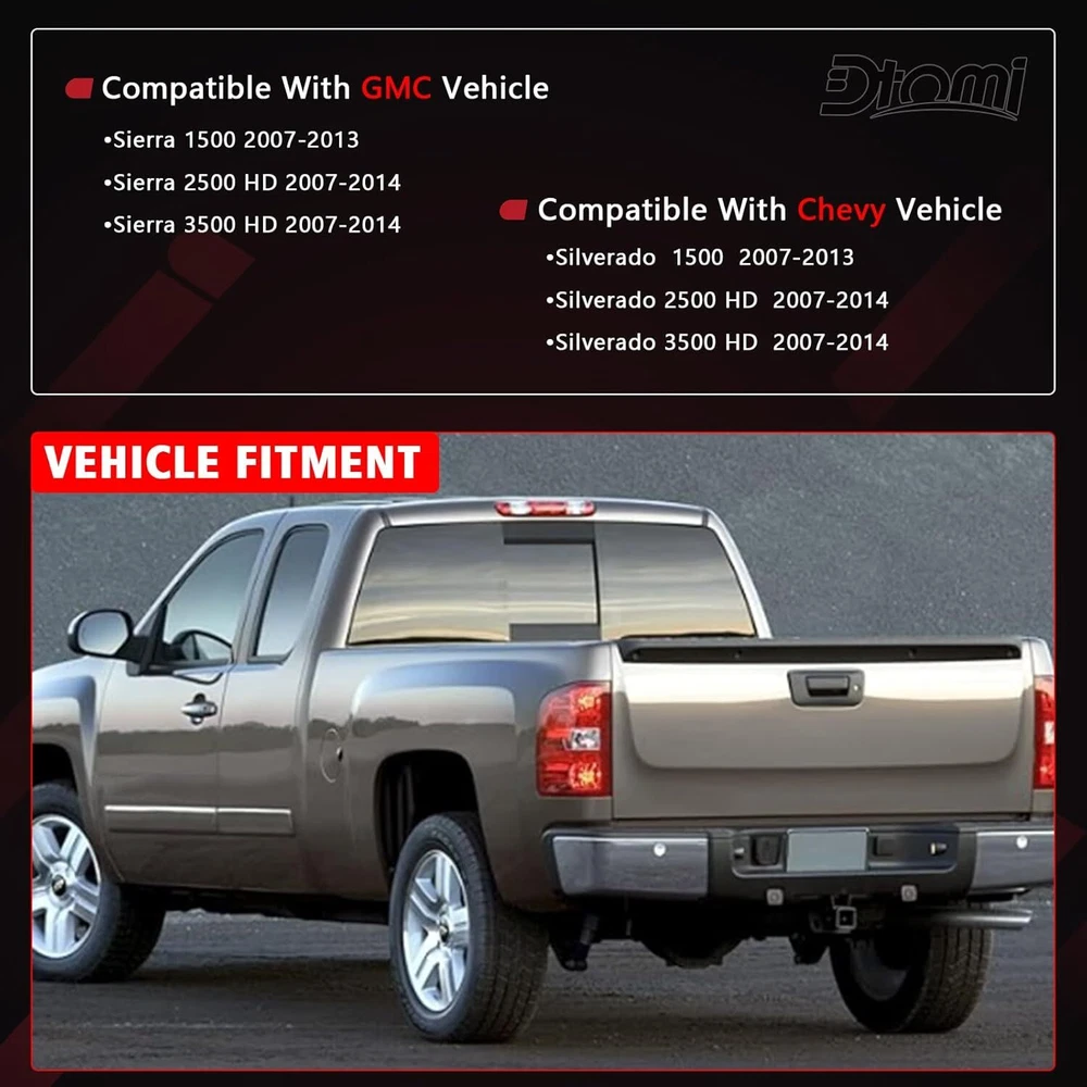 Store New Arrivals Add to Favorite View Feedback Contact Tailgate Handle with Lock Cylinder & Bezel Trim for GMC/Chevy Silverado Sierra 07-14 Tailgate Handle with Lock Cylinder & Bezel Trim for GMC/Chevy Silverado Sierra 07-14 Product Description: Tailgate Handle with Lock Cylinder and Bezel Trim This high-quality tailgate handle assembly is designed to provide a reliable and durable replacement for your GMC or Chevy vehicle. Constructed from premium materials, it ensures long-lasting performance and ease of use, making it the perfect solution for fixing your tailgate. With easy installation and a raised lock for secure operation, you can trust this handle to restore the functionality of your tailgate in no time. Features: Replacement Part Numbers : Compatible with part numbers 22755305 and 17802393. Please verify compatibility with your vehicle before purchasing. Vehicle Compatibility : This tailgate handle is compatible with: GMC Sierra : 1500 (2007-2013), 2500 HD (2007-2014), 3500 HD (2007-2014) Chevy Silverado : 1500 (2007-2013), 2500 HD (2007-2014), 3500 HD (2007-2014) Premium Quality Construction : Built from high-quality materials to ensure long-term durability and reliability, providing a long-lasting solution for your tailgate. Easy Installation : This assembly is designed for quick and straightforward installation, allowing you to resolve tailgate issues without any hassle. No more worrying about your tailgate not functioning properly. Enhanced Functionality : The tailgate handle comes with a lock cylinder and bezel trim, providing a secure lock mechanism and protecting your tailgate and cargo. Meets OEM Standards : Rigorously tested to meet or exceed OEM standards, ensuring top-quality performance and a perfect fit for your vehicle. FAQs: Is this tailgate handle compatible with my vehicle? This handle is compatible with GMC Sierra and Chevy Silverado models from 2007 to 2014. Please check the part numbers to confirm compatibility. Do I need special tools to install this handle? No, installation is easy and can be completed with basic tools. It is designed for quick, hassle-free installation. Is this product brand new? Yes, this tailgate handle with lock cylinder and bezel trim is 100% brand new, ensuring reliable performance. Does this handle come with a lock cylinder? Yes, this tailgate handle includes a lock cylinder and bezel trim, providing secure locking functionality. Will this handle fix my tailgate issue? Yes, this replacement tailgate handle is designed to restore full functionality to your tailgate and prevent common issues. Is the handle made from durable materials? Yes, the handle is constructed from premium, long-lasting materials that ensure durability and reliability. Can I install this myself, or do I need a mechanic? Installation is easy and can typically be done without professional assistance. It’s designed for DIY use. What is the warranty for this product? We offer 1-year quality support for this product, giving you peace of mind with your purchase. Will this handle fit both 1500 and HD models? Yes, it is compatible with both 1500 and HD models of the Sierra and Silverado, from 2007 to 2014. What should I do if this part doesn't fit? Please verify compatibility with your vehicle before ordering. If you encounter any issues, feel free to contact us for assistance. Style Modern Handle Type Pull Handle Number of Items 1 Material Type Plastic Shape Rectangular Finish Type Clear Coated Finish Types Clear Coated Unit Count 1.0 Count Product Dimensions 11.41"L x 6"W Material Plastic Handle Material Alloy Steel Model Number Dto-22755305-Black Package Type [Not Explicitly Stated] Metal Type Alloy Steel Additional Features Easy to Install Specific Uses For Product Vehicle Door Included Components Tailgate Handle, Bezel with Lock Lock Type Key Lock Exterior Finish Clear Coated Alloy Steel Item Dimensions L x W 11.41"L x 6"W Color Black Handle Type Pull Handle Shape Rectangular Manufacturer Auto Parts Style Name Modern PRODUCT DIMENSIONS : 6.0 "w x 11.41 "w. Weight: 2.12 lb About Us Welcome to Perishey, your premier destination for high-quality products at unbeatable prices. Our commitment to excellence ensures that you receive top-notch service and premium items across a variety of categories. Our professional customer support team is always ready to assist you with any inquiries or needs, ensuring a seamless shopping experience. We take pride in serving you and strive to bring a smile to your face with our exceptional service and products. Visit our eBay store to explore our full range of offerings and discover the great deals we have in store for you. Thank you for choosing Laelegencia. Payment policy We have eBay Managed Payments, allowing you to pay with any payment method that eBay accepts. Please ensure that your shipping addresses are accurate. Immediate payment is required before we can send out your package. Shipping policy We are always working hard to ensure your package arrives as soon as possible. Please understand that some factors like weather, high postal traffic, and the performance of shipping companies are outside of our control. In most cases, your package will arrive before due time as it is a high priority for us. If there are any unexpected delays, please let us know and we will take care of it immediately. We have multiple locations in the US; residents of these states will be charged tax according to the state they reside in. Tax information is available at checkout. Returns We are committed to your happiness. That’s why we offer a 30-Day Return Policy on items that you are not completely satisfied with. You have the option for a refund or an exchange of the item. No returns are available on items shipped outside of the USA.