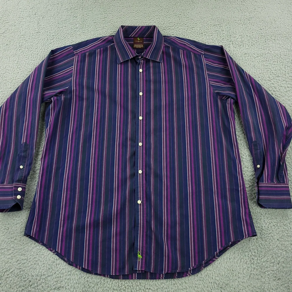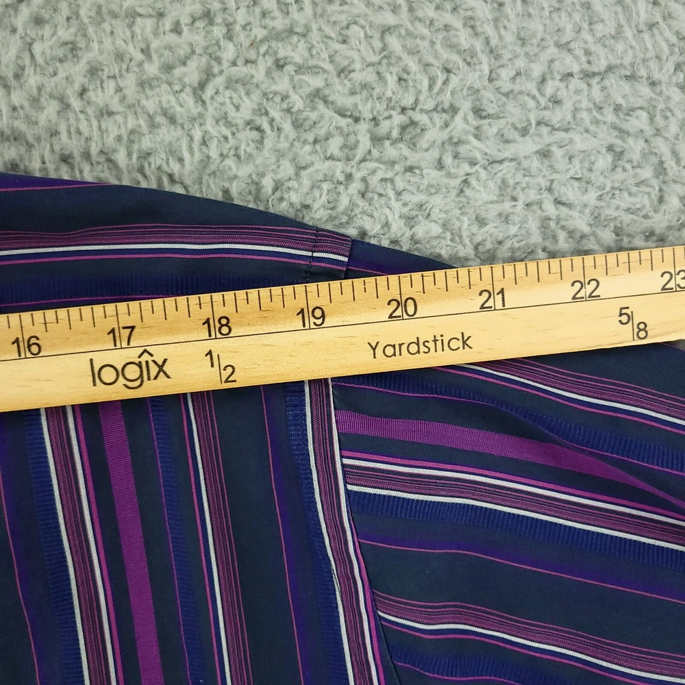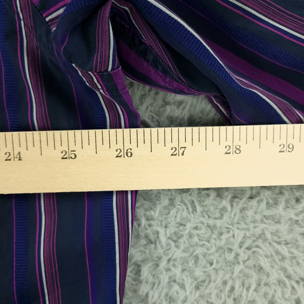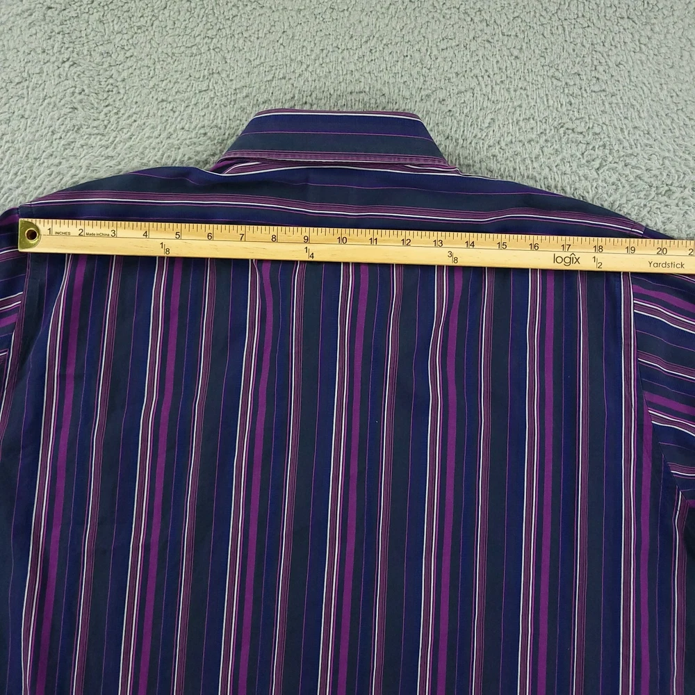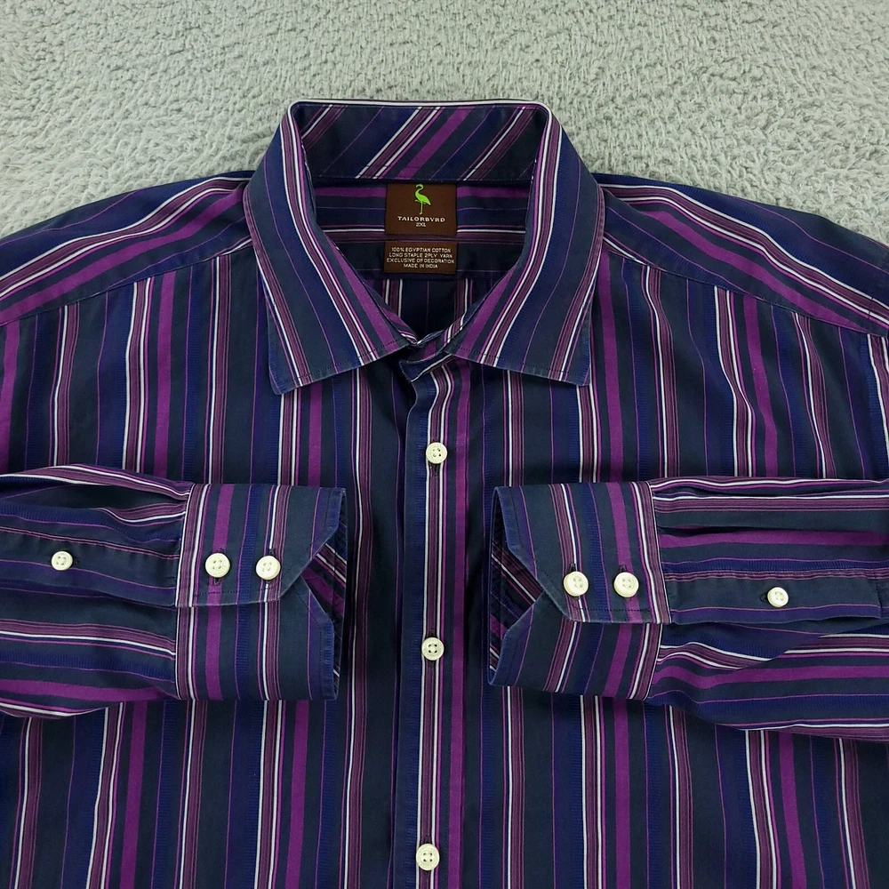 Department: Men Brand: TAILORBYRD Fabric Type: Woven Pattern: Striped Country/Region of Manufacture: India Season: Fall, Spring, Summer Occasion: Business, Casual, Party/Cocktail, Travel, Workwear Collar Style: Point Material: Cotton Sleeve Length: Long Sleeve Seller Notes: “Pre-owned shirt with no notable defects. See measurements in photos.” Theme: Classic, Outdoor, Preppy Color: Purple Neckline: Collared Closure: Button Size: 2XL Size Type: Regular Type: Button-Up