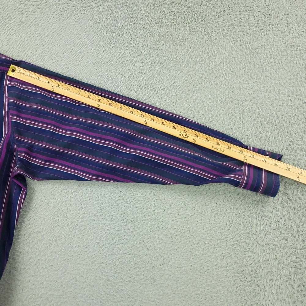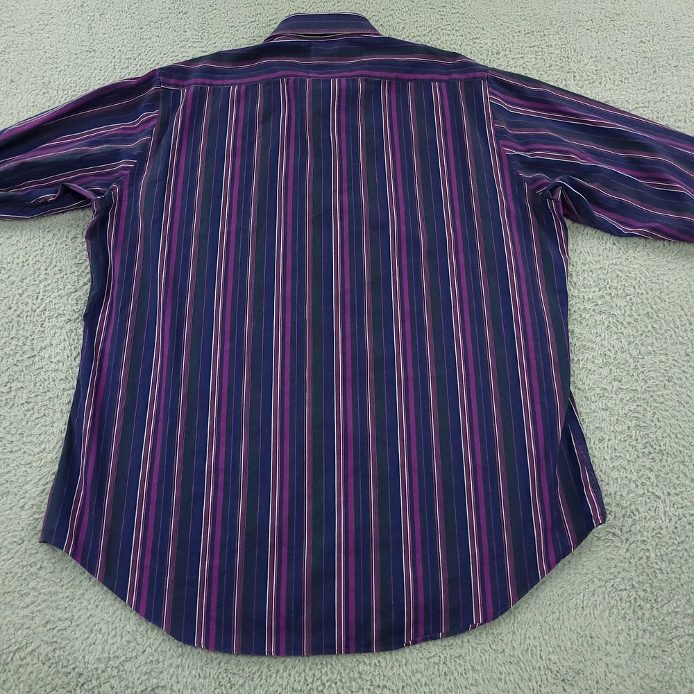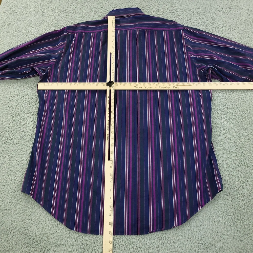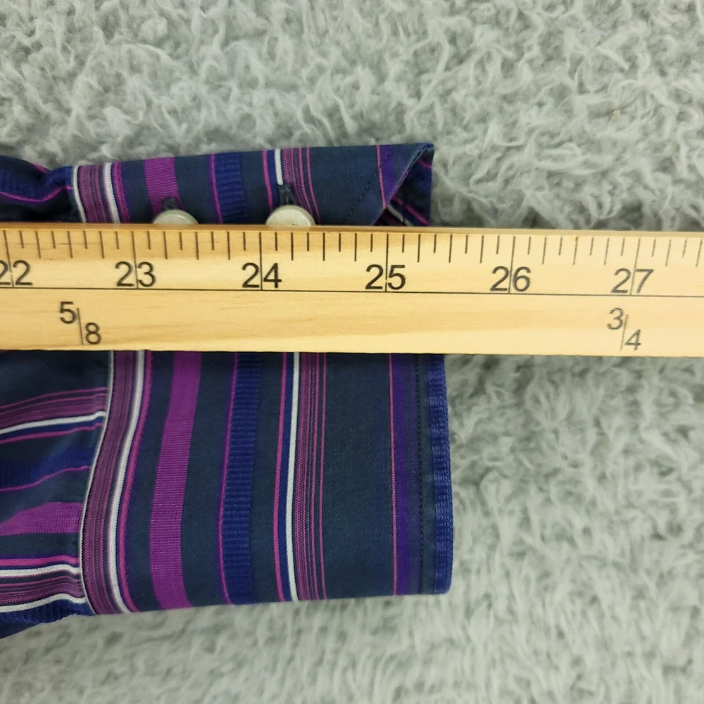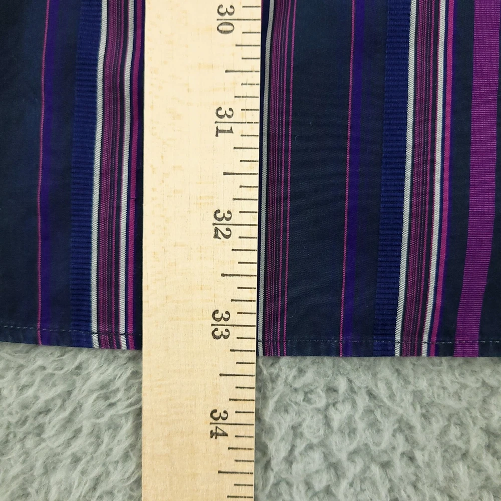 Department: Men Brand: TAILORBYRD Fabric Type: Woven Pattern: Striped Country/Region of Manufacture: India Season: Fall, Spring, Summer Occasion: Business, Casual, Party/Cocktail, Travel, Workwear Collar Style: Point Material: Cotton Sleeve Length: Long Sleeve Seller Notes: “Pre-owned shirt with no notable defects. See measurements in photos.” Theme: Classic, Outdoor, Preppy Color: Purple Neckline: Collared Closure: Button Size: 2XL Size Type: Regular Type: Button-Up