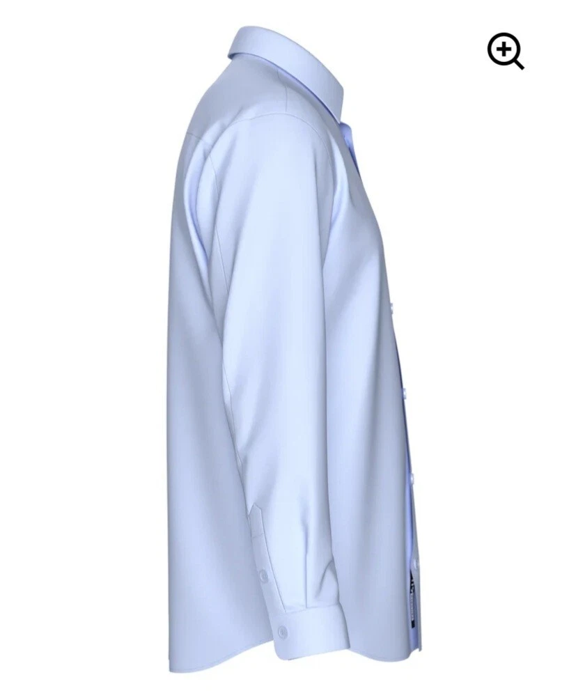 This tailored dress shirt in a sky blue color features a solid pattern with a collared neckline and button closure. Made from 82% nylon and 18% spandex, this shirt offers a comfortable 4-way stretch and breathable fabric wash. With a spread collar style, barrel cuffs, and a size of 2XL, it is suitable for various occasions such as travel, parties, or formal events. The machine-washable shirt is designed for men's wear and is branded as "tailored 4U," providing a stylish and comfortable option for work or casual wear.