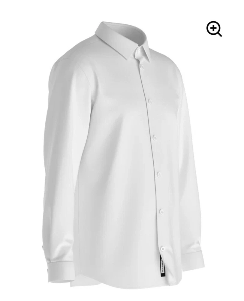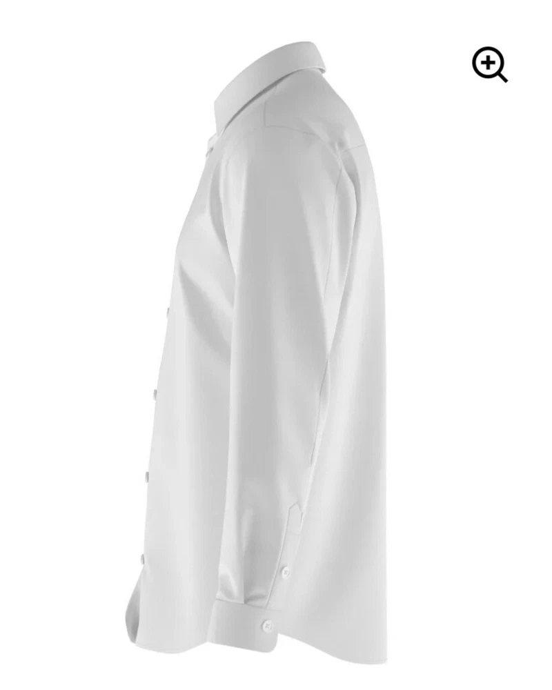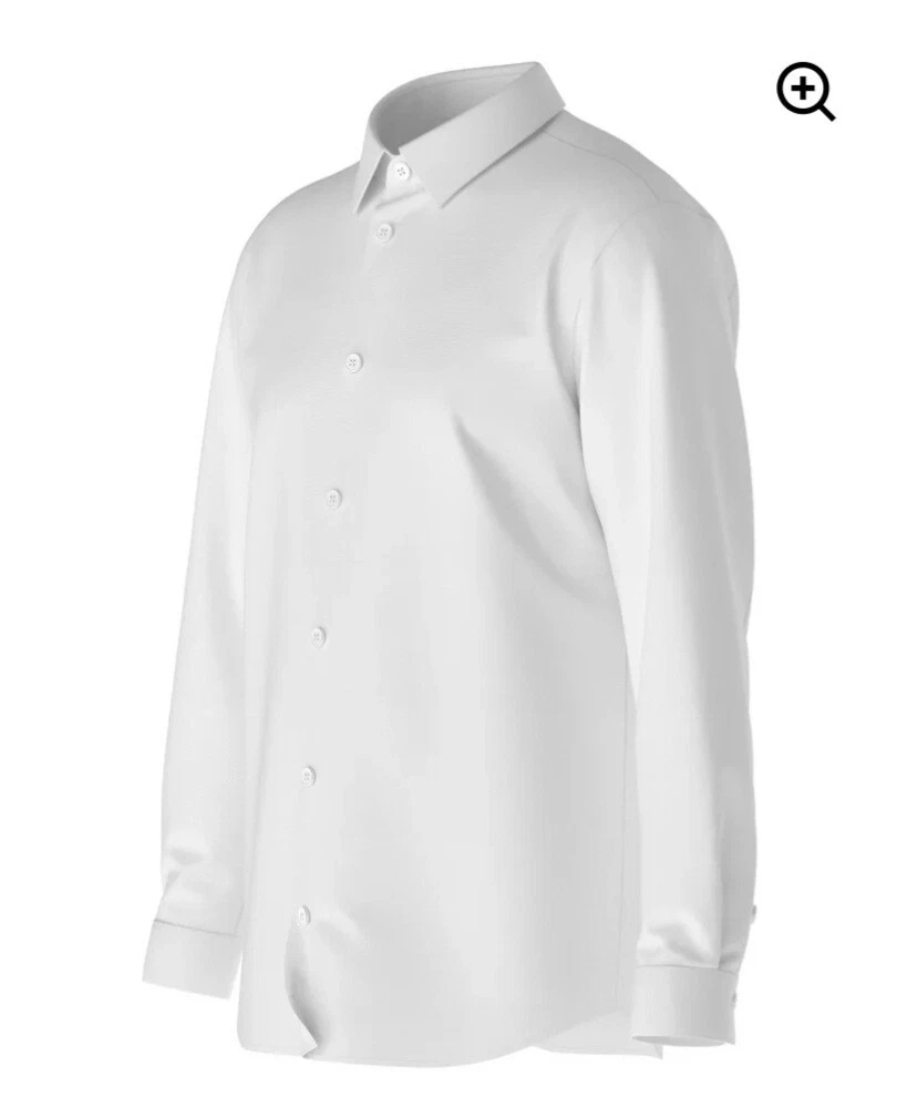 This tailored men's dress shirt in white features a solid pattern with a collared neckline and button closure. Made of 82% nylon and 18% spandex, it offers a comfortable 4-way stretch and breathable wear. The long sleeves with barrel cuffs and spread collar add a touch of formal appeal, suitable for various occasions such as travel, weddings, parties, and work. The shirt is machine washable and available in size M from the brand tailored 4U.