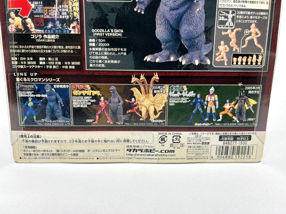 Description About This Items Takara 2004 Godzilla KM-01 Microman Costume Action Figure Condition It is unopened, but there is a small scratch on the package. Included Items None Shipping We will ship your order via FedEx, DHL or Japan Post. The item will be shipped in a box with packaging material. Please check the expected arrival date for the shipping method you selected! However, delivery may take longer depending on the shipping situation in your country and the situation of the post office. Please note that it may take longer to deliver than the "expected delivery date". We will always ship your item with a tracking number, so you can order without worrying about delivery. You can track your delivery status at any time. Shipping is available from Monday to Friday. It is not available on Saturdays and Sundays because the shipping company is closed. If we do not hear from you after 3 days, your order will be canceled or a case will be filed. About Importer's Obligation Import duties, taxes and charges are not included in the item price or shipping cost. These charges are the buyer's responsibility. Please check with your countrys office to determine what these additional costs will be prior to bidding or buying. We cant reply gifts or unreasonable requests such as declared amount. If have any questions, anytime contact me! and if you look for any item, please feel free to contact us. Thank you for Watching.