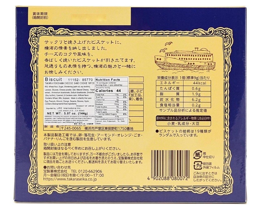 Home Payment Shipping Return Policy About Us Contact Us Feedback May you Like Nestle Japan KitKat Chocolate Wafer Biscuit Rich Dark Match Green Tea 10 Pcs X 2 10.00 USD Nestle Japan KitKat Chocolate Wafer Biscuit GOLD Salt Caramel Flavor 10 Pcs X 2 10.00 USD ** Limited Japan Edition Frito Lay Fritolay CHEETOS Crunchy BBQ Bag 60g Rare 9.99 USD 5 Packs Glico Pocky Chocolate Banana Cream Japan Biscuit Snack Xmas Gift 2.47oz 24.99 USD Nestle Japan KitKat Chocolate Wafer Biscuit Orange Rich Chocolat 9 pieces x2 10.00 USD Bourbon Hi-Selection Butter & Chocolate Assorted Japan Cookies & Wafers 9.68 oz 15.99 USD Anime 20 Takara Yokohama Butter Sandwich Cookies – Premium Japanese Butter Cream Cookies Savor the rich, melt-in-your-mouth flavor of Takara Yokohama Cheese Sandwich Cookies , a beloved Japanese treat known for its smooth butter cream filling and crisp golden biscuits. These elegant sandwich cookies offer a perfect balance of sweetness and buttery aroma, making them an irresistible snack for all ages. Product Highlights: Authentic Japanese Cheese sandwich cookies Crisp biscuits filled with rich, creamy butter filling Smooth, delicate texture with a refined sweetness Great for tea time, coffee breaks, and dessert trays Beautiful packaging inspired by Yokohama’s classic confectionery style Great for gifting to friends, family, coworkers, or snack lovers Perfect For: Japanese snack enthusiasts Gift baskets, parties, and holiday treats Afternoon tea and coffee pairing On-the-go snacking or sharing at the office Experience the classic, elegant taste of Japan with Takara Yokohama Butter Sandwich Cookies —simple, delicious, and delightfully satisfying. Payment Delivery details Terms of sales About us Contact us Payment 🔥This listing requires immediate payment after purchase to secure your order. Please ensure your shipping address is correct before checkout. 🌍 For International Buyers The item price and shipping cost do not include import duties, taxes, or additional fees. These charges are the buyer’s responsibility and are determined by your country’s regulations. Please check with your local customs office prior to bidding or purchasing to understand any additional costs. 🛃These charges are typically collected by the shipping company upon delivery or when you pick up your item, and they solely cover import duties or taxes imposed by your country. Delivery details 🌸Welcome to Animetropolis , your direct gateway to the very best of Japan! Fast dispatch: All orders ship within 48 hours (United States business days; public-holiday orders ship next working day). Authenticity guaranteed: We never sell replicas or gray-market items — every product is 100 % genuine . USA-to-worldwide delivery: All parcels leave straight from our Los Angeles fulfilment centre, ensuring pristine condition and traceable shipping to over 150 countries. Quality you can trust: We inspect every item before it leaves our warehouse so you receive it exactly as described. Customer-first support: Questions? Send us a message anytime; we reply within one business day Shop with confidence and experience authentic Top quality delivered to your doorstep! Terms of sales 👉🏻All items are brand new and shipped directly from Los Angeles . Due to the nature of international logistics and product integrity, we do not accept returns or exchanges . Please confirm your purchase carefully before placing the order. 🔄 Returns and Refunds We stand by the quality of our products and aim for your satisfaction. Please review our return and refund policy below: Return Policy: We accept returns within 30 days of order completion for items that are new, unopened, and unused. A full refund will be provided for eligible returns. Non-Returnable Conditions: To ensure a smooth return process, we kindly ask that items remain unopened and unused. Unfortunately, items not in their original condition may not be eligible for a refund. Defective Items: For manufacturing defects, please refer to the manufacturer’s warranty. We are happy to assist you with warranty claims. Condition Restrictions: If a returned item is labeled as new but has been opened, used, or is not in its original condition, the return may be refused or a partial refund issued. About us We are a Los Angeles–based company committed to supporting small businesses and regional artisans. Our mission is to introduce thoughtfully crafted, locally made products from around the world to U.S. consumers. We believe every product carries a story — a story of heritage, passion, and the distinct character of its origin. Through food in particular, we hope to share the warmth of people, the richness of seasonal flavors, and the deeper cultural meaning behind each creation. By carefully selecting and delivering authentic goods from diverse regions, we invite you to experience the hidden beauty of culture — one product, one bite, and one story at a time. Contact us 📞Your satisfaction is our priority. If you have any questions or need assistance, please feel free to contact us. We are here to help and committed to providing excellent service. 😊 Country of Origin Japan Brand Takara Seika Food Aisle Pantry Allergens Milk Type Cheese Sandwich Cookies Packaging Box Product Cookie & Biscuit Flavor Butter Sandwich Cookies