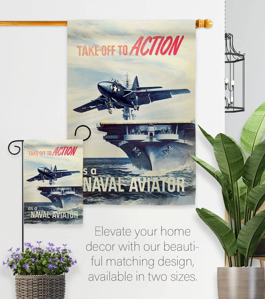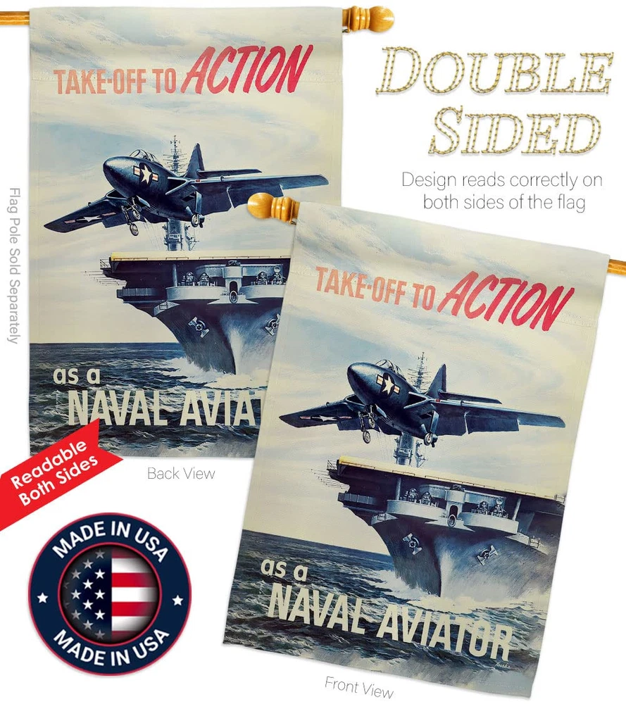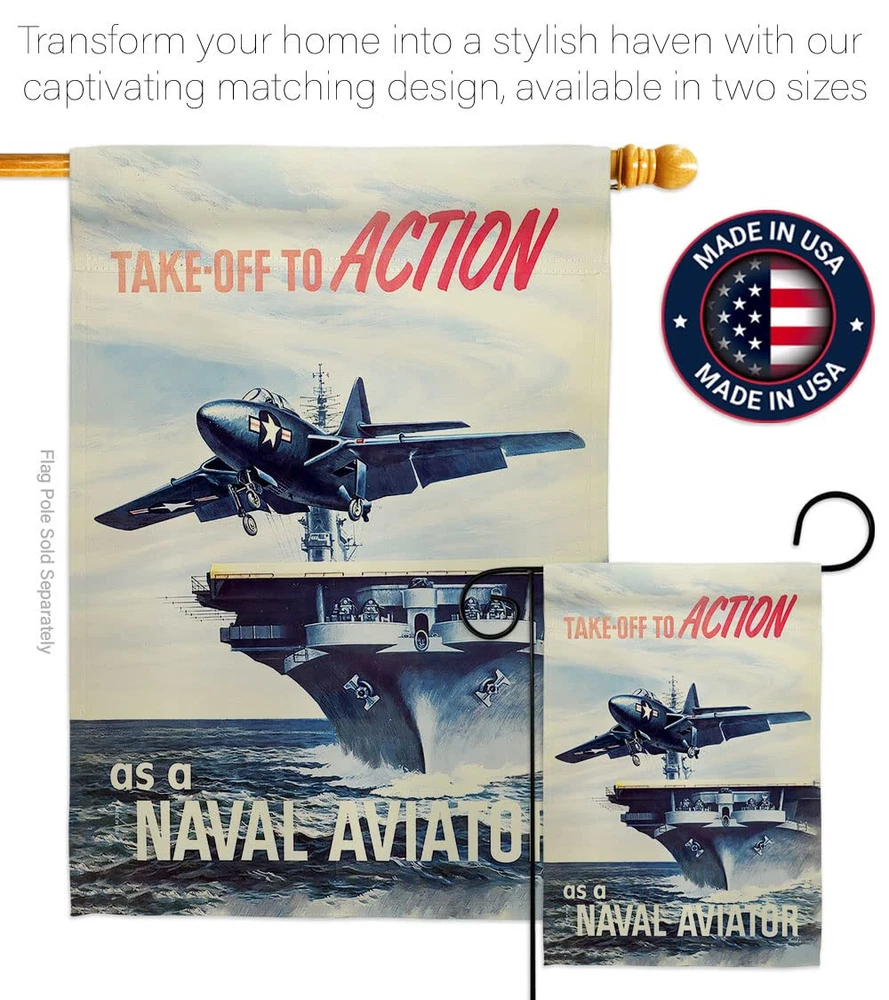Take Off to Action House Flag 2 pcs Pack Armed Forces Navy USN Seabee United ...