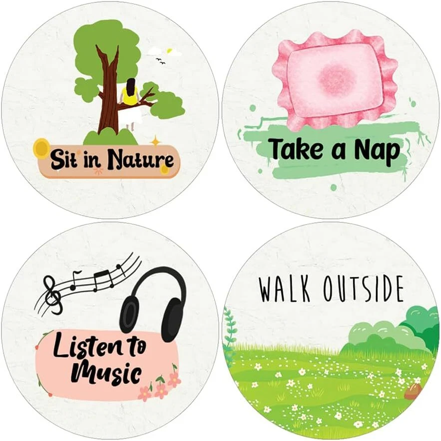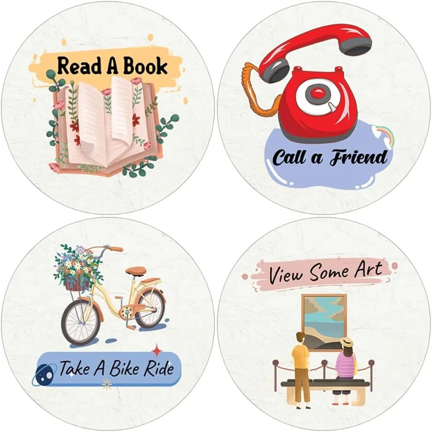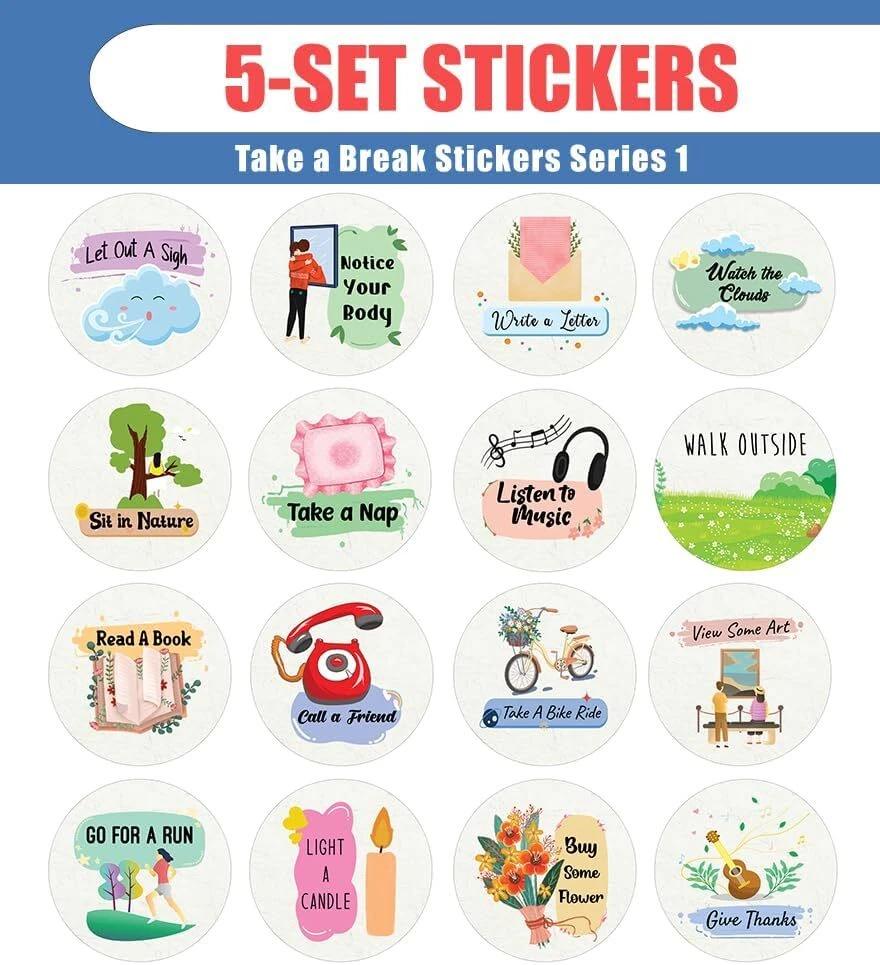 16 UNIQUE DESIGNS INSPIRING STICKERS FOR YOUR DIY PERSONALIZED DECORATIONS - Creanoso Take a Break Series 1 Stickers (5-Sheets). These colorful and uniquely inspiring round shaped stickers are the best tool for DIY decoration and personalization of your belongings. GREAT STOCKING STUFFERS , TEACHING SUPPLEMENTARY MATERIALS, AND GIVEAWAY - Great stocking stuffers gifts for Boys, Girls, Teens, Kids. A perfect design to give during classroom school activities, home schooling,birthdays, anniversaries, family day, and any other special occasions. MADE WITH DURABLE AND WATERPROOF MATERIALS - There is a lamination or coating to make the stickers high water resistant, and WILL NOT fade from the water. The stickers can stick it anywhere you like, and it sticks there and lasts a long time. A COLORFUL AND DECOR STICKER DECAL - Each sheet with 16 individual round stickers. There are 5 sheets , with a total of 80 pcs of stickers. STICKER SIZE: 1.5 INCHES IN DIAMETER Take a Break Stickers Series 1 (5 Sets X 16 Designs) COLORFUL AND COLLECTION OF TEXT STICKERS • Well designed. • Very encouraging. • Self-adhesive. Take a Break Stickers Series 1 (5 Sets X 16 Designs) are super fun to collect; you can't have just one! That's why you will find a selection of stickers right here. Each package comes with different stickers in a variety of designs. Stick them here, stick them there, stick them everywhere! Everyone will love these self-adhesive stickers. These colorful stickers are perfect for any adults and these come with very inspiring messages and bright pictures. A fun, inexpensive way to add a decorative, notes, and stationery. Delight yourself with uplifting messages designs that are very encouraging. Take a Break Stickers Series 1 (5 Sets X 16 Designs) perfect for giveaways, behavior incentives, prizes! These stickers are acid-free, nontoxic, and safe for use on photos. This product comes with a 60 days money back guarantee. You can return them to us for a full refund.