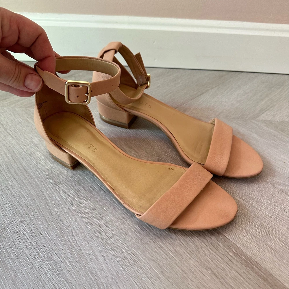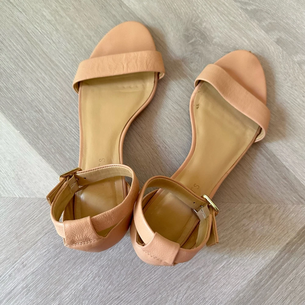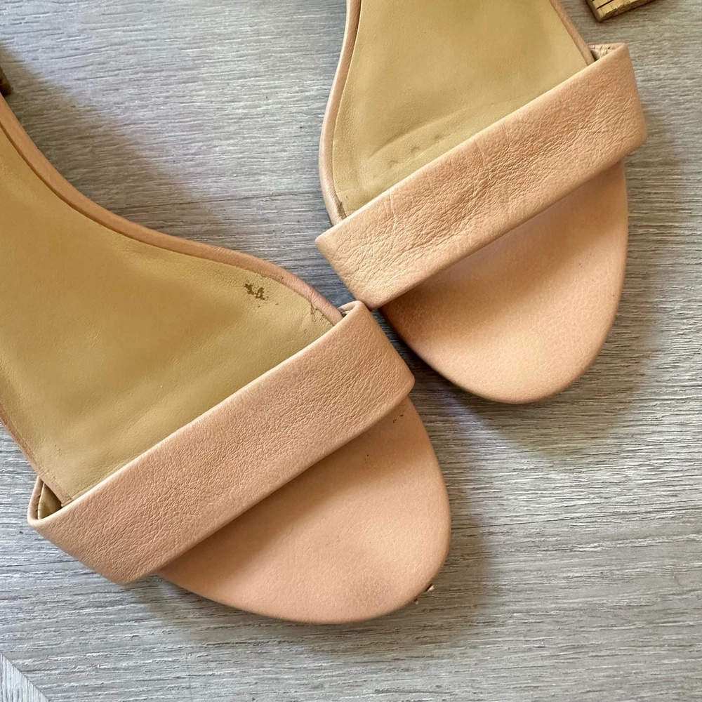 Talbots Beige Leather Sandals Ankle Strap Block Heel Open Toe Shoes 8 1/2 Classic style, in a great beige color. Size 8.5. Minor wear, no major flaws, see photos for details.