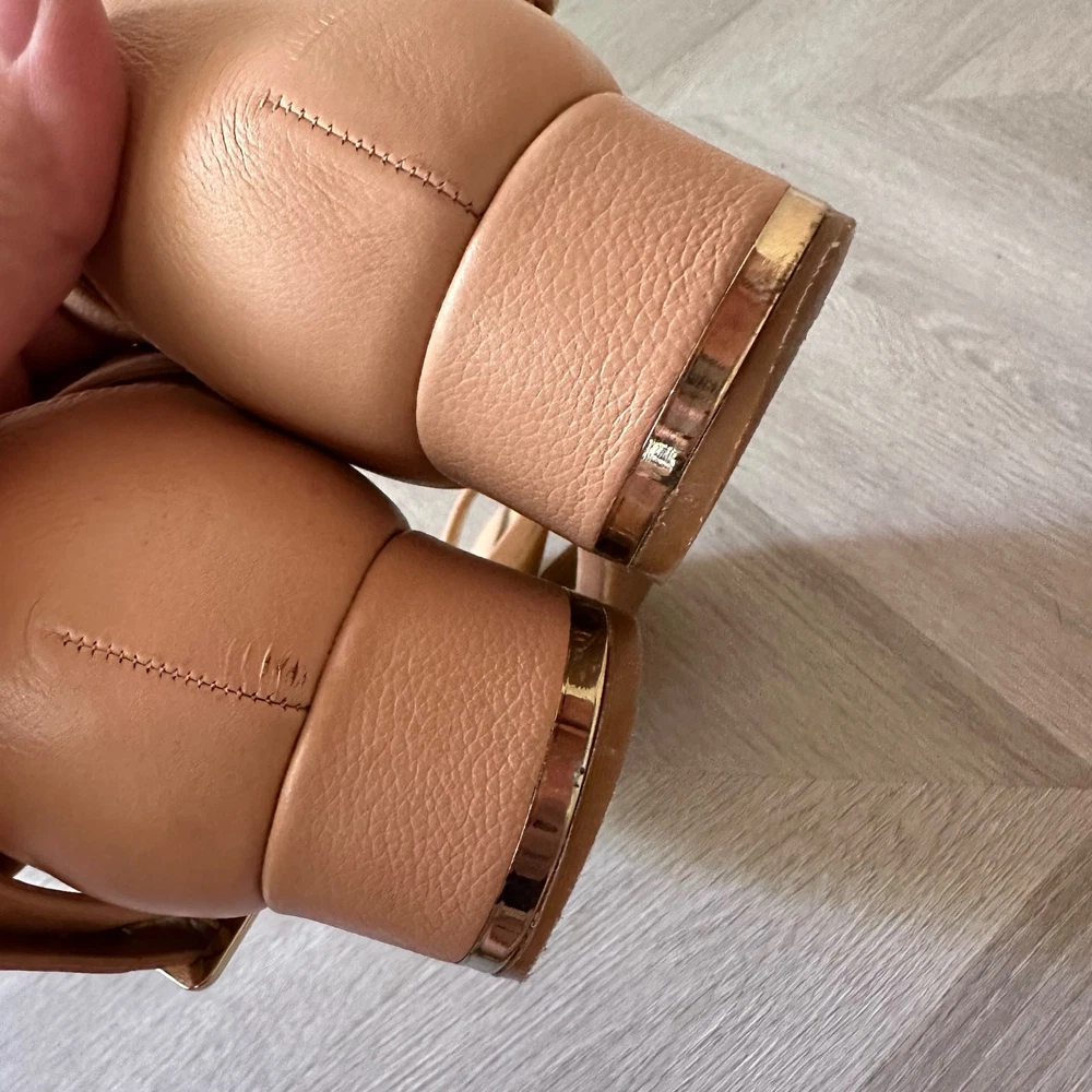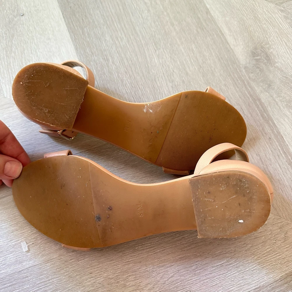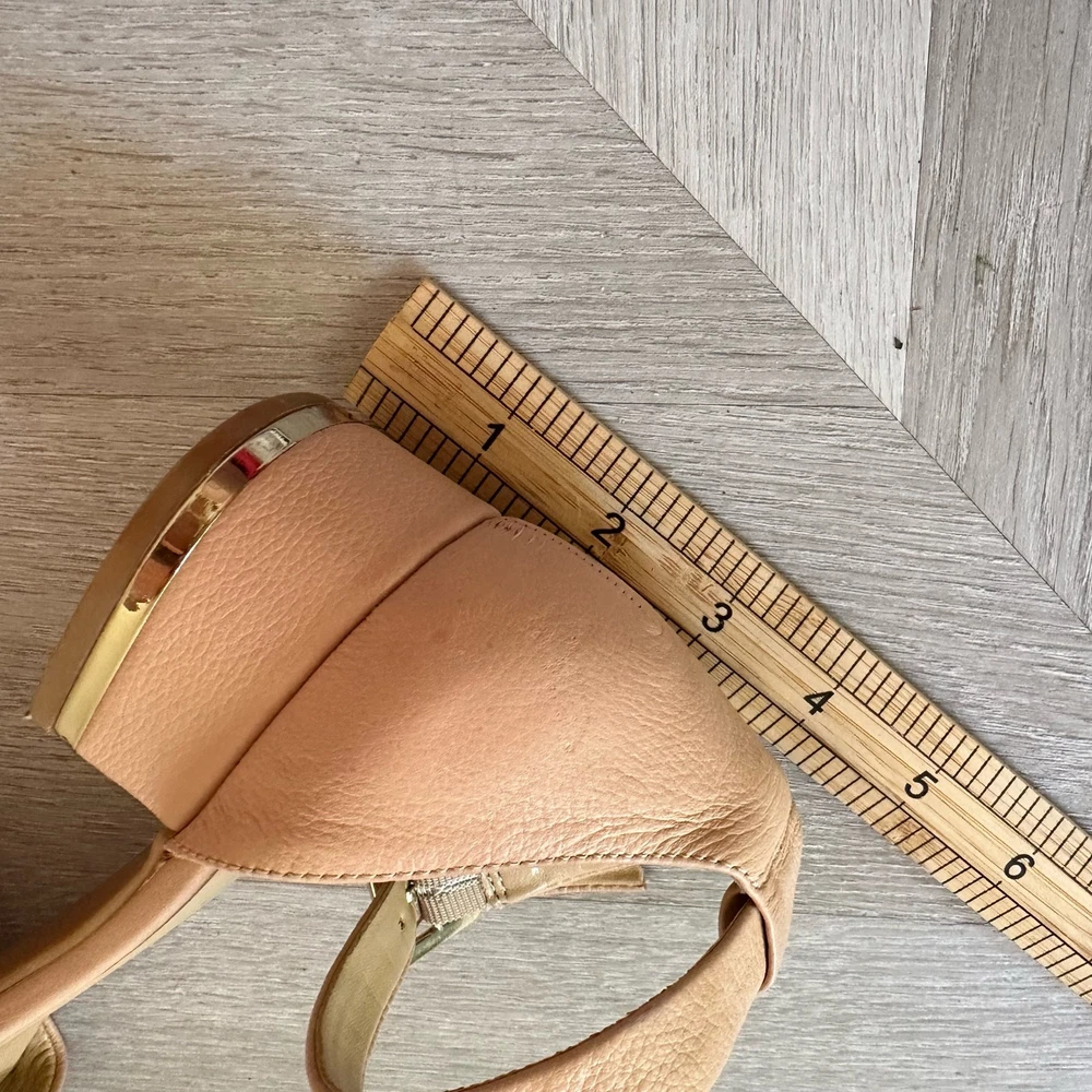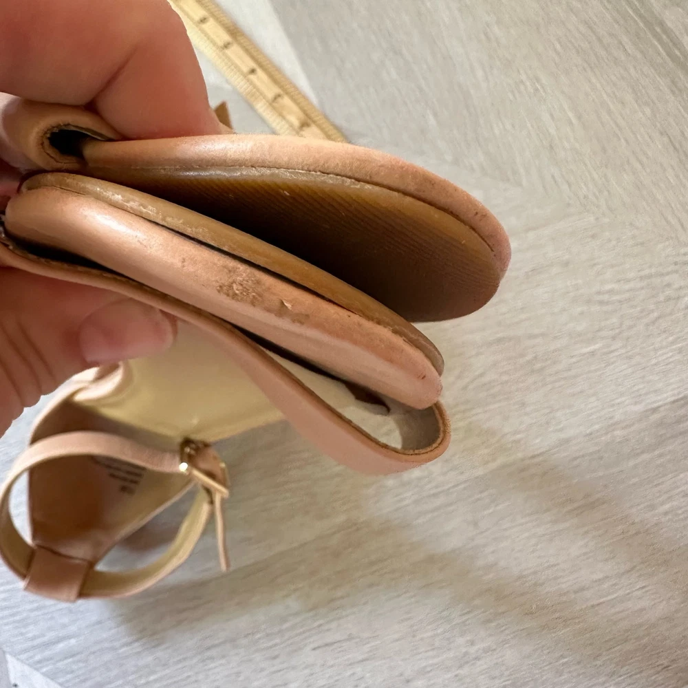 Talbots Beige Leather Sandals Ankle Strap Block Heel Open Toe Shoes 8 1/2 Classic style, in a great beige color. Size 8.5. Minor wear, no major flaws, see photos for details.