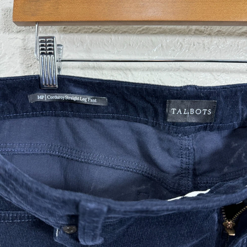 Talbots Corduroy Straight Leg Pant 14 Petite Navy Neutral Minimalist Retro Boho