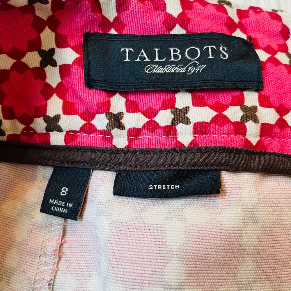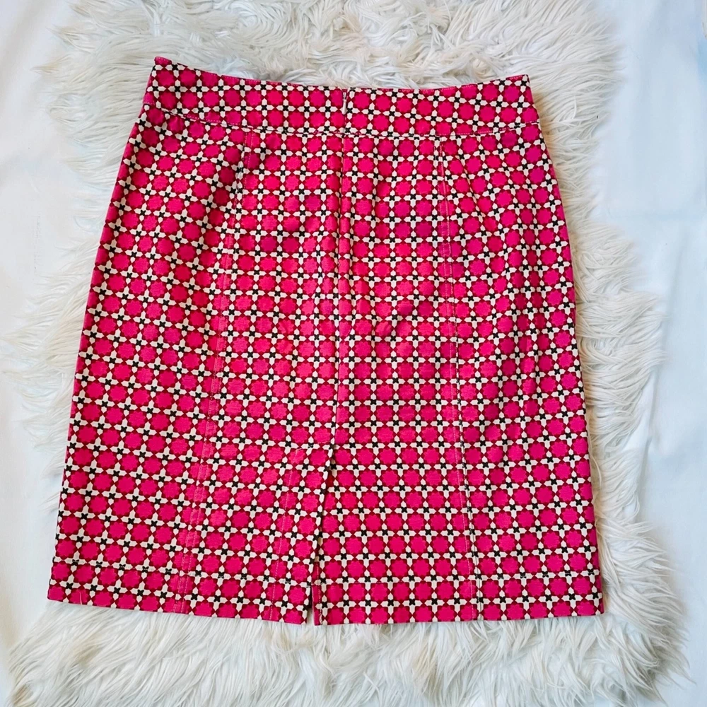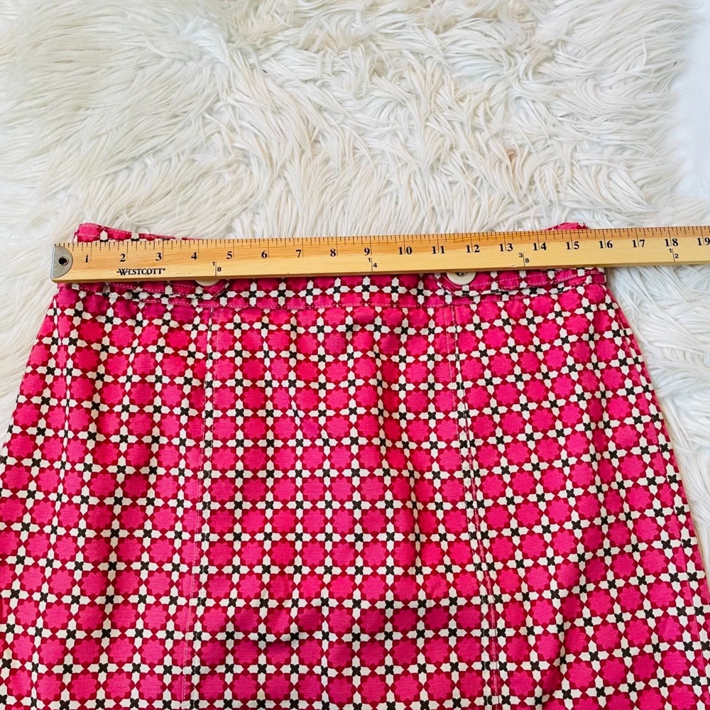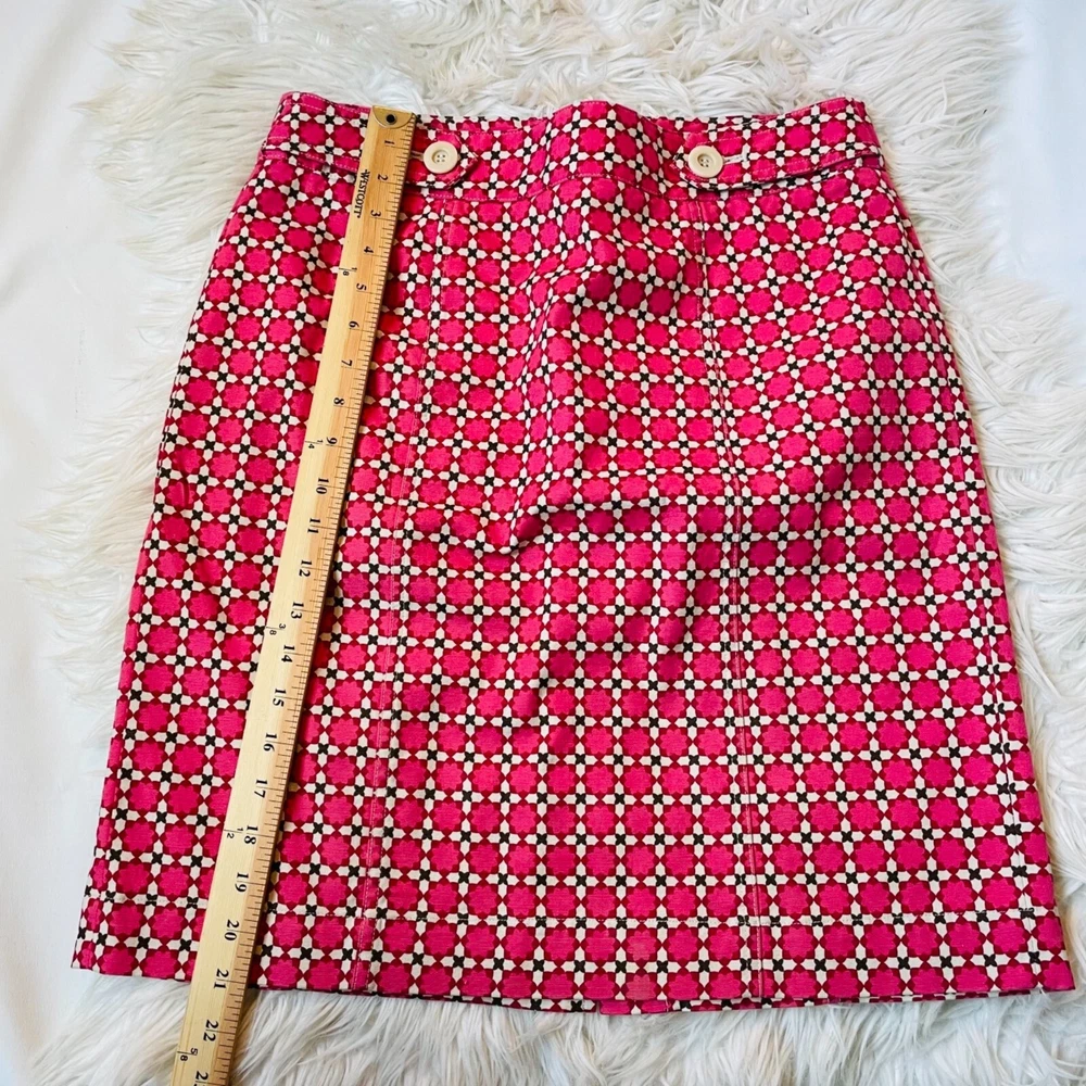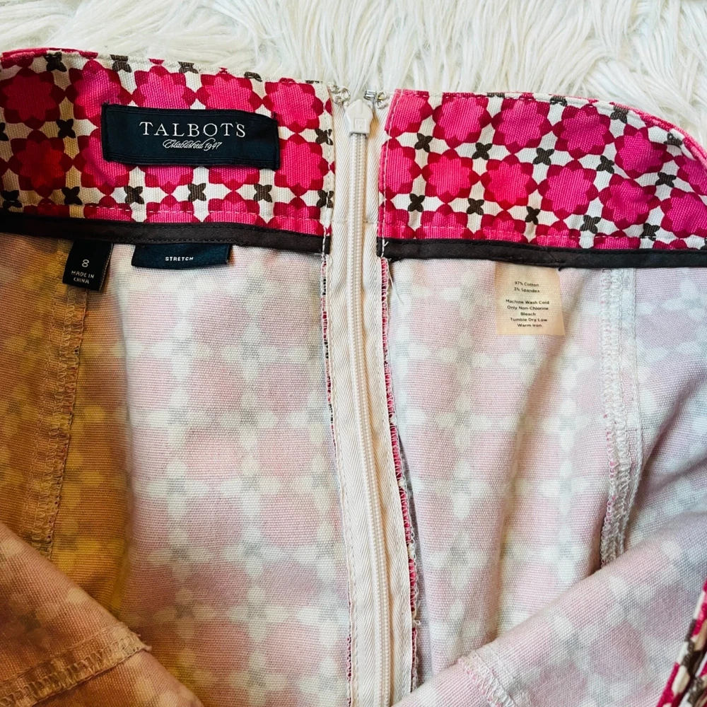 Talbots Womens Mosaic Print Stretch Zip Back Mini Skirt Color - Pink Size - 8 Waist - 16“ Inseam- 21” Pre Owned condition. Please see photos for measurements. Shipped quickly with first class shipping.