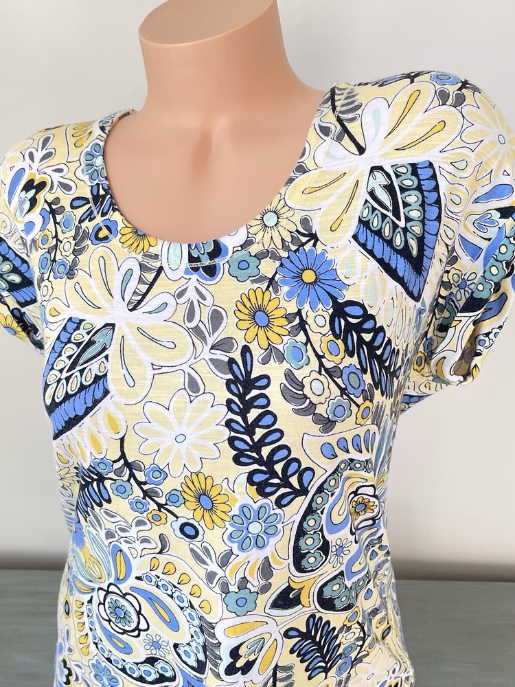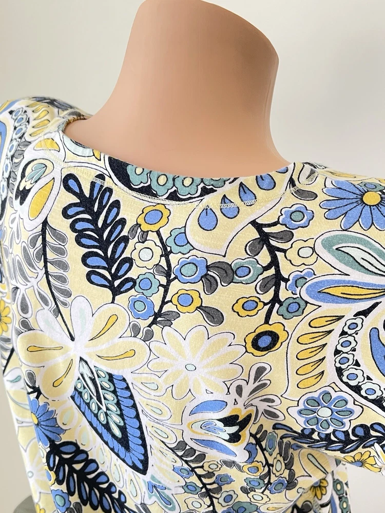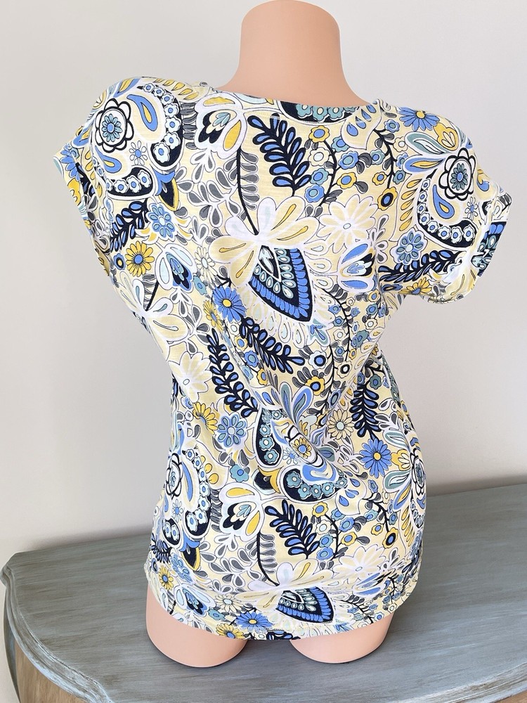 I am so glad to have found this seller & this beautiful Chico's Blue White Ikat Geo Print Top! It is just the color & style I was looking for, in excellent shape & fits perfectly! I highly recommend this seller - the Top was accurately described; plenty of pictures were included in the listing & were so helpful; very well packaged; reasonable price and shipping cost; arrived in perfect condition & shipping time - all outstanding! Thank you so much! :)