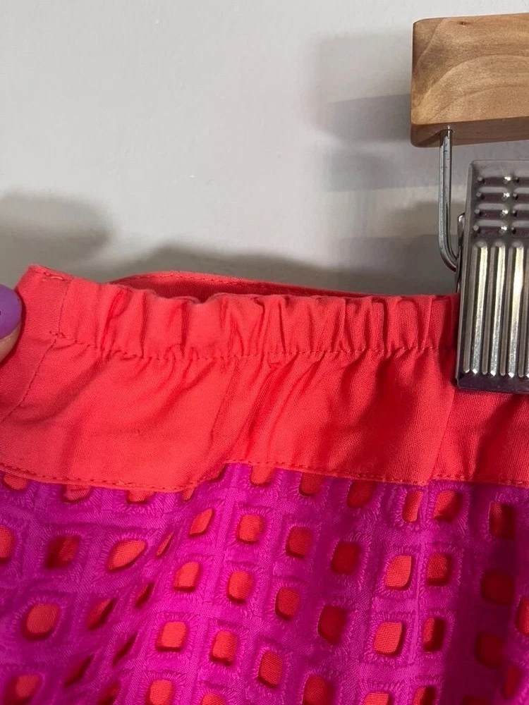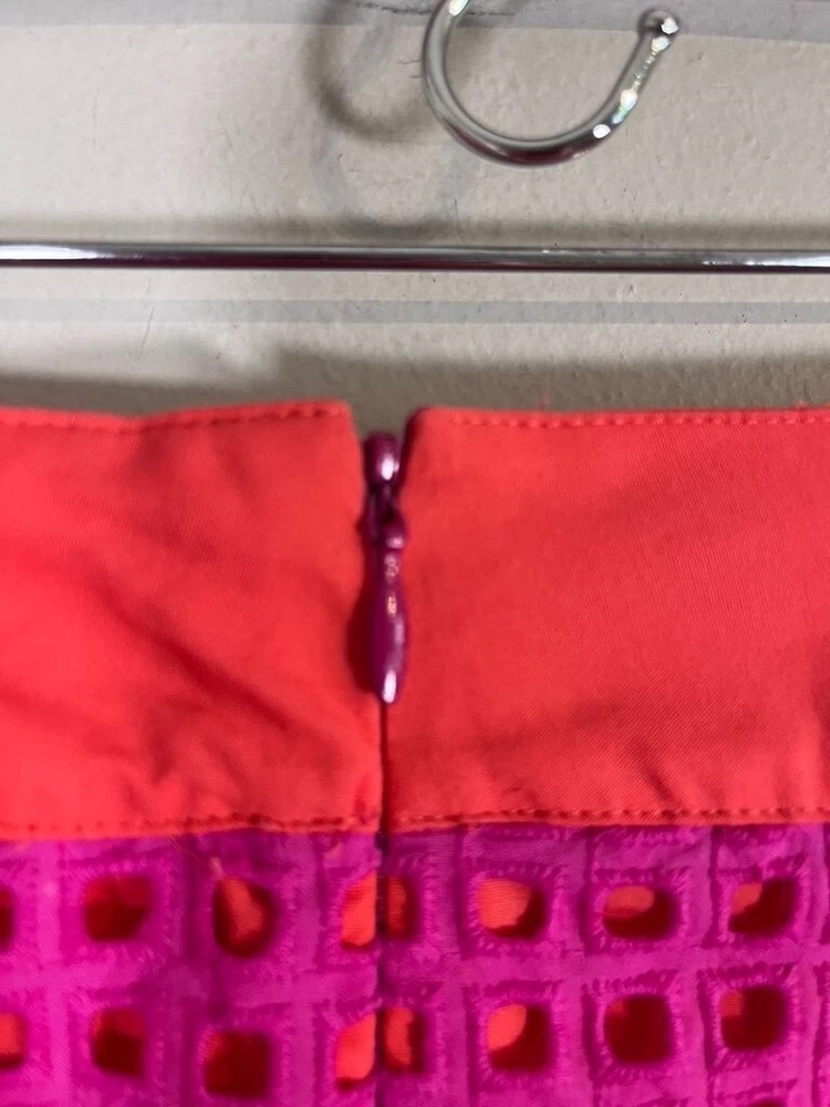 This skirt is a fantastic find! The retro 80s style with fun cutouts makes it a unique piece for the office or casual wear. The high-waist fit is flattering, and the stretchy cotton fabric is super comfortable. It arrived in great pre-owned condition—no flaws at all! Shipping was lightning-fast, and the seller provided clear measurements. Perfect for work, church, or even a summer concert. Love the bold pink color—such a statement piece! Highly recommend!