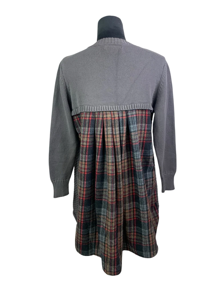 Talk Of The Walk Gray Knit Tunic Cardigan Plaid Contrasting Back & Pockets