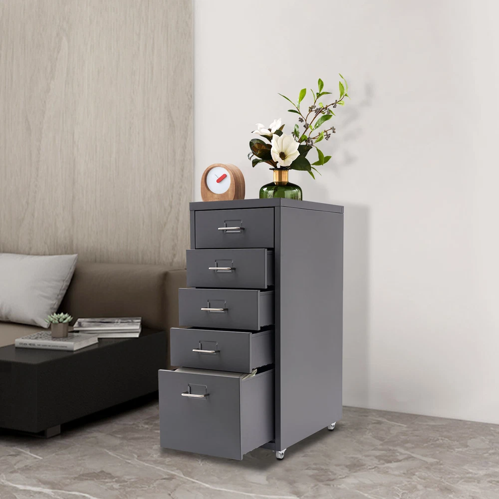 Specification Color: Grey Style: Modern Shape: Rectangular Number of Drawers: 5 Assembly Required: Yes Installation Type: Free Standing Process: Electrostatic Spraying Material: Cold Rolled Steel, Aluminum Alloy, Rubber Each Tier Max. Load Capacity: About 5kg/11.02lbs Product Size: 28*41*69cm/11*16.1*27.1in Large Drawer Size: 40*24.5*19cm/15.7*9.6*7.5in Small Drawer Size: 40*24.5*9cm/15.7*9.6*3.5in Drawer Internal Area: 38.5*23cm/15.1*9in Package Included 1* 5-Drawer Storage Cabinet Other Accessories for Assembly Metal Storage Cabinet Tall Garage Cabinet with Wheel with 5Doors for Home Office Description Maintaining cleanliness and order in our lives can have a positive impact on our mood and overall well-being. Our storage cabinet is crafted with high-quality cold-rolled steel and aluminum alloy , providing ample storage space while boasting a beautiful and functional design. With this cabinet, you can effortlessly and efficiently organize your belongings, leaving you feeling structured and at ease. Come and take it to enjoy a tidy life. Key Features Sturdy and Durable: This product is mainly made of high-quality cold-rolled steel and aluminum alloy, with electrostatic spraying treatment, it is not easy to rust, corrode, deform, or fade. Excellent Organizer: This set of 4 small drawers and a large drawer can sort and store data cables, kinds of files, and other daily essentials to create a cleaner, tidier office and home environment. Improve Space Utilization: This product occupies an area of 11*16.1 inches, so it can be placed in relatively narrow spaces, such as the gap between the bookshelf and the wall, making full use of your house space. Easy to Access: The tag slot on each drawer allows you to conveniently label and sort items in each drawer, which also ensures easy access to your items. Minimalist Style: The white color scheme combines a rectangular shape and simple lines to create a minimalist aesthetic and reveal a strong modern charm, adding a touch of refinement to your office . Stable Construction: The thickened material and rectangular structure give it excellent stability and a load capacity of about 11.02 pounds each tier , meeting your needs for storing various items without tipping o ver. Effortless Clean: Thanks to its smooth surface and simple construction, you can wipe it clean with a damp rag. Ideal Gift: Thanks to its practicality, it will make a fine gift for family, friends, and loved ones on Christmas, Father's Day, Mother's Day, birthdays, anniversaries, and holidays. Protective Package: To prevent the product from being damaged during transportation, we packed it with foam to protect your products to the maximum extent possible. Details Smooth Handles: It helps you open and close the drawer conveniently while conforming to the design of the cabinet. Durable Buckles: The drawers have anti-falling and anti-sinking buckles on both sides of the tail, which can prevent the drawers from sinking, tilting, or falling. Rubber Wheels: They allow for easy movement of this product while avoiding scratching the floor and generating noise. Application It can be placed in the kitchen, bedroom, living room, office, study, and more to store snacks, stamps, sticky notes, paper clips, scissors, bills, pens, pencils, business cards, notepads, cosmetic collections, toiletries, jewelry, hair accessories, crafts, etc. Specification Color: Grey Style: Modern Shape: Rectangular Number of Drawers: 5 Assembly Required: Yes Installation Type: Free Standing Process: Electrostatic Spraying Material: Cold Rolled Steel, Aluminum Alloy, Rubber Each Tier Max. Load Capacity: About 5kg/11.02lbs Product Size: 28*41*69cm/11*16.1*27.1in Large Drawer Size: 40*24.5*19cm/15.7*9.6*7.5in Small Drawer Size: 40*24.5*9cm/15.7*9.6*3.5in Drawer Internal Area: 38.5*23cm/15.1*9in Package Included 1* 5-Drawer Storage Cabinet Other Accessories for Assembly Notes Please allow the slight color difference caused by the shooting light and 1-3cm error due to manual measurement and make sure you do not mind before ordering. Payment Delivery details Terms of sales About us Contact us Payment We accept ebay payment 。 Fees such as import duties, taxes are not included in the item price or shipping costs. These charges are the buyer's responsibility. Delivery details Shipping: 2-9 working days to: USA Terms of sales We maintain high standards of excellence and strive for hundred percent customer satisfaction. Feedback is very important to us. We hope that you contact us immediately before you give neutral or negative feedback, so that we can address your concerns. It is impossible to address issues if we do not know about them! About us Your satis faction is our ultimate goal. We work hard to earn your trust and future business. Our certified technicians have tested each item before shipping. The unit comes with 1 year limited warranty on all manufacturing defects. a) If you receive a defective item, you may return it or ask for a discount. Please contact us within 14 days after you receive the package. b) What you returned must be intact and in its original packaging as re? u. Customer is responsible for shipping costs of the returned item. c) We will cover the cost of shipping back t with the shipping rate indicated in the registration page. We will send you a new unit or refund the full payment you paid. Thank you. Contact us Business Hour Business Hour: Monday To Friday: 8:30 AM to 5:00 PM (Beijing China time) Due to time zones, our reply to your questions may not be immediately. But within above working time, we will reply your email within 24 hours. If it's non-workdays, please kindly be patient and wait till Monday. Please contact us with ebay message. Please feel free to contact us if you have any questions. Monday To Friday: 8:30 AM to 5:00 PM (Beijing China time) Due to time zones, our reply to your questions may not be immediately. But within above working time, we will reply your email within 24 hours. If i