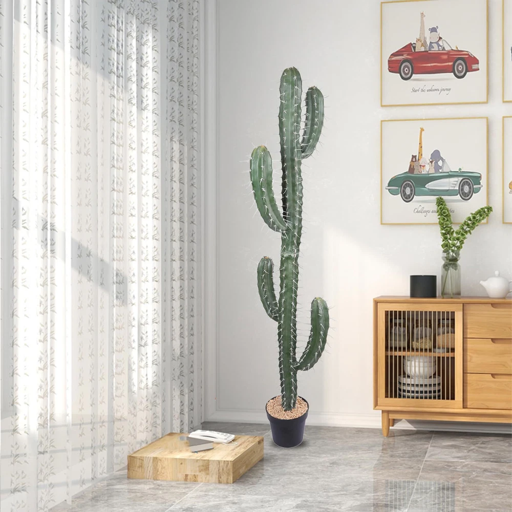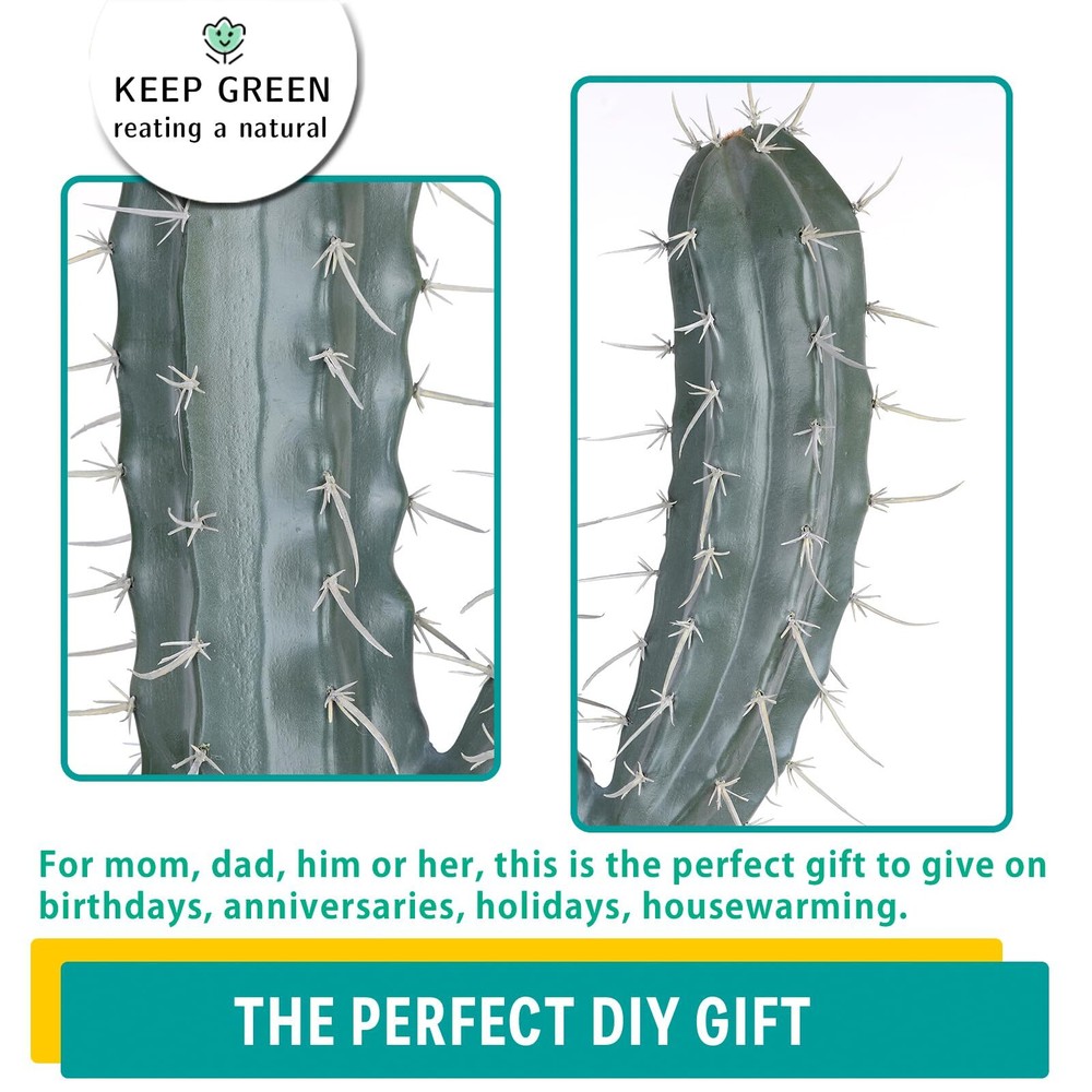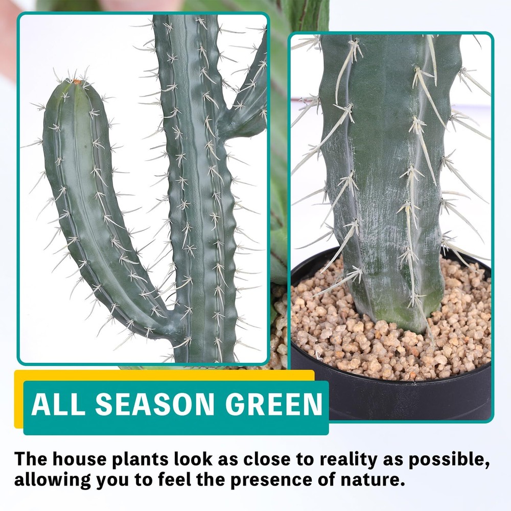 【Great Choice for Decoration】: The height of the artificial cactus is 62". The base is black plastic pot. Unlike real plants, our artificial cactus will not cause allergies. Realistic texture and lifelike color, is a great option to fill an empty space around you. 【Cute&Realistic】: Artificial Cactus no needs to be reshaped when you remove it from the box. you can put them into the way you prefer.Our artificial cactus indoor can be washed easily with water and is durable enough to be used for a long time. 【Realistic Detail】: To create a more realistic look, artificial cactus are made in varying color gradation, vein pattern, and shape, with high quality materials, sophisticated craftsmanship.It is a very full realistic artificial cactus. Looks great in living room, looks better in day light. 【No Maintenance】: Artificial cactus is a great way to add softness and style without having to add maintenance time into your schedule. Our artificial cactus do not have to water and no dead leaves. It has a strong and lasting vitality. It is a perfect solution for many busy professionals who don't have the time or energy to take care of real plants. 【Attractive artificial cactus】: Artificial cactus are all the rage in interior and exterior decor. Perfect for entryway, front porch, living room, dining room, bedroom, farmhouse, home, office or anywhere you want to add a charming touch of greenery. Decorating any corner with our faux plants can add greenery into your space.