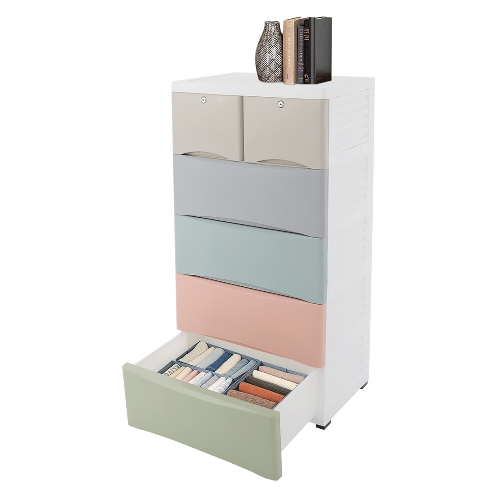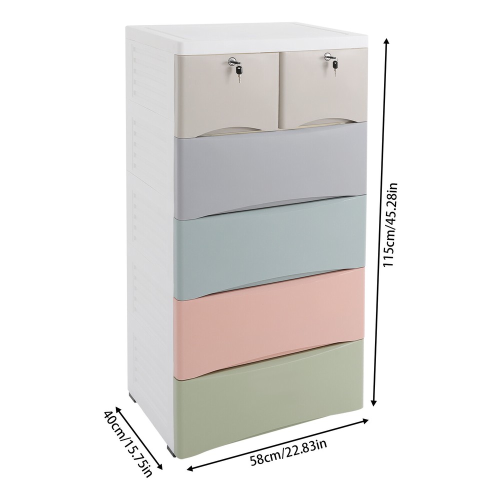 Shape: Rectangular Type: Dresser Total Load Capacity: 50-80kg/110.23-176.37lbs Gross Weight: 11kg/24.25lbs Item Width: 40cm 15.75in UPC: Does not apply Material: PP Net Weight: 9kg/19.84lbs Product Size: 58*40*115cm/22.83*15.75*45.28in Assembly Required: Yes Color: Macaroon-colored Process: Injection Molding Item Length: 58cm 22.83in gtin13: Does not apply Number of Drawers: 6 Package Size: 59.5*59*44.5cm/23.43*23.23*17.52in Item Height: 115cm 45.28in Mounting: Freestanding Brand: Unbranded