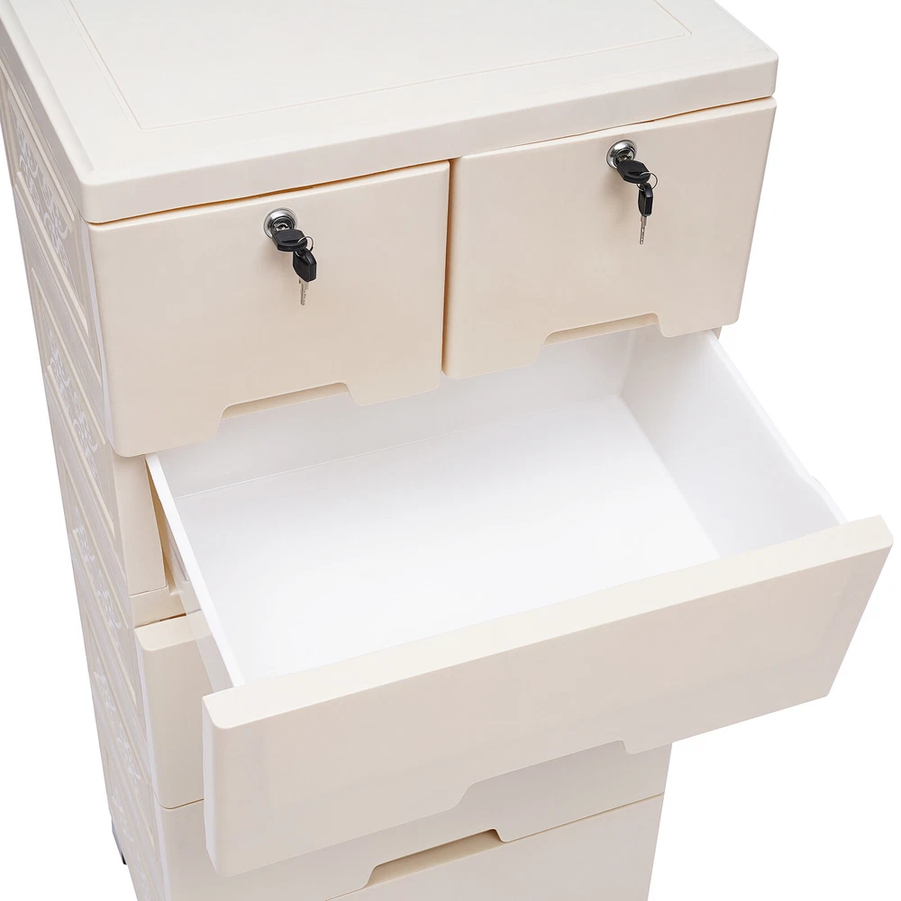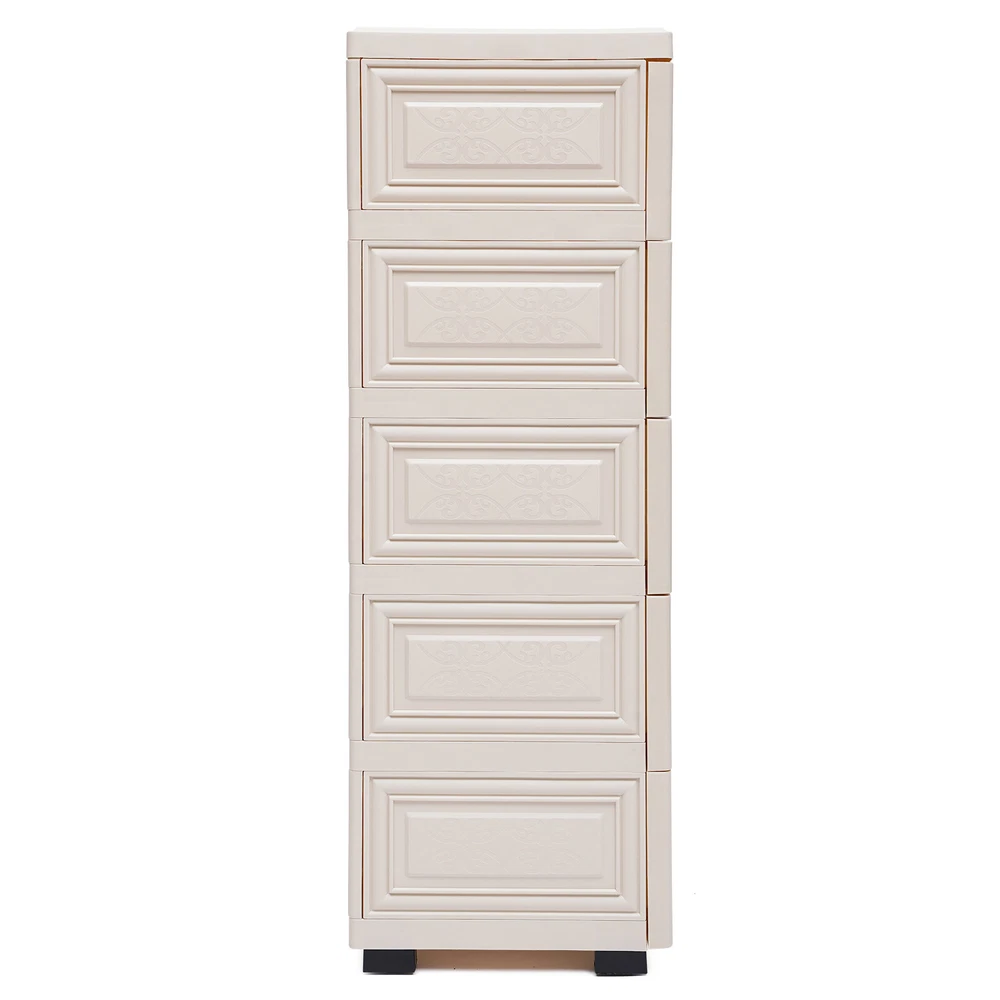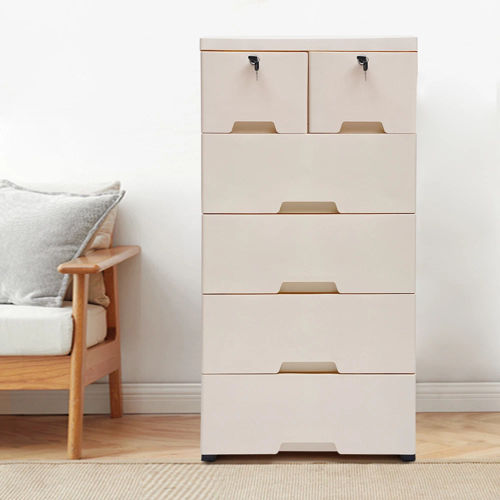 This dresser is a lifesaver for small spaces! The six spacious drawers hold so much—clothes, accessories, even shoes—keeping everything neatly organized. The modern beige design blends perfectly with any bedroom decor, and the sturdy PP material feels durable. Assembly was quick, and it holds up well even when fully loaded. Love how it maximizes vertical space without feeling bulky. A must-have for anyone needing extra storage!