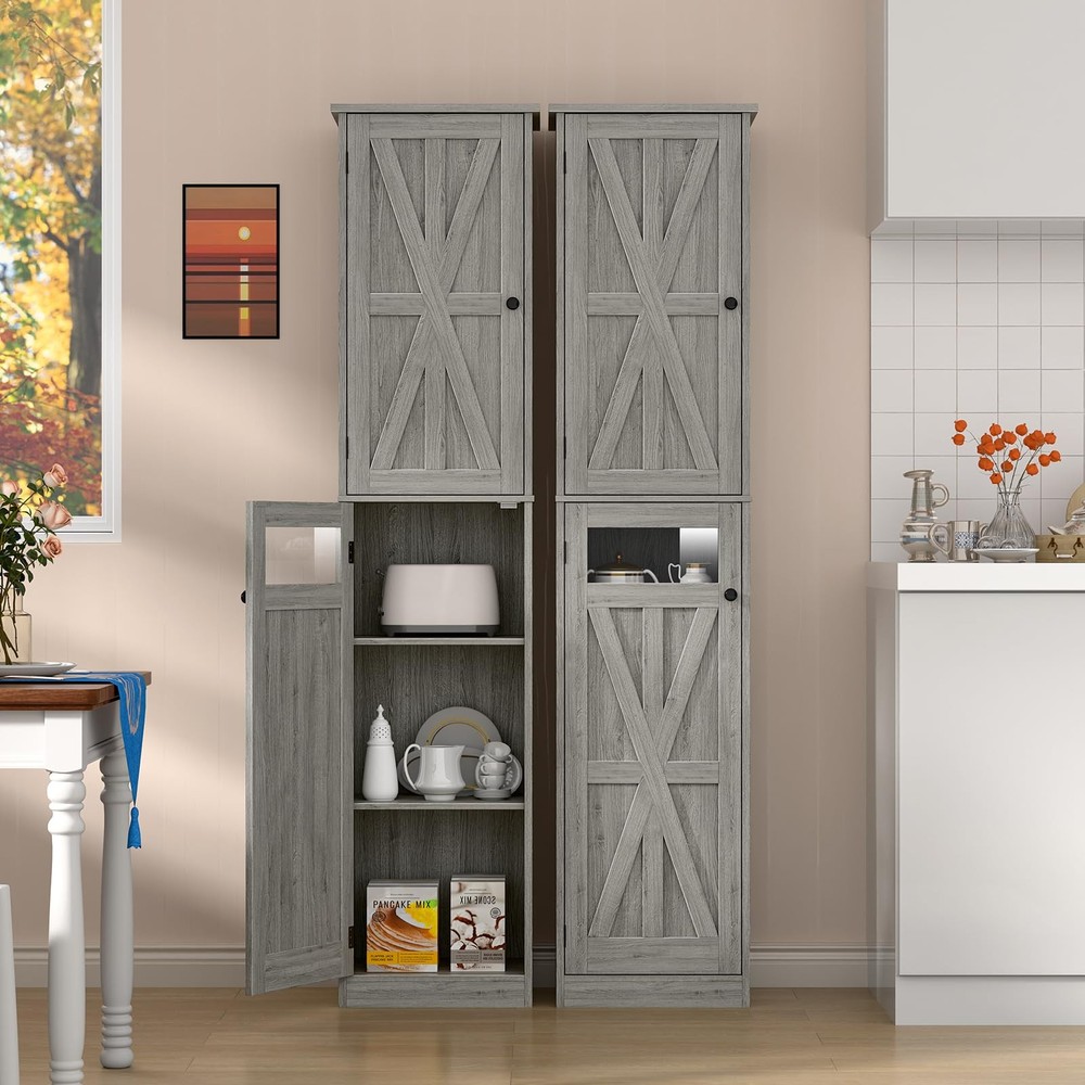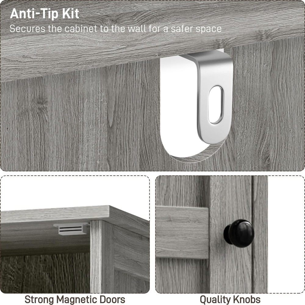 Tall Bathroom Cabinet, Slim Bathroom Storage Cabinet with Adjustable Shelves and 2 Doors, Narrow Floor Storage Cabinet for Bathroom, Kitchen, Living Room, Rustic Grey 【Clear Acrylic Door & Farmhouse Design】The combination of farmhouse and acrylic elementsis unique and charming. It not only retains the simplicity and naturalness of the farmhouse but also adds a sense of modernity. The acrylic door is translucent , allowing you to easily view the items inside the cabinet and easy access. It is a perfect combination of fashion and practicality. 【Perfect for Small Spaces】Sized at 11.69"D x 15.75"W x 67.80"H, this narrow yet tall cabinet makes full use of vertical space, increases storage capacity, and saves space for the bathroom. It is very suitable for narrow spaces. 【Multifunctional Storage Cabinet】This versatile cabinet is simple and elegant with extremely strong storage capacity. It is an excellent choice for uses such as bathroom cabinets and kitchen cabinets. Its multifunctional design can be easily integrated into any scene and perfectly blends with bathrooms, living rooms, and kitchens, adding convenience and beauty to home life. 【Flexible Storage Space】This bathroom cabinet has two adjustable shelves that can be freely adjusted according to the size of different items to meet different storage needs. The flexible storage space design makes storage no longer restricted. Whether it is small items or large items, a suitable storage location can be found. 【Sturdy, Stable, and Safe】This tall bathroom cabinet adopts a high-quality solid wood reinforced base and has better stability and support capacity. The anti-tipping accessories effectively avoid the occurrence of potential dangers and provide reliable protection for you and your family. 【Easy to Assemble】Its assembly is very simple. products will all include instructions. All parts have detailed labels and step-by-step instructions on the instructions. In just about 40 minutes, you can get a practical floor storage cabinet. 【Outstanding Client Service】No matter if you encounter any problems when installing the product or using the product, please feel free to contact us at any time. Our excellent customer service team will provide you with a satisfactory solution within 24 hours! Let you have a pleasant shopping experience.