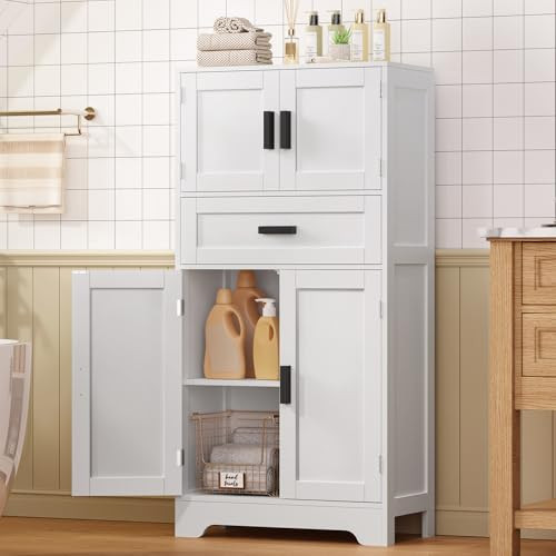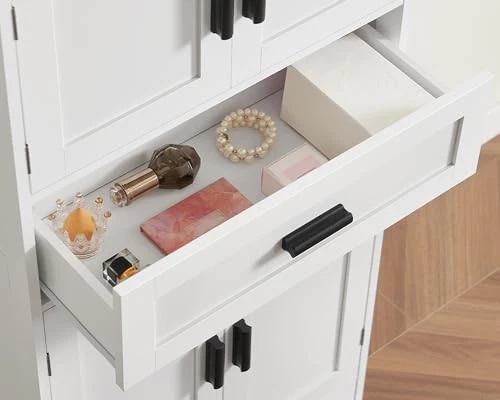 1. This tall bathroom cabinet is a game-changer for small spaces! The adjustable shelf and smooth-gliding drawer create perfect storage for towels, toiletries, and more. It’s sturdy, stylish, and fits seamlessly in bathrooms, hallways, or offices. Arrived quickly and was easy to assemble. A must-have for keeping things organized without sacrificing style. Absolutely love it!