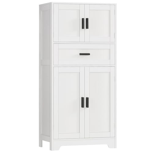Tall Bathroom Storage Cabinet with Adjustable Shelf and Large Drawer, Freestanding or Wall Mounted
